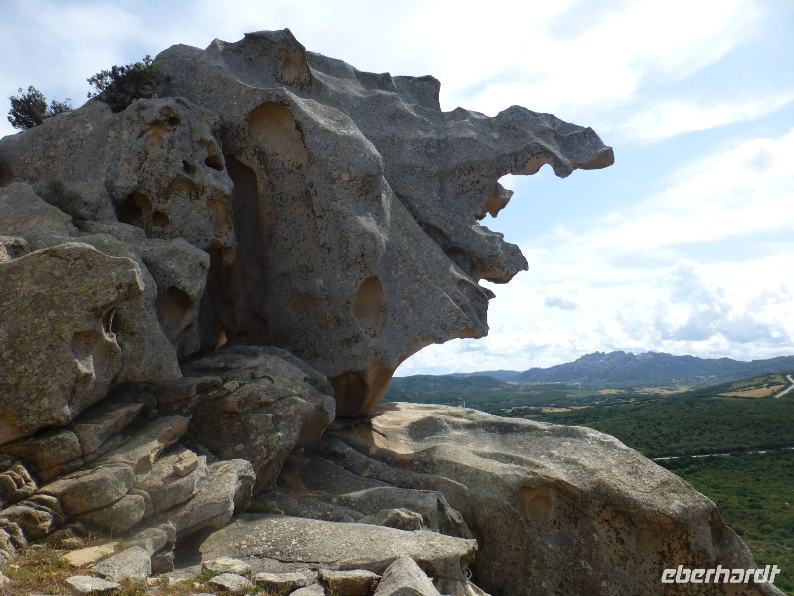 Wir ziehen heute an die Westküste und erleben bis dahin viel Schönes. Eine kurvenreiche Strecke windet sich durch die Landschaft, auf die Höhe, wieder runter ins Tal. Weite Blicke auf dichte Baum- und Strauchlandschaft. Wie in der Schweiz hupt unser Busfahrer Antonello vor engen Kurven. Die Fahrt geht durch die Gallura, geprägt von Kork, Wein und Granit. Das Tagesprogramm stellt es unter Beweis.