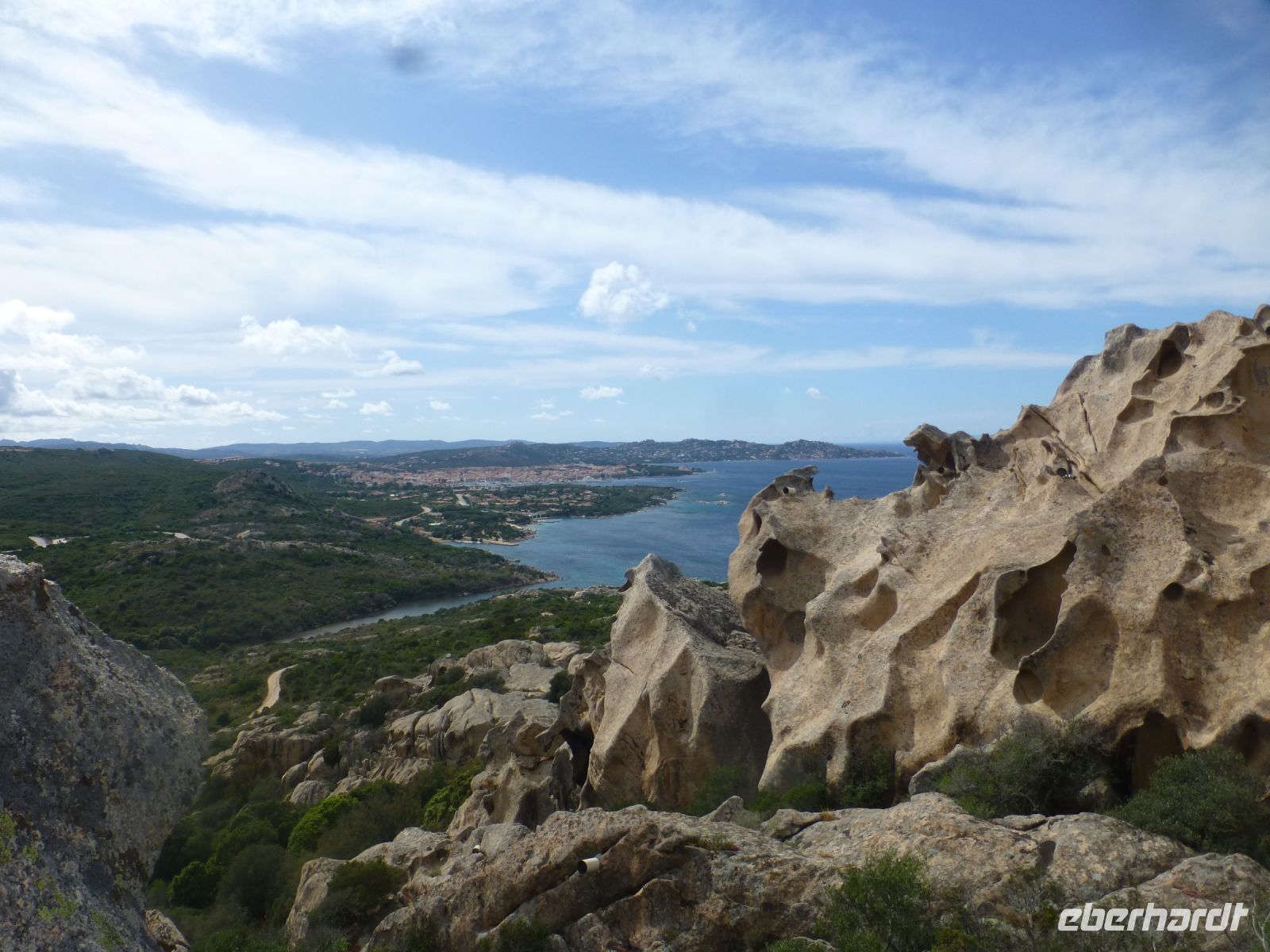 Es ist malerisch, jeder Meter bietet einen neuen Blick – grün, grau, blau: Macchia, Granit, Meer. Das Konsortium, zu dem Aga Khan, sowie die Eigentümer von Guiness und Pellegrino gehörten, kauften 300.000 Hektar zusammen und kümmerten sich auch um die baurechtlichen Auflagen. Die Häuser sind geschmackvoll in die Landschaft gesetzt. Kein Haus ist höher als ein Baum und der neu geschaffene neosardische Stil mit Fassaden in Sand- und Ockertönen, Türmchen, Terrassen und Balkonen erscheint dem Betrachter, als sei dies das einzig Passende. Für das neu geschaffene Paradies wurden Straßen, Strom- und Wasserleitungen gelegt.