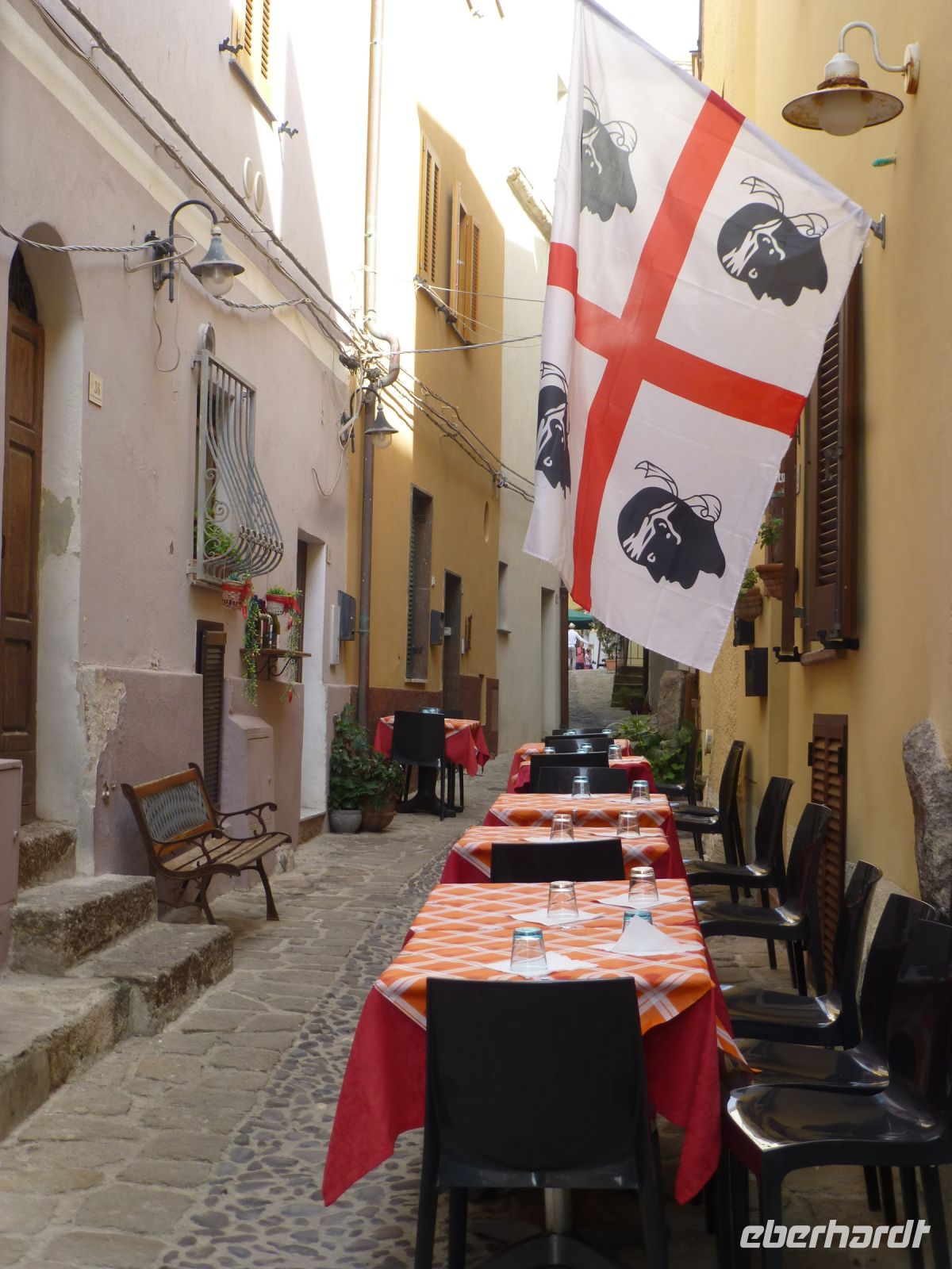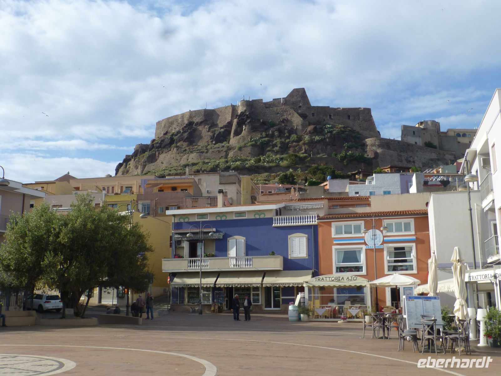 Zum Abendessen sind wir zu Gast in der Trattoria Lo Romani in Alghero. Es gibt Miesmuscheln, Katzenhai mit Knoblauchsoße, Ofenkäse, eine Gemüseauswahl des Hauses, Auberginen-Auflauf mit Parmesankäse und Tomatensoße, Zucchiniauflauf, frittierte Kartoffeln und Spinatküchlein. Das sind die Antipasti und so eingestimmt, bestellen wir für das Primo gerade die Hälfte ab und es bleibt doch etwas übrig vom Risotto mit Zucchini und Garnelen, den Maccarones de Busa mit Lammfleischsoße. Der Wirt ist ratlos. Schmeckt es den Gästen nicht? Wir beschwichtigen und fragen, wer noch einen Hauptgang möchte. Es kommen noch wenige Platten mit Fleischklößchen in Kapernsoße und Schattenfisch aus dem Ofen mit Kartoffeln. Die Stimmung ist ausgezeichnet, obgleich wir nur noch „Pap“ sagen können. Und die Frage ist, gehen oder rollen wir uns ins Hotel?