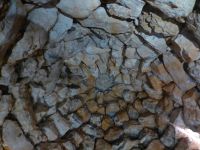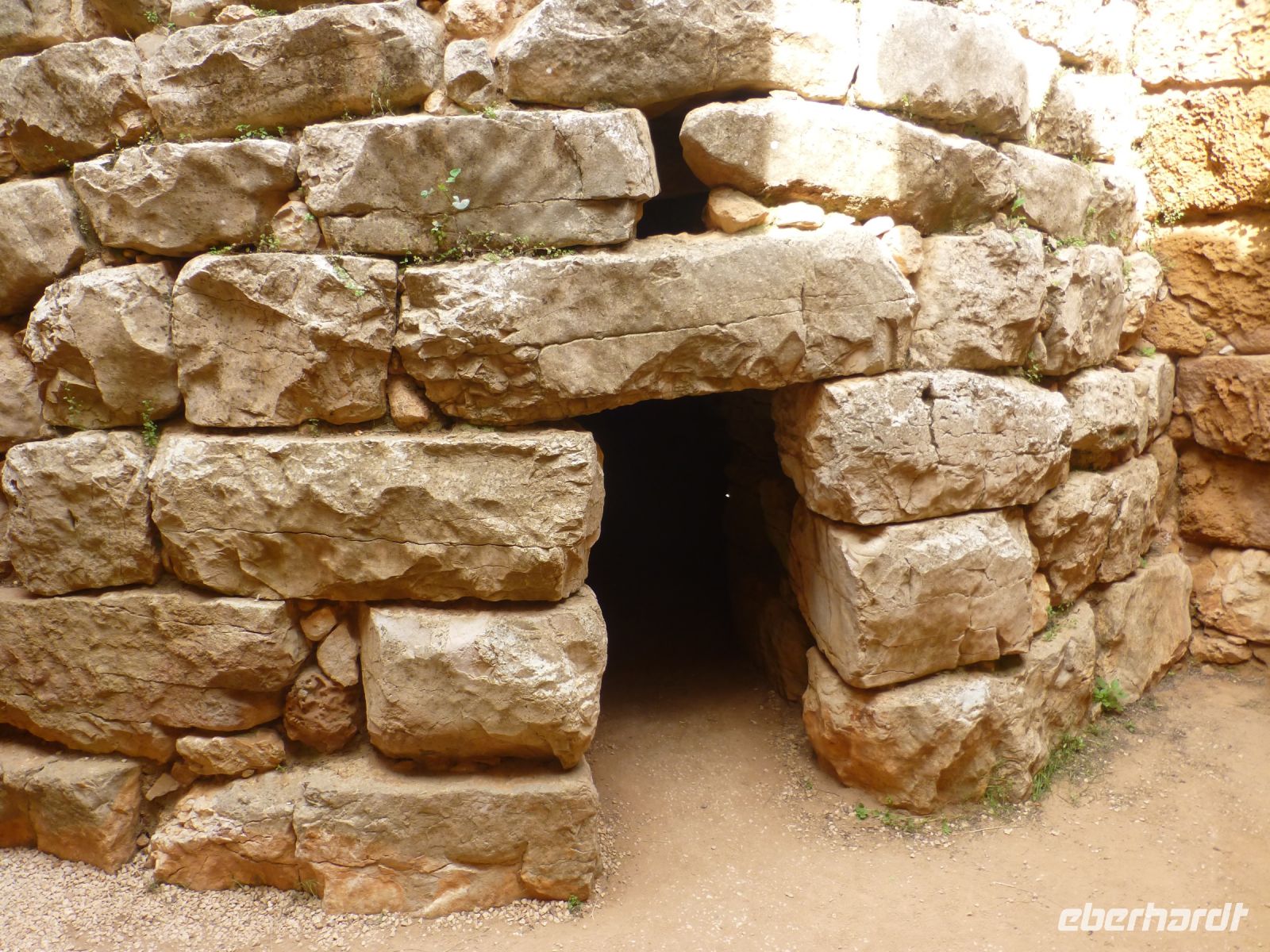 Die Türme auf Sardinien, die Nuraghe, gibt es nur hier. Nurakes heißt Steinhaufen. Sie zeichnen sich dadurch aus, dass sie einen Eingang haben, aus groben Steinen kegelförmig nach oben gebaut worden sind und die Treppe immer links herumläuft. Ein Wachturm, ein Kult- oder Schutzraum? Die Türme in ihrer Bauweise gibt es nur auf der Insel. Und in der Ausgrabung von Palmavera sind zwei Türme aus unterschiedlicher Bauzeit verbunden worden und rundherum sind die Grundmauern von rund 50 Hütten erkennbar. Der rund sieben Tonnen schwere Türsturz beeindruckt, das falsche Gewölbe, um den Turm überhaupt zu bauen, wurde aus zentnerschweren Steinen hochgezogen.