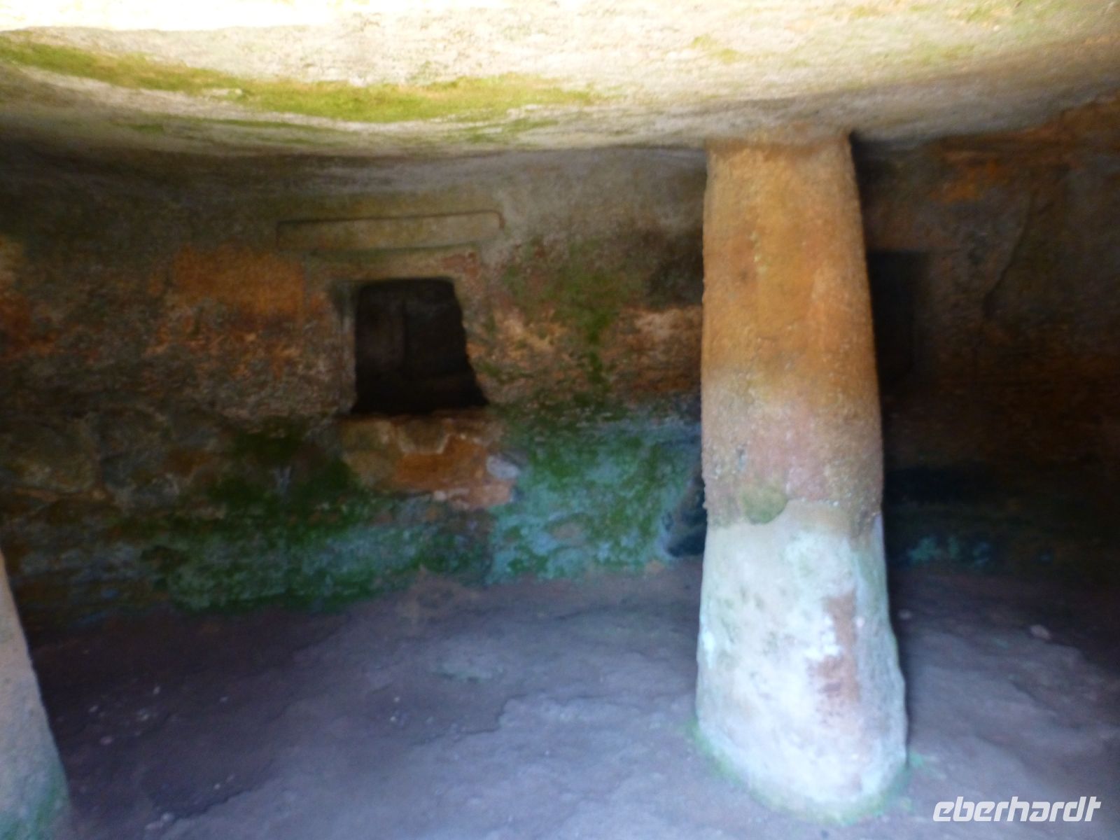 Weiter geht es zur Nekropole Anghelu Ruju, die Anfang 20. Jh. entdeckt worden ist, als man hier Steine gebrochen hat – für den Bau von Häusern und Straßen. Dieser Komplex ist eine der größten und wichtigsten Nekropolen im Mittelmeerraum. Wir haben das Terrain für uns allein und es ist gut, denn hier wurden Menschen bestattet und ein wenig gedankenverloren steht der eine, die andere vor den Grabkammern unter sich, die in den Kalksteinboden gegraben worden sind. Sie stammen aus der Ozierizeit 4000 – 2000 v. Chr. An einem Türsturz sind noch Stierköpfe zu erkennen.