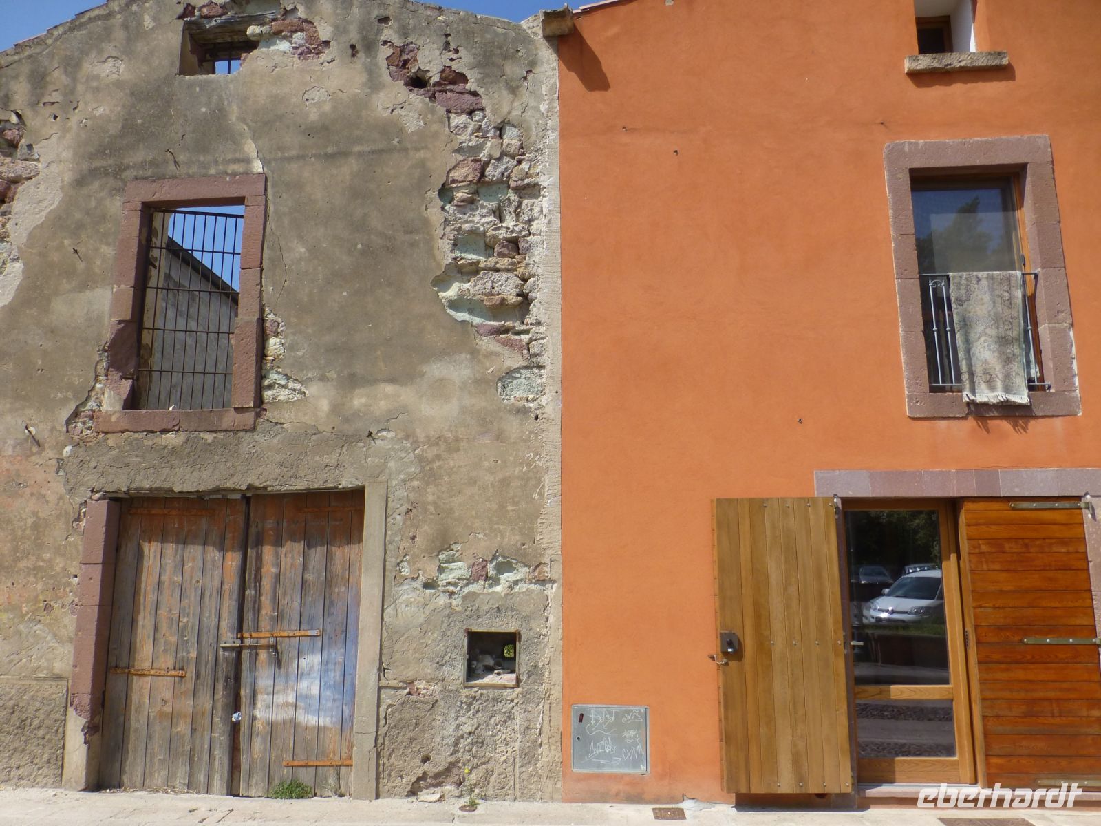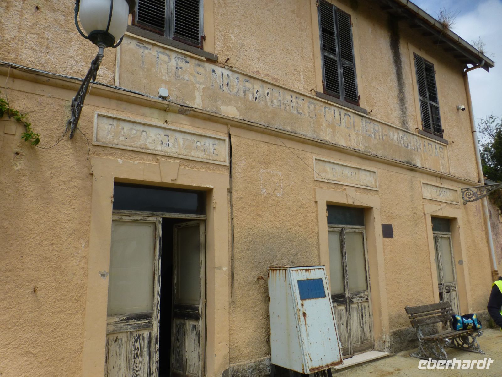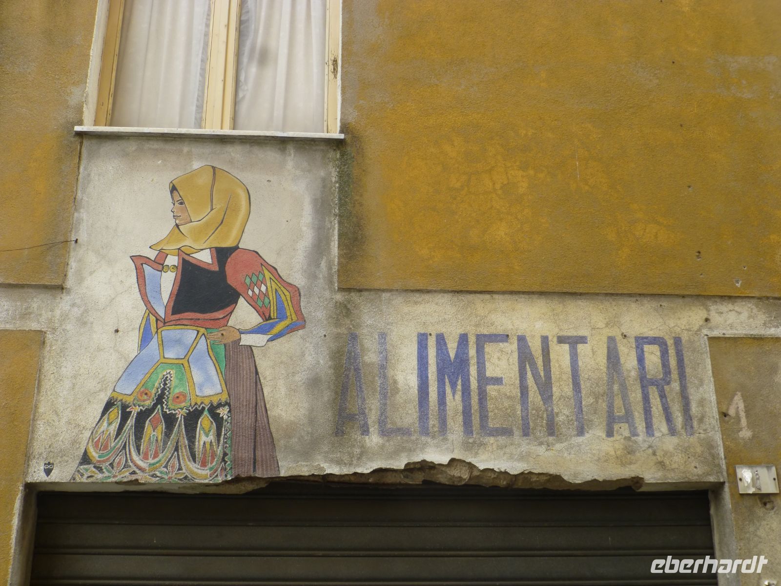 Heute ist die Zugfahrt an der Reihe. Dazu fahren wir entlang einer atemberaubenden Küstenstraße nach Macomer. Die früher so wichtigen Bahnstrecken sind heute überwuchert oder dienen alleine der Touristenfahrt. Die Gleisanlage unserer Schmalspurstrecke ist vor einigen Tagen gemäht worden, doch wir fahren wir auf einer Wiese. Wie gut, dass der Zug seine Schienen hat. Wir bekommen Audioguides und hierüber Informationen über die Strecke. Die Landschaft ist weit, offen und sehr grün. Der erste Halt ist die Zisterzienserabtei S. Maria di Corte bzw. was davon noch übrig ist. Der erste Standort dieses Ordens auf der Insel ist über die Jahre stark geschrumpft, das heutige Langhaus ist das damalige Westwerk. Tinnura ist die zweite Station. Die Häuser sind mit Fassadenmalerei verschönert, vornehmlich mit Motiven aus der Landwirtschaft und manchmal steht man verblüfft da und fragt sich, oder Brunnen nun echt oder gemalt ist.