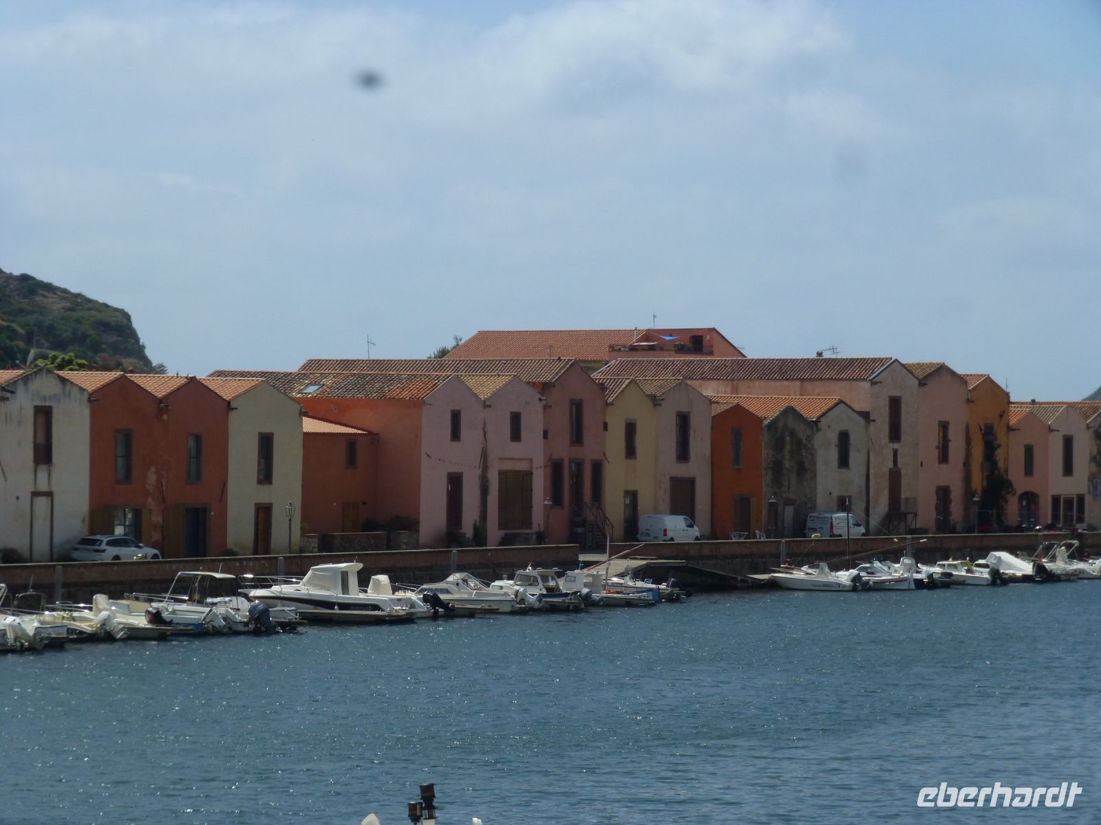 Wir spazieren zum Hafen über eine Fußgängerzone, deren farbige Pflastersteine Fische zeigen, die alle Richtung Meer schwimmen. Wir kommen zur Piazetta San Marco, um die sich ein Laubengang von Geschäften zieht. Dann der Hafen mit 800 Liegeplätze. Ein hübscher Spazierweg zieht sich hier links und rechts entlang. Im Hintergrund die markanten Bergspitzen, denen wir kurz vorher in San Pantaleo ein Stück näher waren. Auch die Nächte im Hafen sind nicht billig, ein kostet bis zu 2.000 Euro die Nacht, erzählt uns Reiseleiterin Anja. Sie wohnt schon 25 Jahre auf Sardinien und kennt jede Sehenswürdigkeit. Ihr Wissen ist umfassend.