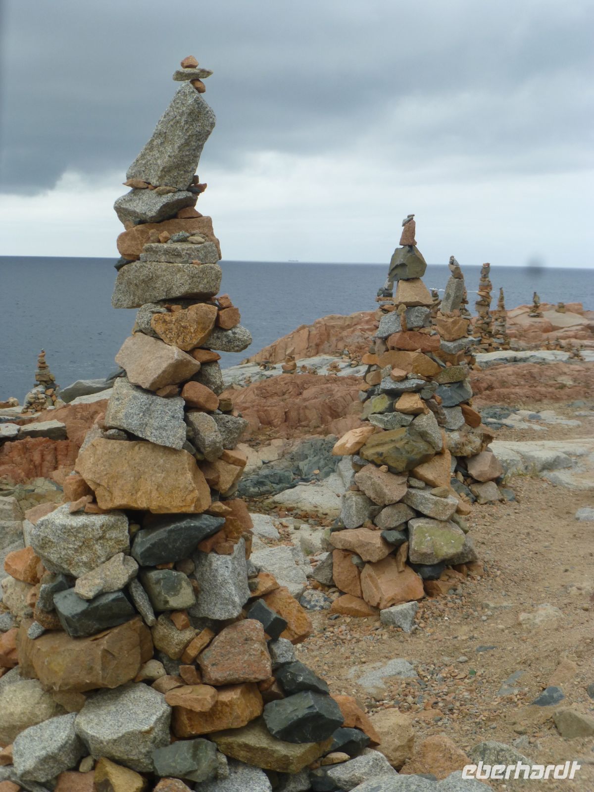 Wir kehren um, laufen zurück durch kleine Buchten, knorrige Waldabschnitte, passieren Mauerdurchgänge, die von Riesenhand geschaffen scheinen. Das Licht wird wärmer, wechselt in rosa, als wenn eine Lichtregie hier ihre Hand im Spiel hätte. Ein ganz wunderbarer Einstieg in den Urlaub.