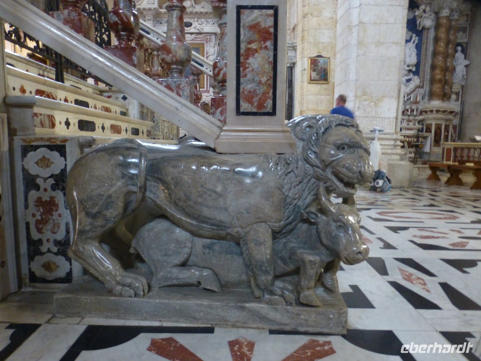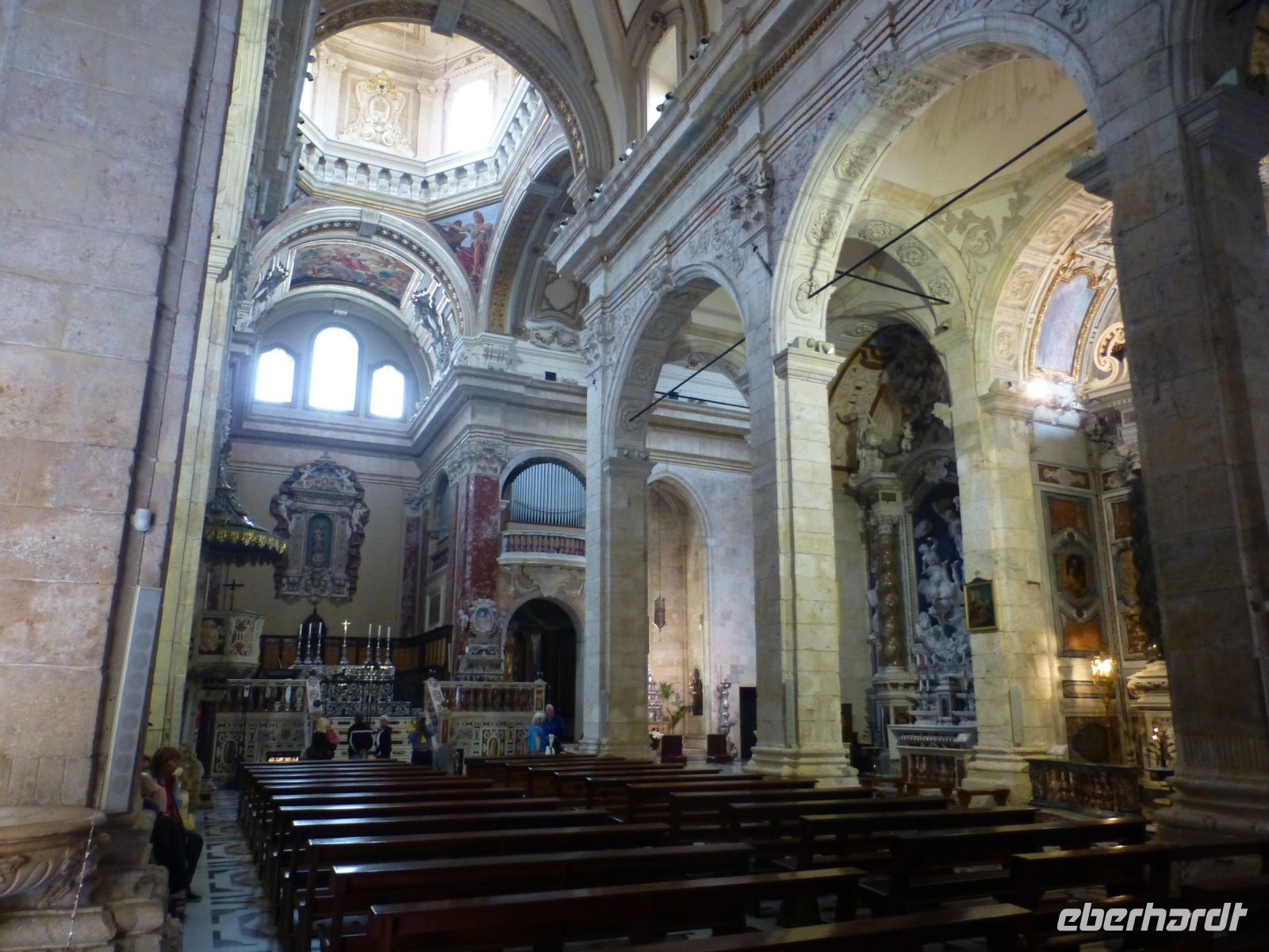 Danach führt uns Anja durch die Altstadt, die auf dem Burgberg liegt. Ganz anders als in Castelsardo sind hier große und prächtige Palazzi zu sehen, einige renovierungsbedürftig, die anderen schon hergerichtet. Die Kathedrale ist eine Augenweide, mit Inkrustationen verziert, und in hellen Farben. Martin von Aragon muss sie auch gefallen haben, er ließ sich hier begraben und sein wandhohes Mausoleum bereichert den Kirchenraum.