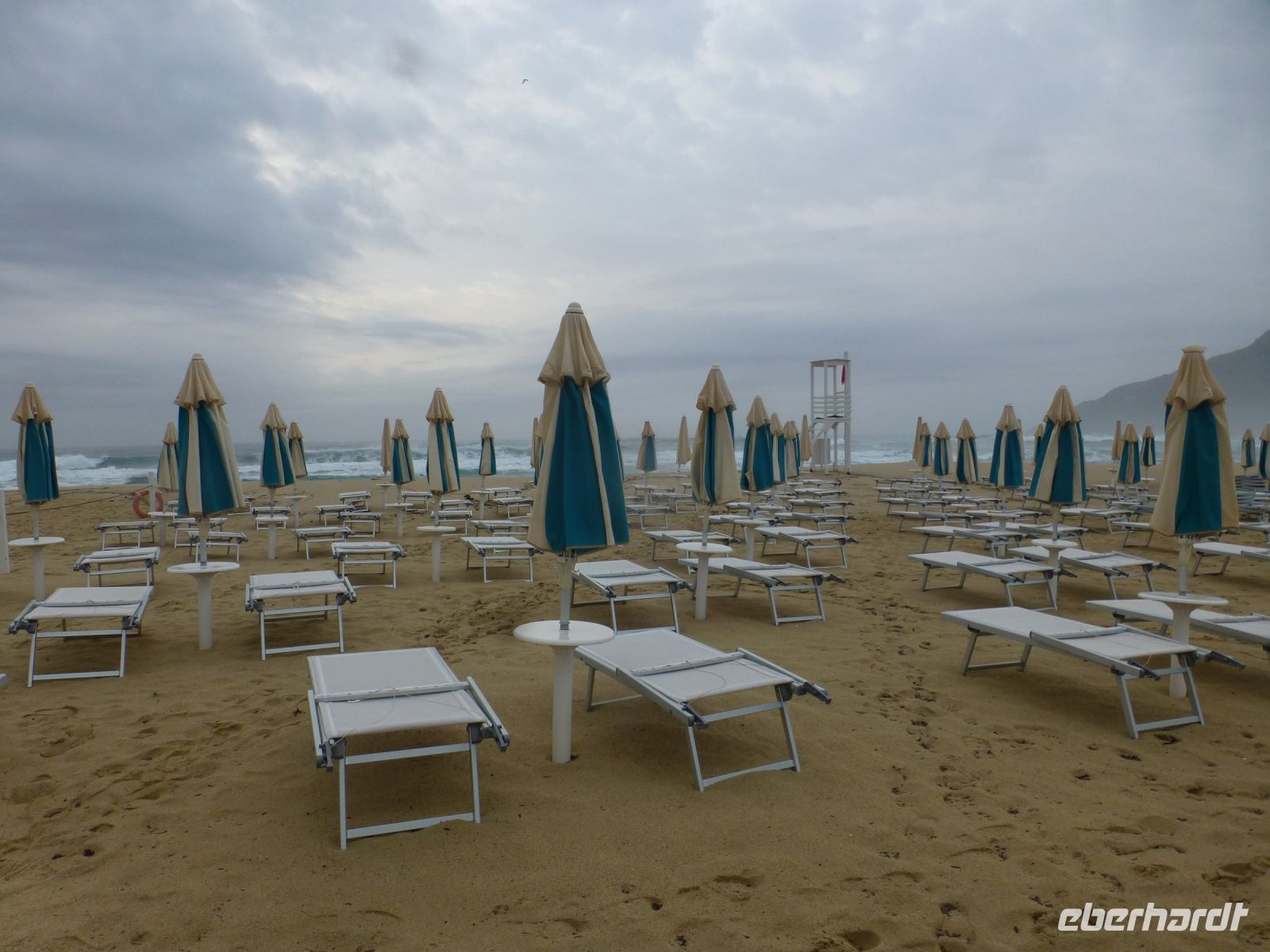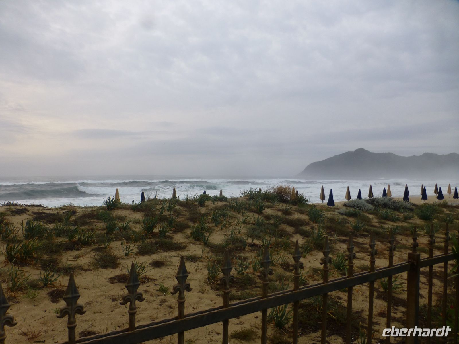Noch ein letztes Mal an den Strand, das Meer ist aufgewühlt und das Tosen war schon in der Nacht zu hören. Eine schöne Vorstellung, im Sommer hier zu liegen und im smaragdgrünen Wasser zu schwimmen.