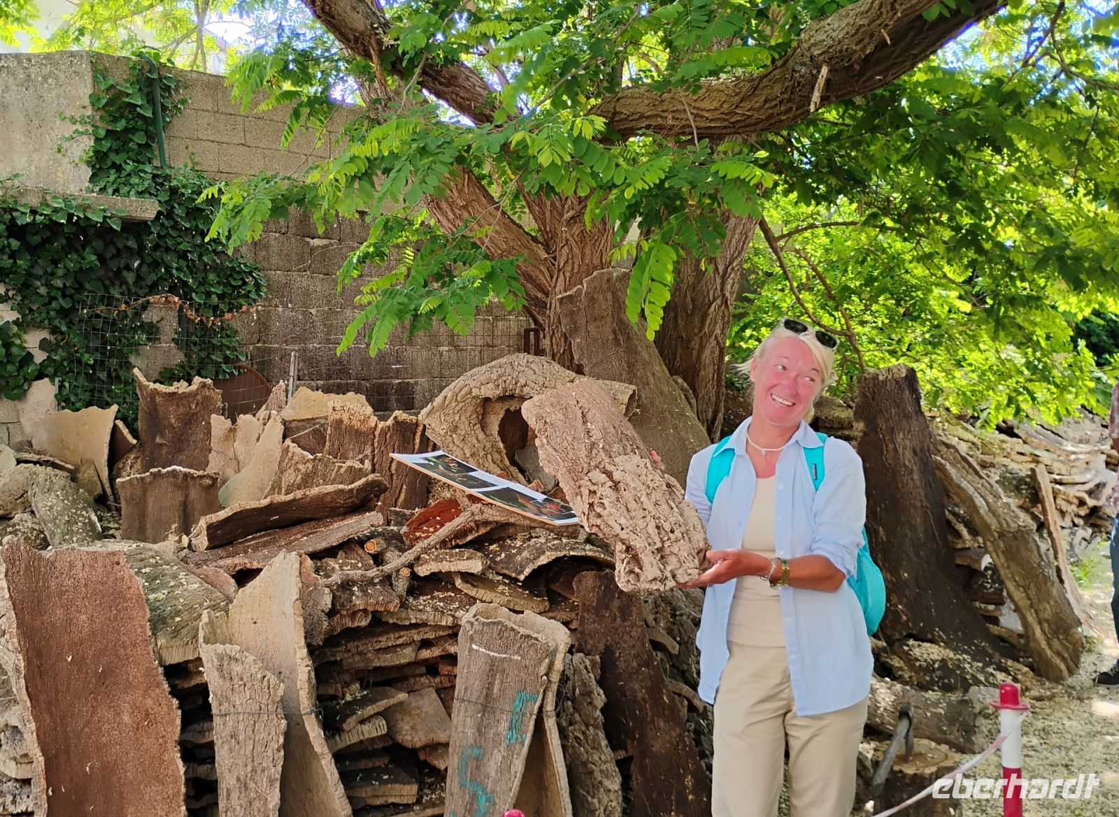 Heute hieß es Abschied nehmen von Cannigione. Nach dem Frühstück machten wir uns auf den Weg Richtung Westen. Angela begleitete uns wieder mit spannenden Erzählungen über Land und Leute und auch über die Bedeutung des Wassers auf Sardinien. So erfuhren wir auch, dass die Stadt Tempio Pausania als "Stadt des Wassers" gilt – mit zahlreichen Quellen und dem vielfach ausgezeichneten Mineralwasser „Smeraldina“. Auch die Korkproduktion wurde zum Thema: Bis ein Baum erstmals Kork liefern kann, vergehen ganze 25 Jahre. Nur die äußere, „weibliche“ Rinde ist für die Korkgewinnung gut geeignet – mit einem Augenzwinkern wurde uns erklärt, dass die „männliche“ lediglich zerschreddert und für Schuhsohlen oder Pinnwände verwendet wird. Und natürlich wurde auch über Weinkorken gesprochen und was es damit auf sich hat wenn der Wein "korkt".
