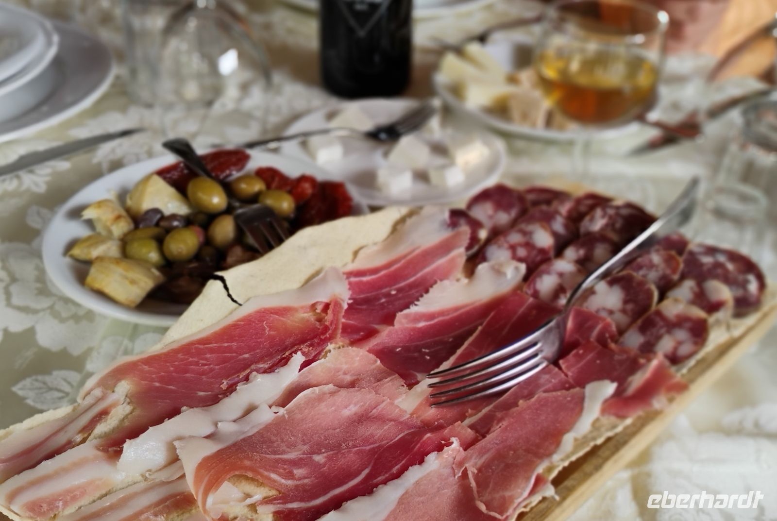 Am Abend kam die etwas kleinere Runde noch einmal zum gemeinsamen Abendessen zusammen. Bei gutem Essen und Gesprächen (heute Abend gab es ein reichhaltiges Buffet ausschließlich mit sardischen Spezialitäten) ließen wir die Reise gemütlich ausklingen – mit dem Gefühl, dass hinter uns eine rundum gelungene Reise durch Sardinien liegt.
