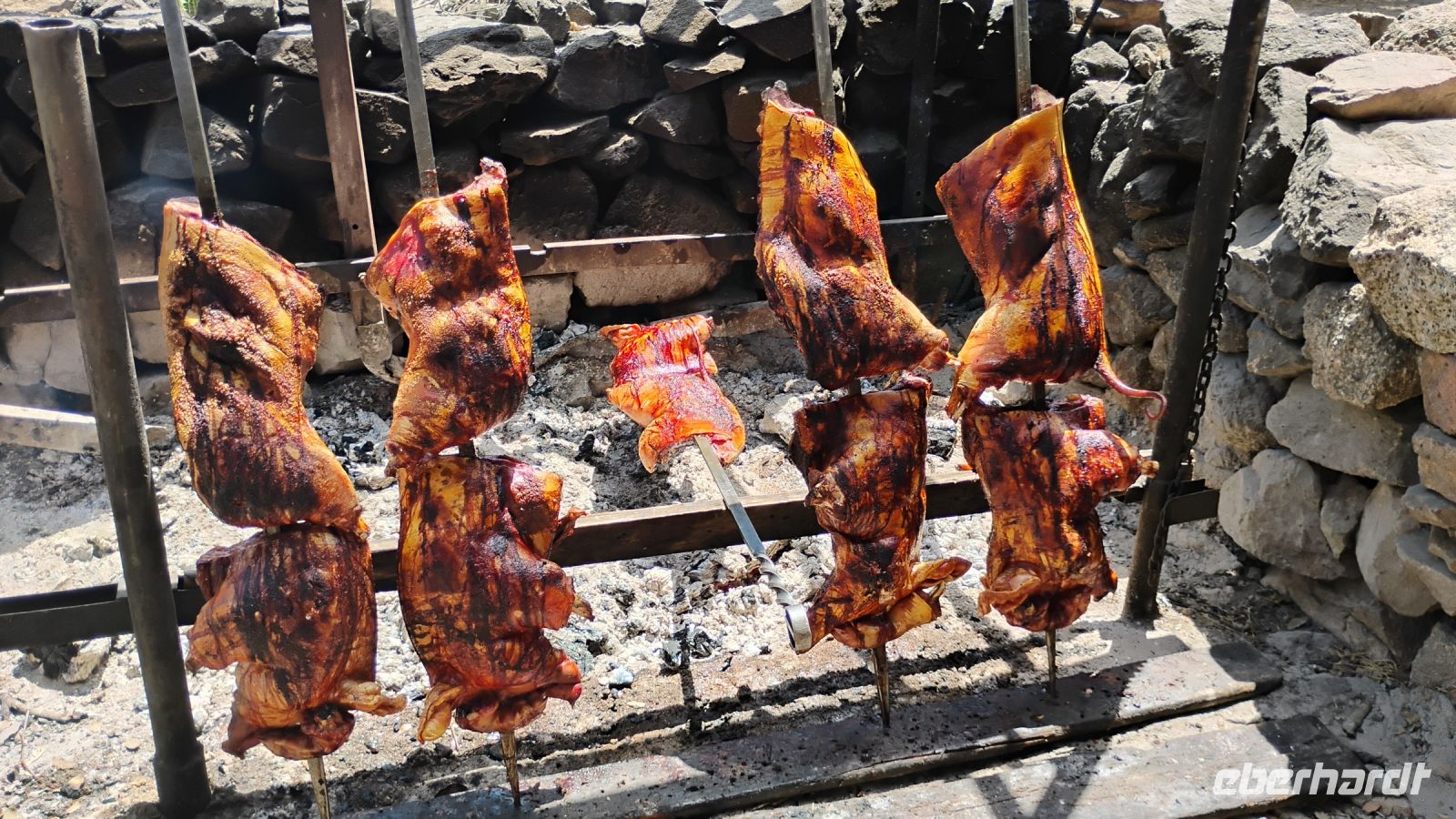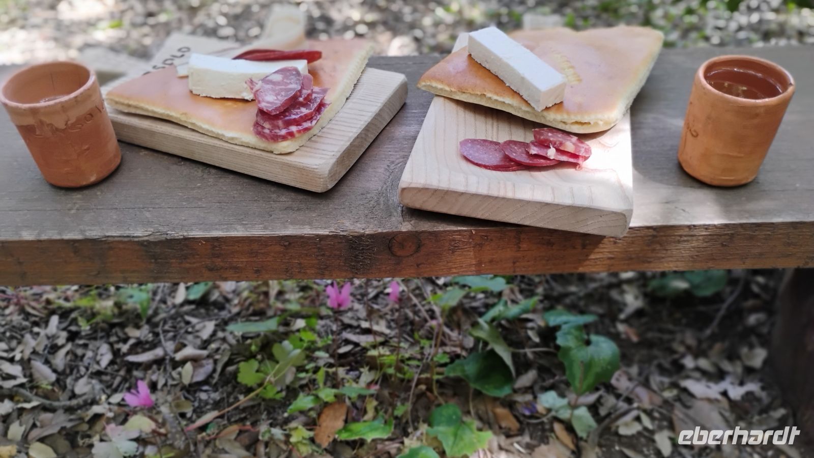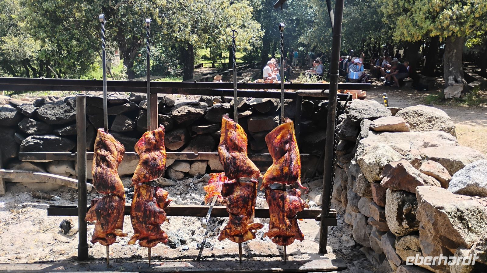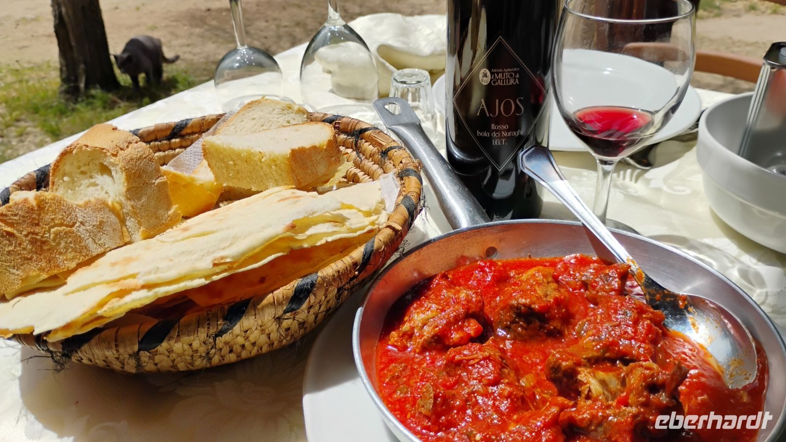 Nach weiteren kunstvollen Murales führte unser Weg zu einem rustikalen Hirtenessen in der Natur. Auf einem Holzbrett serviert wurde, was die sardische Küche Herzhaftes zu bieten hat: Salami, Pecorino, knuspriges Brot, zartes Lamm und Spanferkel, begleitet von Wein und am Ende einem Grappa. Dann gab es noch ein Ständchen echten sardischen Hirtengesangs. Bei bestem Wetter, gutem Essen und ausgelassener Stimmung wurde am Ende sogar noch zusammen getanzt.