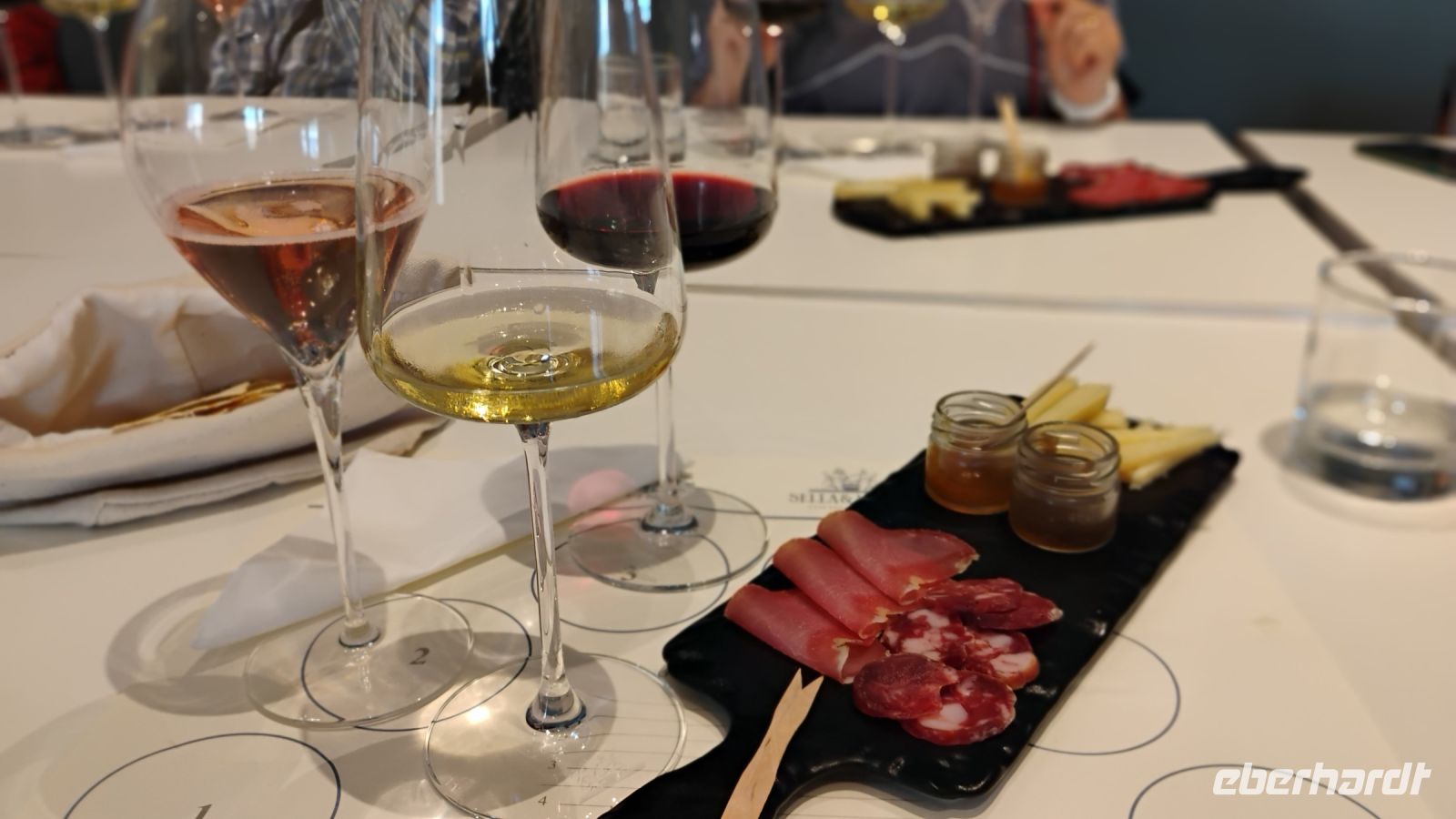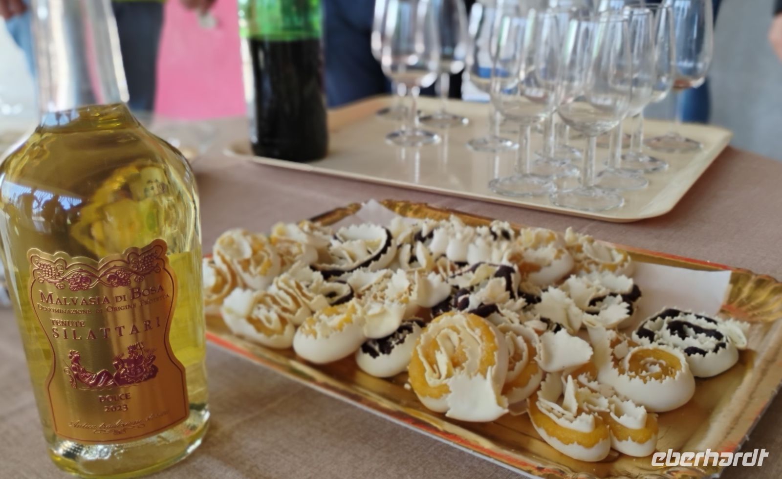 Ein besonderes Highlight des Tages war unser Besuch im renommierten Weingut Sella & Mosca. Mit einer Rebfläche von etwa 650 Hektar zählt es zu den größten zusammenhängenden Weinbergen Europas. Salvatore, ein Mitarbeiter des Guts, führte uns sachkundig durch die weitläufige Anlage, erklärte die Geschichte des Weinguts und ließ uns hinter die Kulissen der Weinherstellung blicken. Zum Abschluss durften wir drei ausgewählte Weine verkosten – begleitet von einem kleinen sardischen Imbiss. Ein schöner Genussmoment in stilvollen Gemäuern.