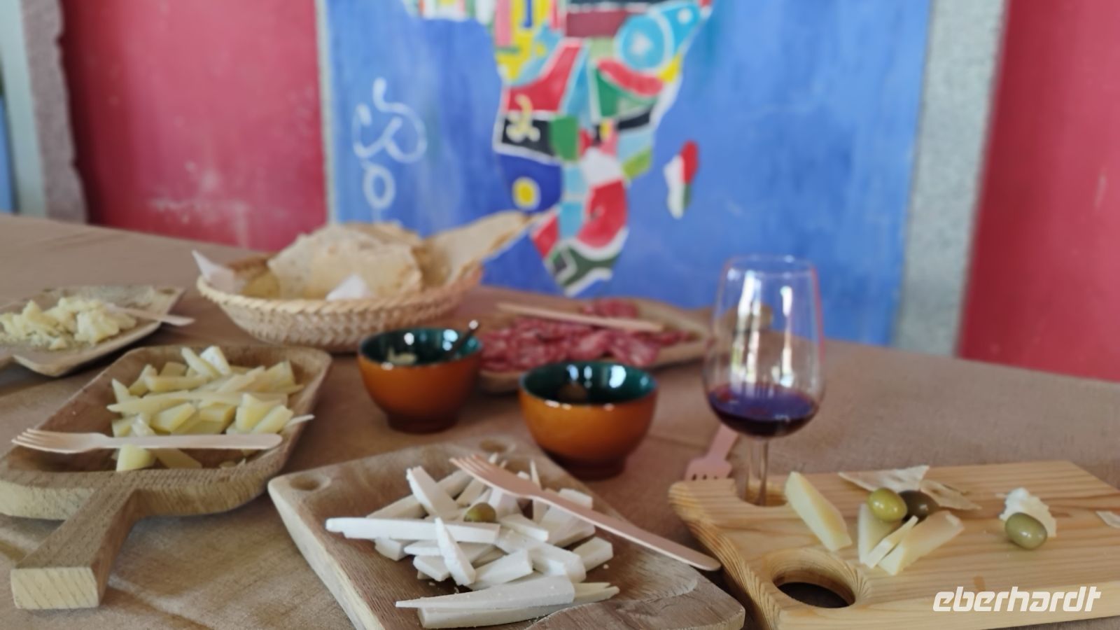Weiter ging es nach Tinnura – einem kleinen, aber bemerkenswerten Ort, der vor allem für seine beeindruckenden Murales bekannt ist. Die farbenfrohen Wandmalereien schmücken zahlreiche Hausfassaden und erzählen vom Alltag, von Traditionen und der Geschichte Sardiniens. Nach einem kurzen Spaziergang durch die ruhigen Gassen wurden wir zur Degustation eingeladen: typische sardische Spezialitäten, unter anderem Pecorino, luftgetrocknete Salami, Rotwein, süßes Gebäck und ein Glas Malvasia – ein lieblicher Wein, der hier besonders geschätzt wird – boten einen authentischen Einblick in die kulinarische Seele der Insel.