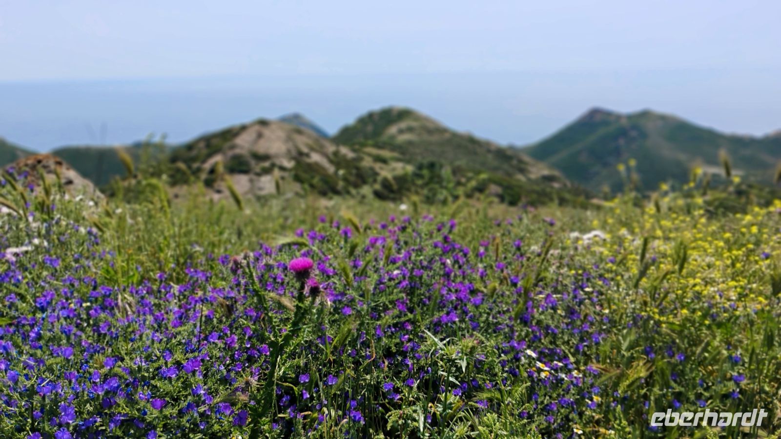 Auf dem Rückweg nach Alghero fuhren wir entlang der atemberaubenden Küstenstraße SP 105 – ein wahres Postkartenmotiv. Zwischen blühendem Ginster, silbrigem Wermut und schroff abfallenden Felsklippen eröffneten sich immer wieder spektakuläre Ausblicke auf das tiefblaue Meer und dem "Schlafenden Riesen".