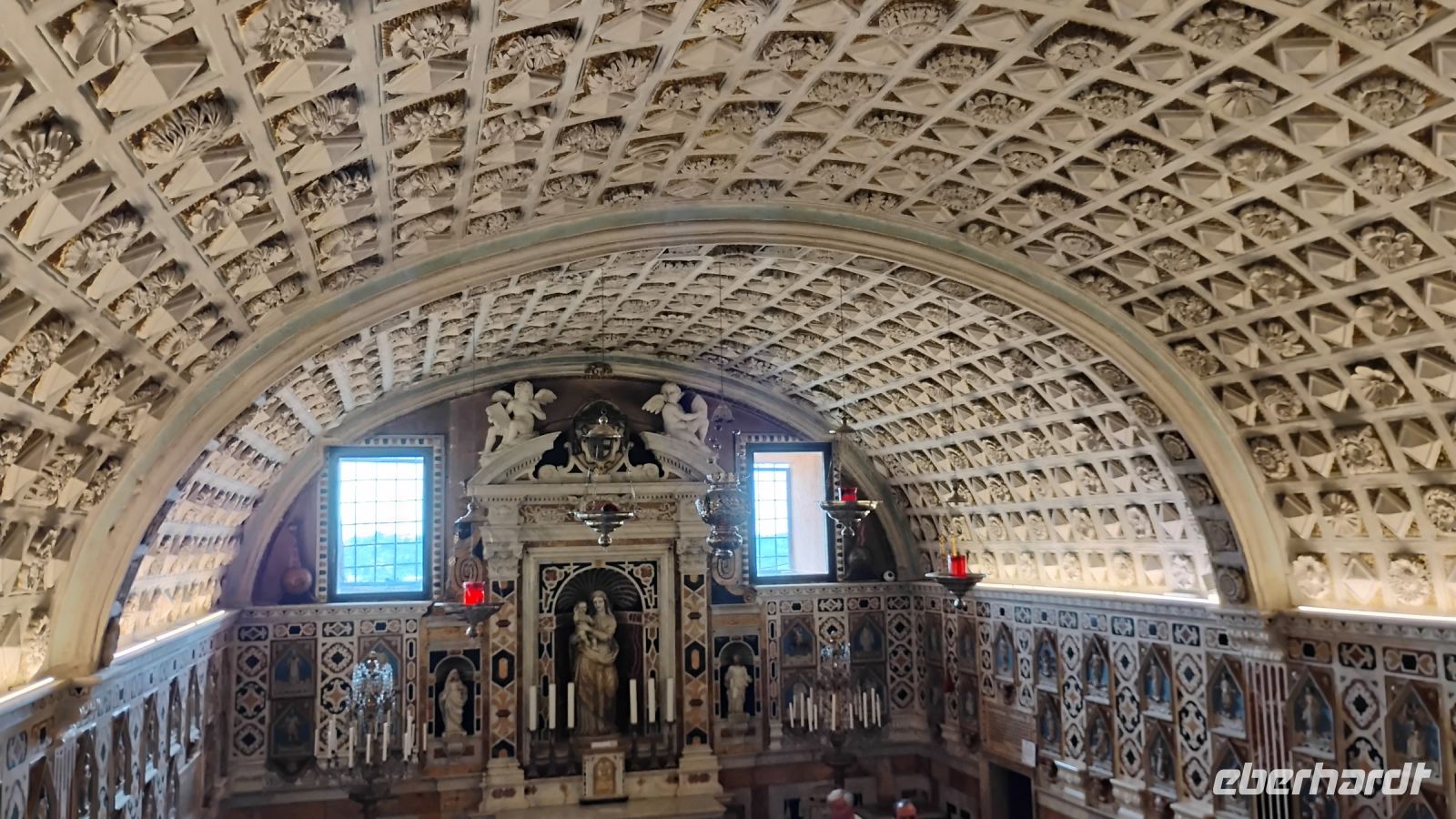 Am Nachmittag erreichten wir Porto Cervo, das Herz der Costa Smeralda. Bei einem Spaziergang durch den mondänen Ort bestaunten wir die Schaufenster der Auslagen von Boutiquen wie Gucci, Prada und Valentino. Anschließend besuchten wir die Kirche Stella Maris, deren Architektur völlig ohne rechte Winkel auskommt. Die runden, geschwungenen Formen verleihen ihr eine ganz besondere Atmosphäre – und im Inneren hing sogar ein Originalgemälde von El Greco.