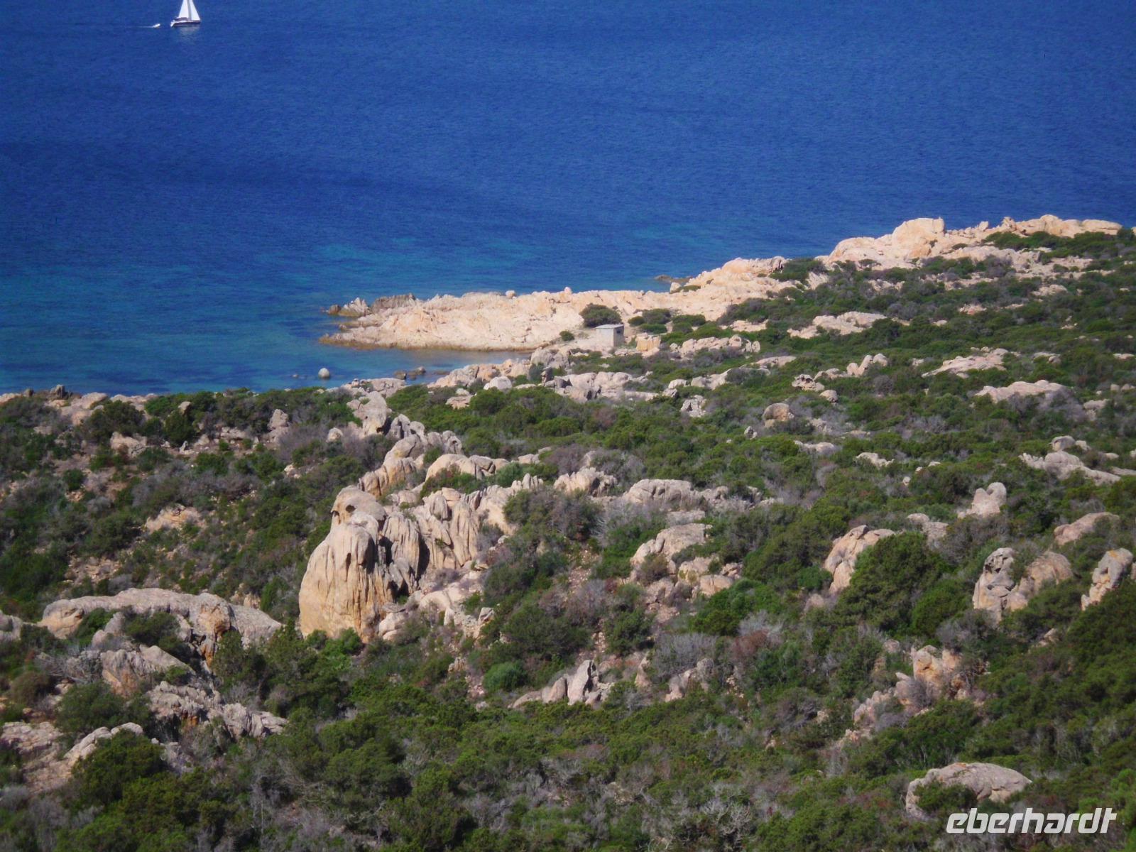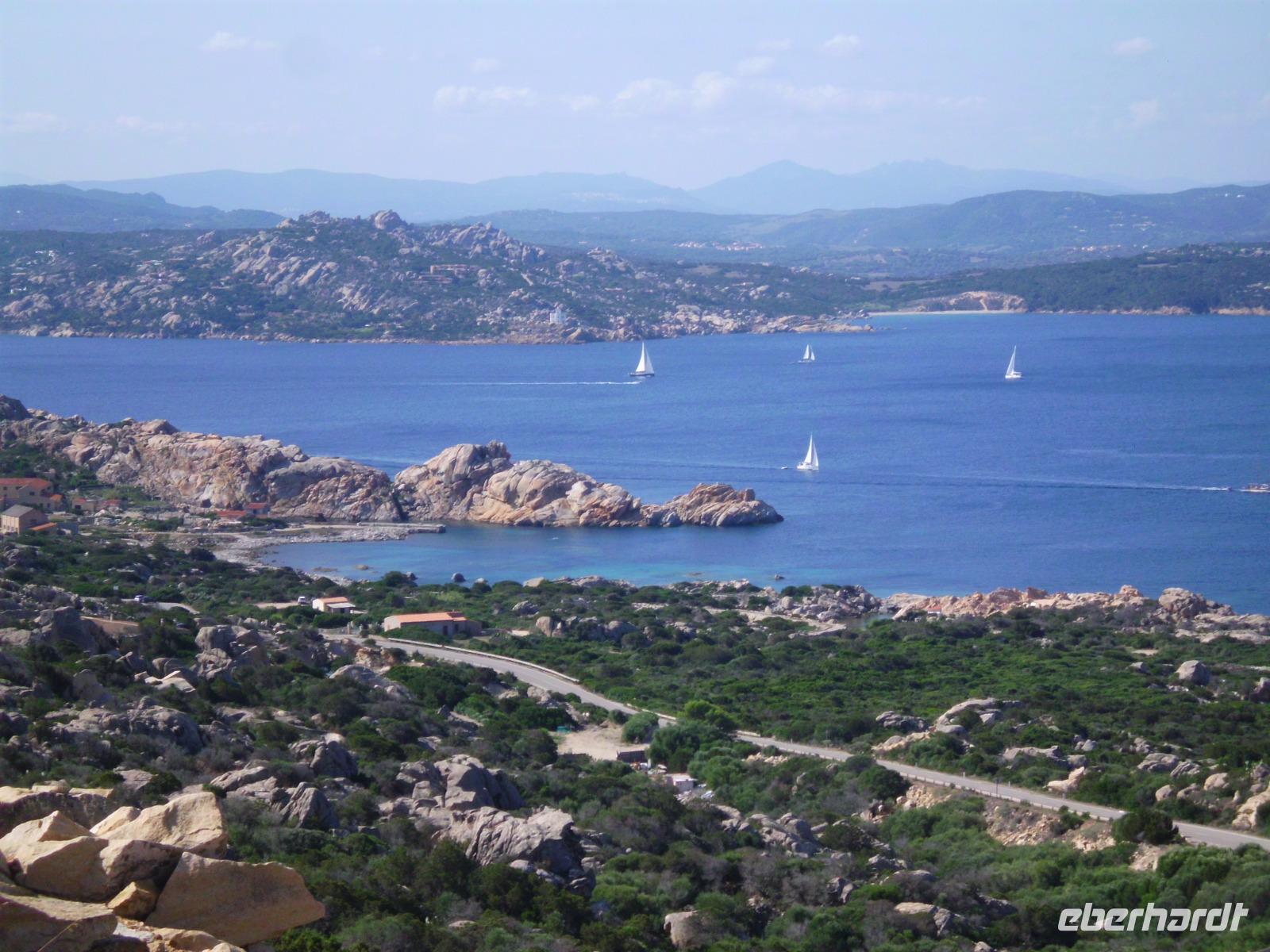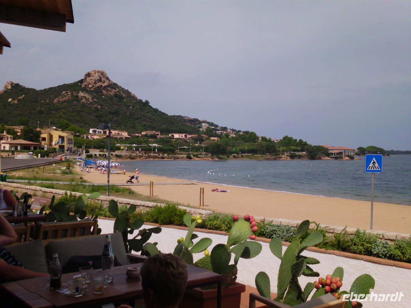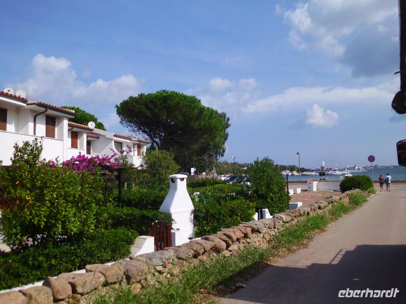 Wer kann schon nach Sardinien direkt fliegen? Bei Eberhardt Travel ist das möglich. Aber einen kleinen Wermutstropfen müssen wir mitnehmen, denn der Direktflug beschert und allen sehr zeitiges Aufstehen, um pünktlich 7.00 Uhr zu starten. Diese 1. Hürde gepackt, erhalten wir 17 Reiseteilnehmer unser Startpaket, gemeinsam mit den anderen Teilnehmern, die den direkten Charterflug nach Sardinien gewählt haben. In Olbia gelandet, bekommen wir auf dem Transfer erste Informationen zur Reise. Nun wird klar, dass nicht Roland der Reiseleiter ist, wie einige vermuteten. Aber er hat er seine Assistenzaufgaben auf dem Flughafen (Schild hoch halten) hervorragend gemeistert. Wir haben großes Glück und können sofort unsere Zimmer beziehen und ein wenig durchatmen. Unsere Neugier auf den kleinen Küstenort Cannigione und das herrliche Meer verdrängt die Müdigkeit und wir treffen uns 12 Uhr mit Anne zu einem ersten Erkundungsrundgang. Hochsommerliche Temperaturen um die 30 Grad laden zum ersten Badevergnügen, Kaffee trinken und Spaziergängen ein.