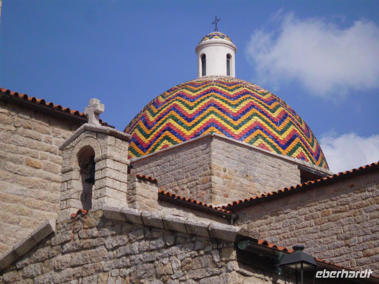 mit seinen gut erhaltenen kleinen Altstadthäusern. Unsere Fahrt geht weiter nach Porto Rotondo, ein mondäner luxuriöser Badeort, der aber gegenüber Porto Cervo eher Dorfcharakter hat. Einzigartig schön ist die Kirche San Lorenzo mit ihrer Holzdeckenverkleidung und dem 22m hohen Glockenturm aus Pinienholz. Sie wurde erst 2009 komplett fertiggestellt und besticht mit ihrer originellen modernen Architektur und einem Altar, der sich unmittelbar im Eingangsbereich befindet.