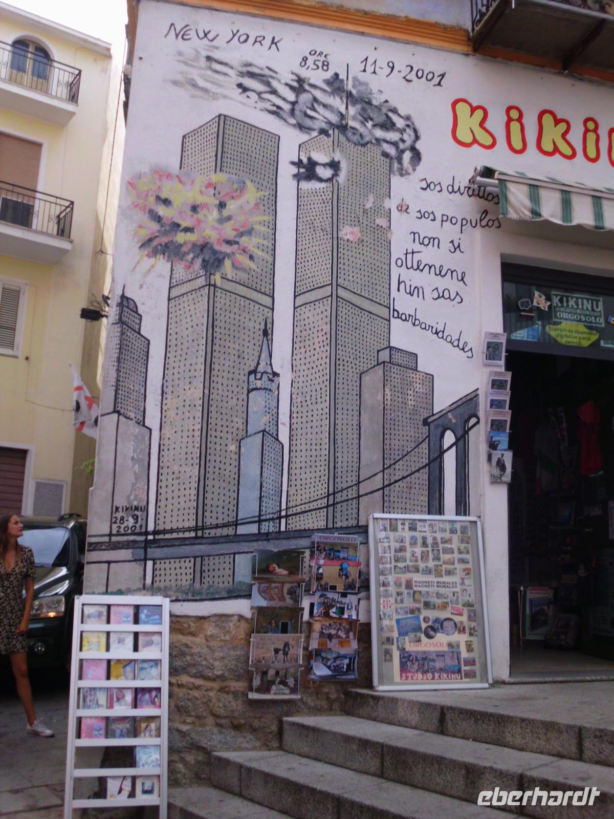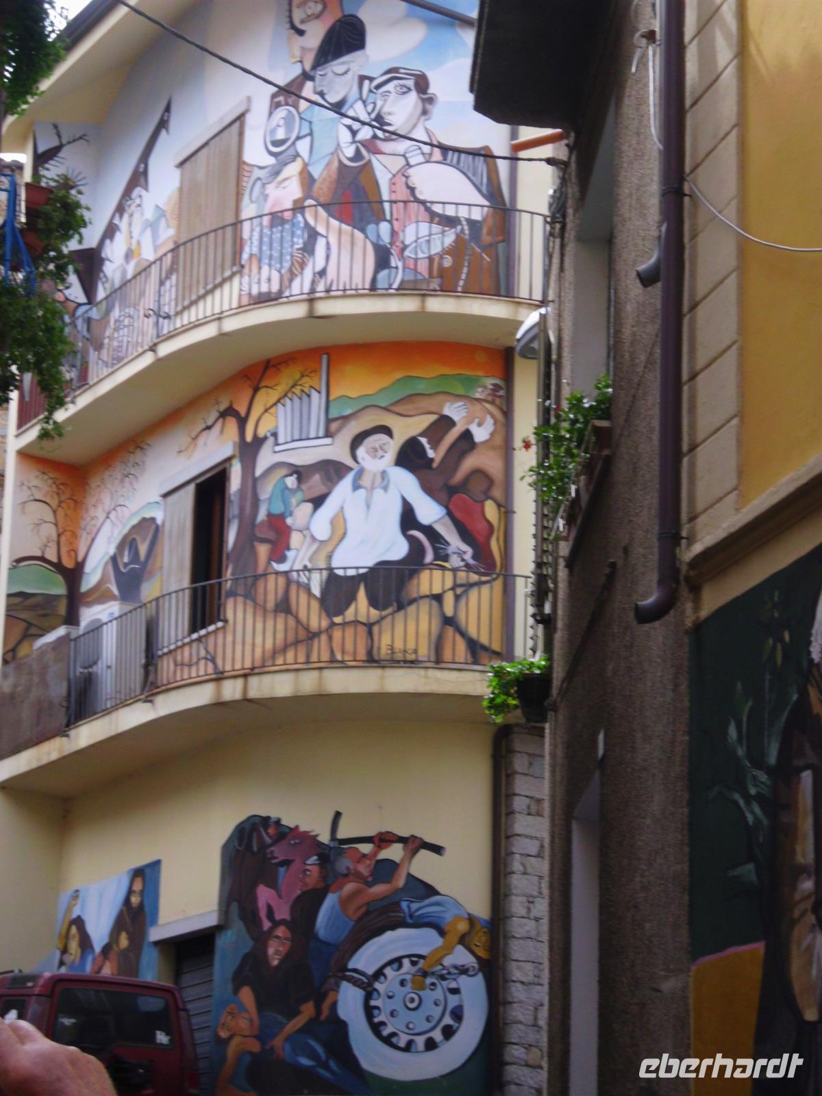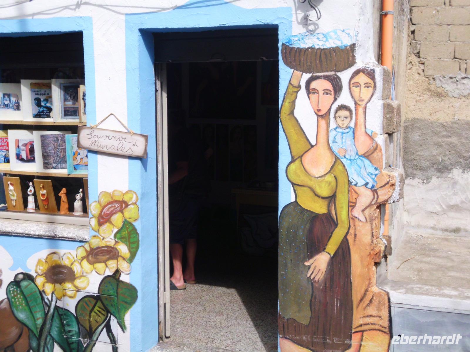 heute führt uns ein Ausflug ein Stück ins Landesinnere, entlang der Ostküste. Wir erfahren noch einmal viel über das Gebiet der Gallura, in welchem wir unser Hotel haben. In der Gallura finden wir viel Granitgestein, der zusammen mit dem Meer fantastische Postkartenmotive bildet. Wir fahren zuerst nach Orgosolo, einem zeitlang berüchtigten "Banditendorf". Reiseleiterin Veronica hatte uns viel von diesem Dorf erzählt und beruhigt erklärt, dass der Oberbandit in Haft ist. Er muss wohl gerade Ausgang gehabt haben, denn er stand fröhlich schwatzend am Gartenzaun. Das Dorf lockt aber zunehmend Touristen durch seine imposanten Gemälden an den Häuserwänden, die sogenannten "Murales". Veronica erklärt uns die Wichtigsten. Man kann sie nicht immer als schön bezeichnen, sie sind anklagend und tragen alle eine Botschaft.