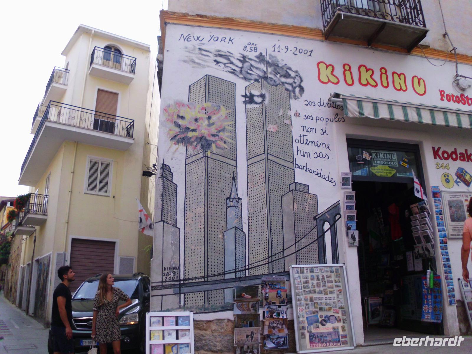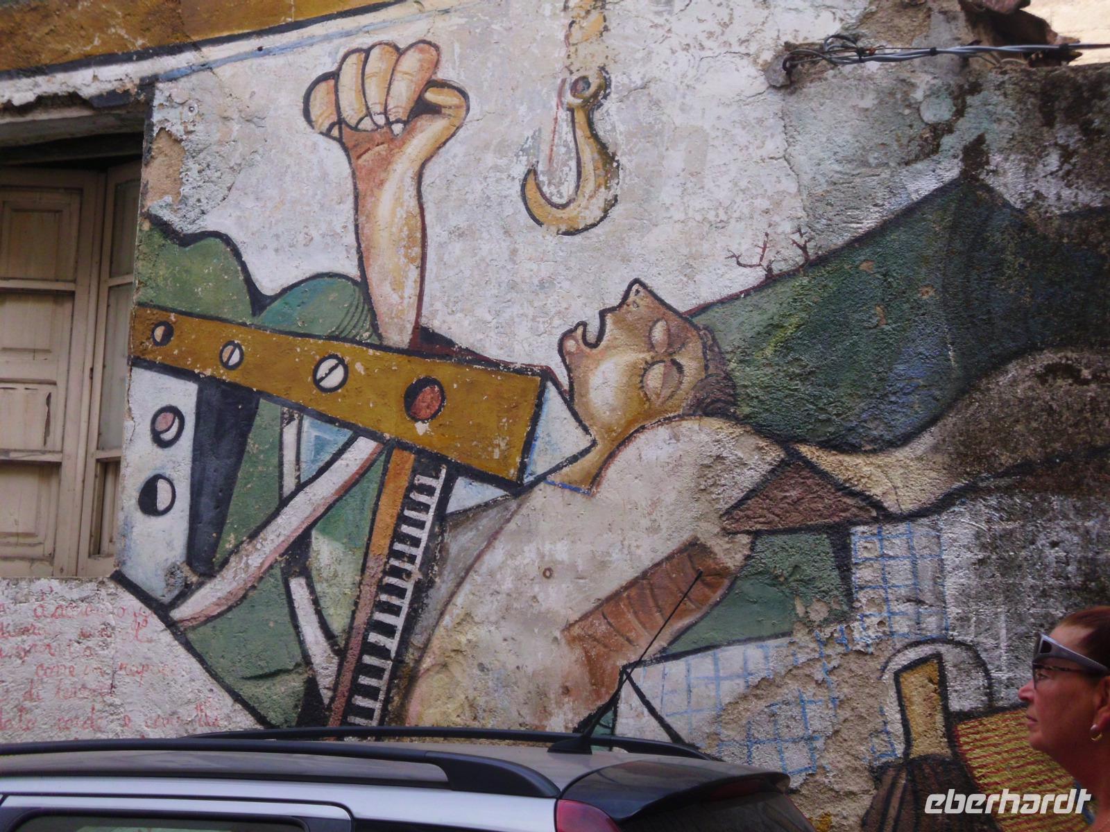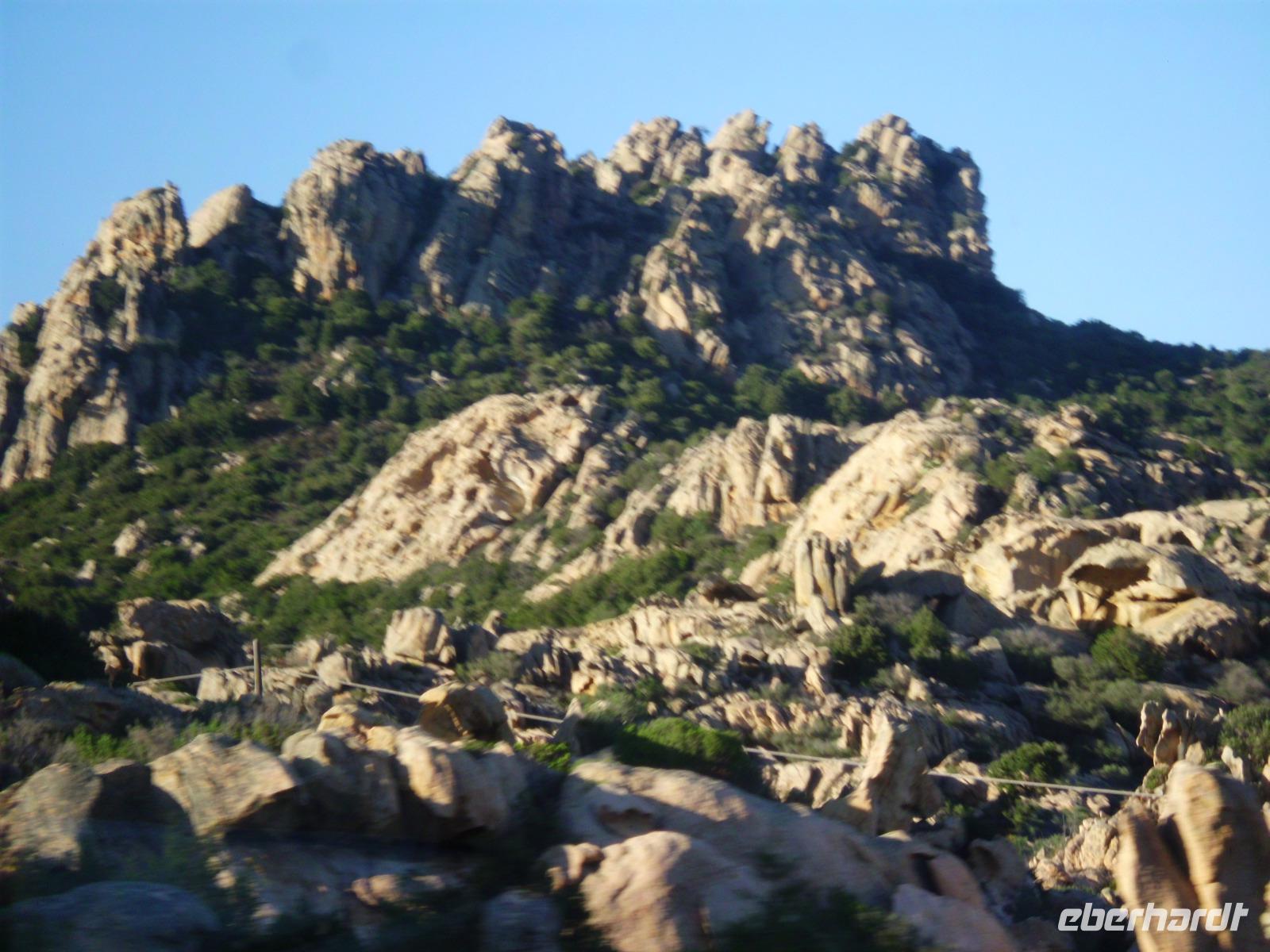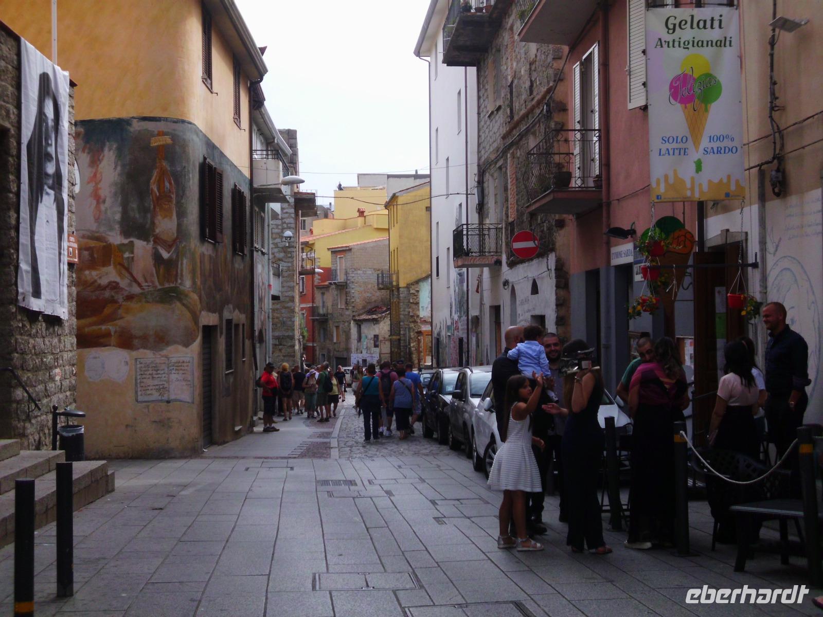 heute führt uns ein Ausflug ein Stück ins Landesinnere, entlang der Ostküste. Wir erfahren noch einmal viel über das Gebiet der Gallura, in welchem wir unser Hotel haben. In der Gallura finden wir viel Granitgestein, der zusammen mit dem Meer fantastische Postkartenmotive bildet. Wir fahren zuerst nach Orgosolo, einem zeitlang berüchtigten "Banditendorf". Reiseleiterin Veronica hatte uns viel von diesem Dorf erzählt und beruhigt erklärt, dass der Oberbandit in Haft ist. Er muss wohl gerade Ausgang gehabt haben, denn er stand fröhlich schwatzend am Gartenzaun. Das Dorf lockt aber zunehmend Touristen durch seine imposanten Gemälden an den Häuserwänden, die sogenannten "Murales". Veronica erklärt uns die Wichtigsten. Man kann sie nicht immer als schön bezeichnen, sie sind anklagend und tragen alle eine Botschaft.