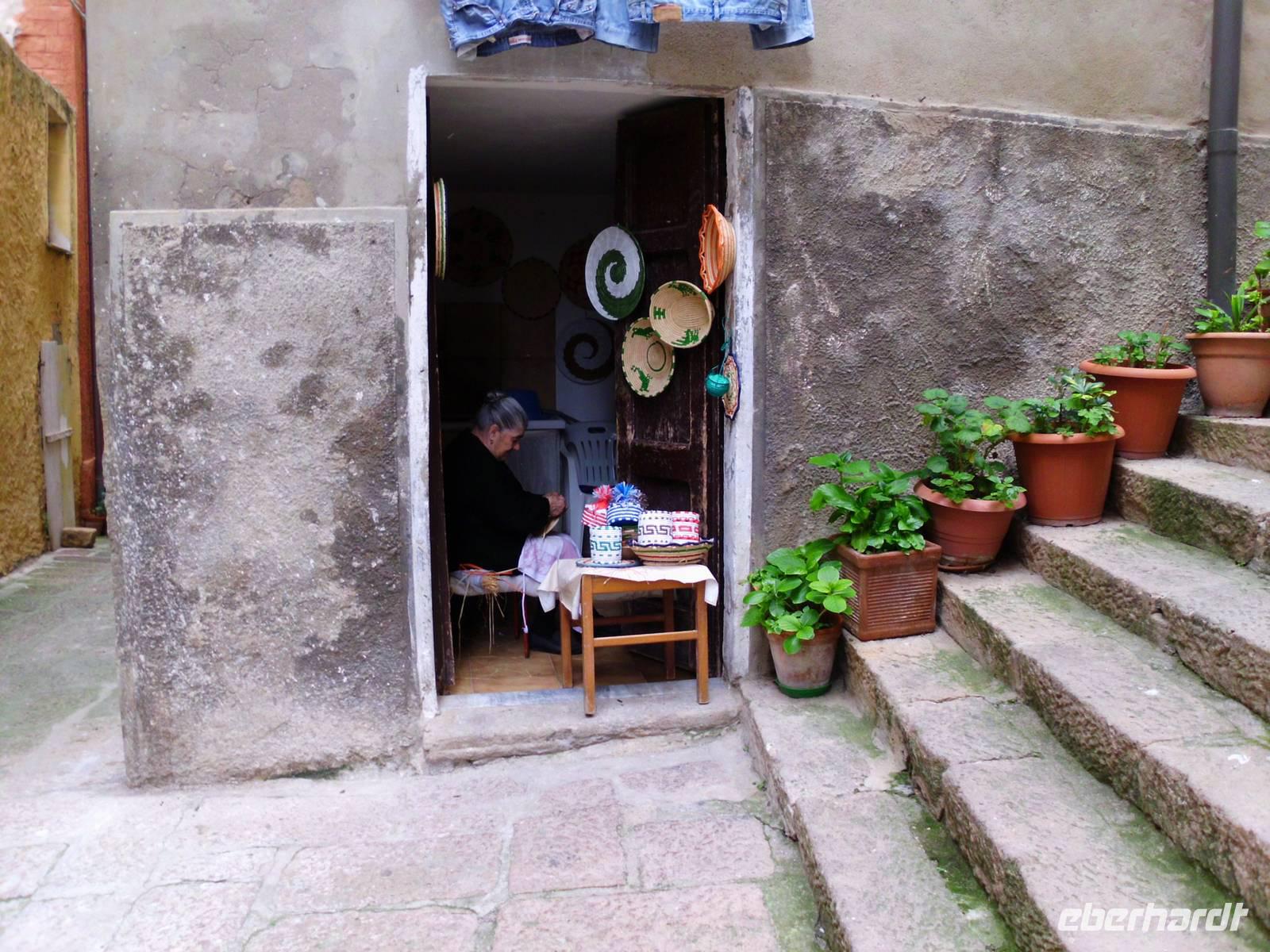Der heutige Ausflug führt uns ins Herz der Gallura. 19 Wanderer und Kulturinteressierte haben sich vereint und machen diesen Ausflug gemeinsam. Es geht ins Herz der Gallura, das Gebiet im Nordosten Sardiniens. Gallura heißt auch „Korkeiche" und Sardinien ist der größte Korkproduzent. Auf unserer Fahrt sehen wir viele Korkeichen, erfahren über Kork als sehr robustes, aber auch hygienisches Material. Kork schützt die Bäume vor Feuer, weil es nicht verbrennt und es verrottet nicht. Eindrucksvoll ist dann die Korkfabrik für uns und erstaunt sind wir, was man alles aus diesem Material fertigen kann, selbst schicke Handtaschen. .. Es kommt noch besser, im Örtchen Tempio lotst uns Rainer in einen Laden, der selbst schicke Korkkleider produziert und verkauft. Da dies einmalig ist, sind die Besitzer schon aus einem Fernsehinterview bekannt. Es haut uns wirklich um, wir möchten die Kleidung nicht tragen, aber allein schon die Idee. Später bummeln wir noch in Tempio, irgendwie ein uriger Ort mit vielen Einheimischen, gar nicht so touristisch.