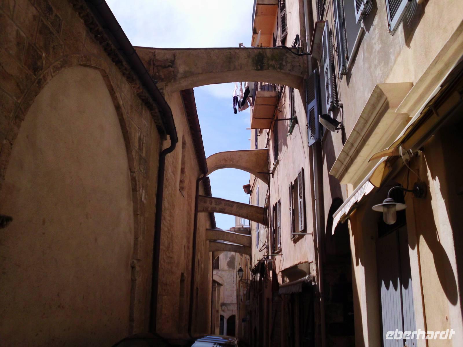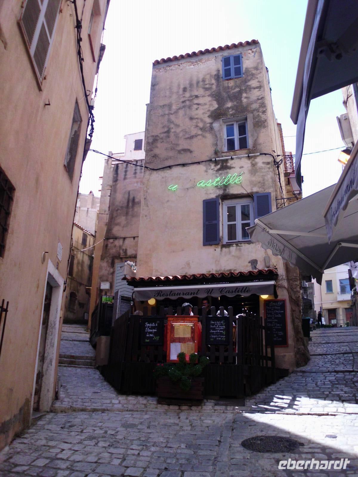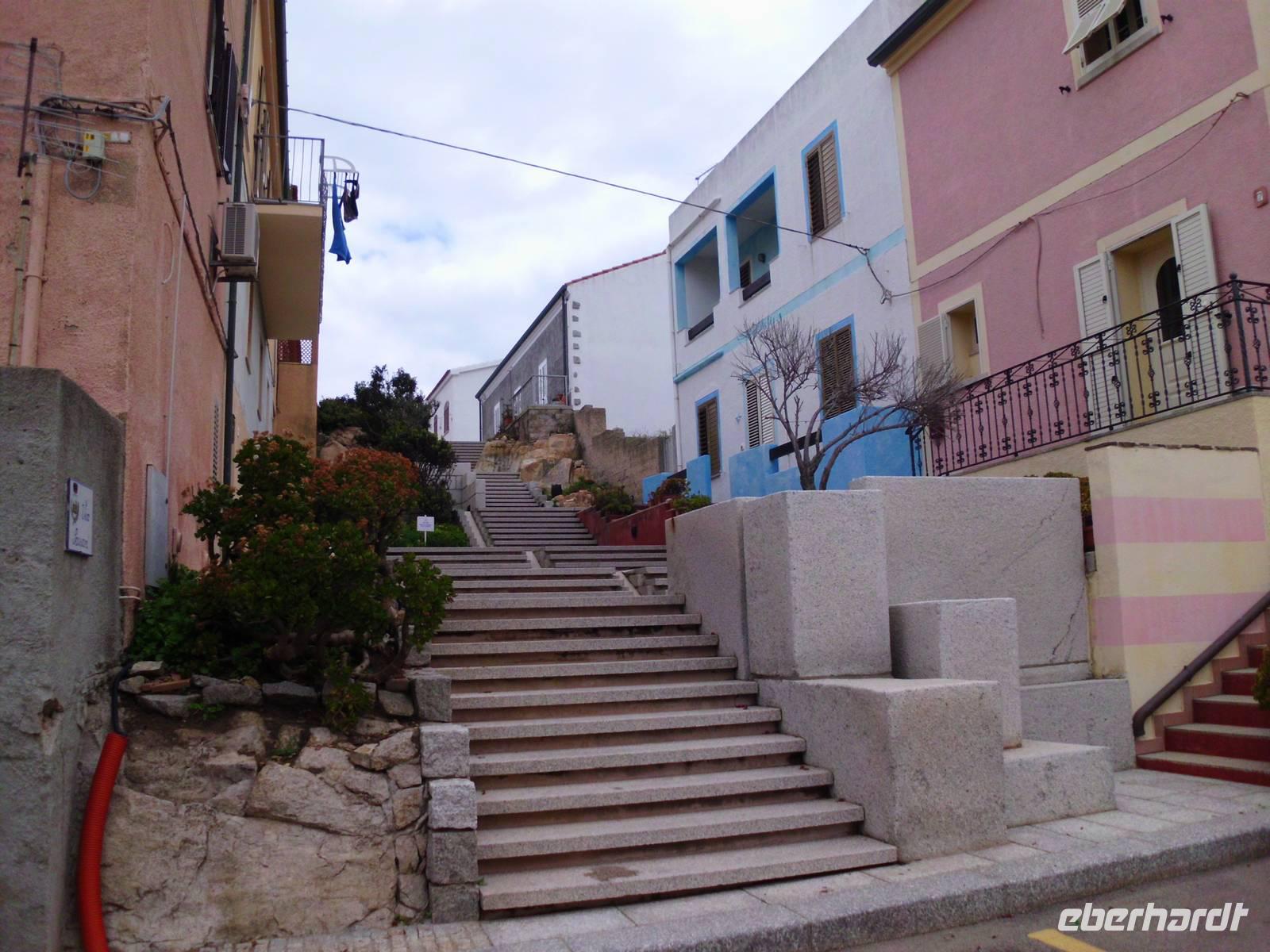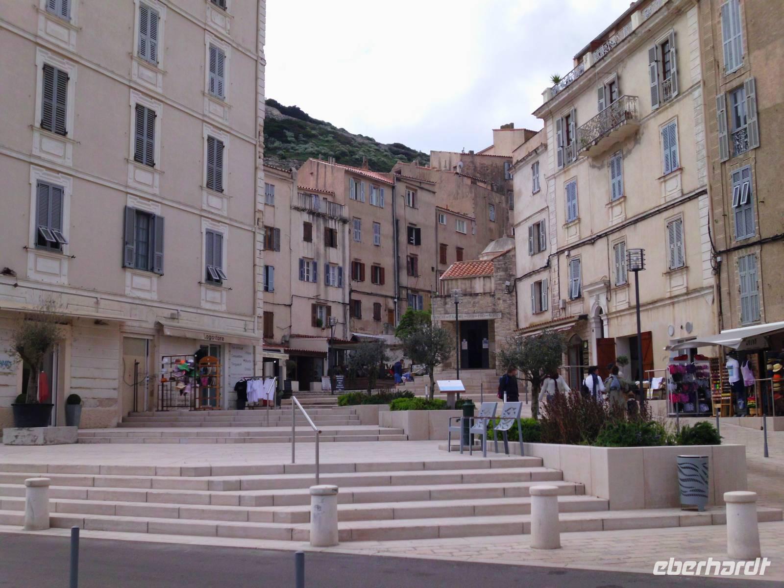 Gesehen haben wir sie schon von Weitem und es ist tatsächlich Schnee, was noch auf den Bergkämmen liegt. Heute dürfen wir einen Teil Korsikas selbst kennenlernen und die Neugier auf diese Insel macht die Gruppe komplett. Im Hafen von Santa Teresa steht unsere Fähre bereit. Es sind an dieser Stelle nur 12 km bis Korsika. Schon die Hafeneinfahrt in Bonifacio ist beeindruckend, links und rechts hohe Felsen. In Korsika angekommen, verabschieden wir am Hafen von Bonifacio unsere Wanderer, die an diesem Tag wirklich grandiose Ausblicke erleben, die uns Kulturleuten verborgen bleiben. Dennoch, die Stadt hat was, viele mittelalterliche Strukturen, sie ist touristisch, lebt aber durch die Einheimischen. Fasziniert haben uns die ellenlangen, steilen Treppen zu den Wohnungstüren. Natürlich für uns unvorstellbar. Die engen Gassen machen das Stadtbild interessant. Man entdeckt immer wieder was Neues, wenn man um die Ecke biegt.