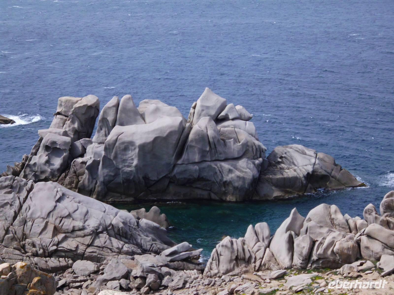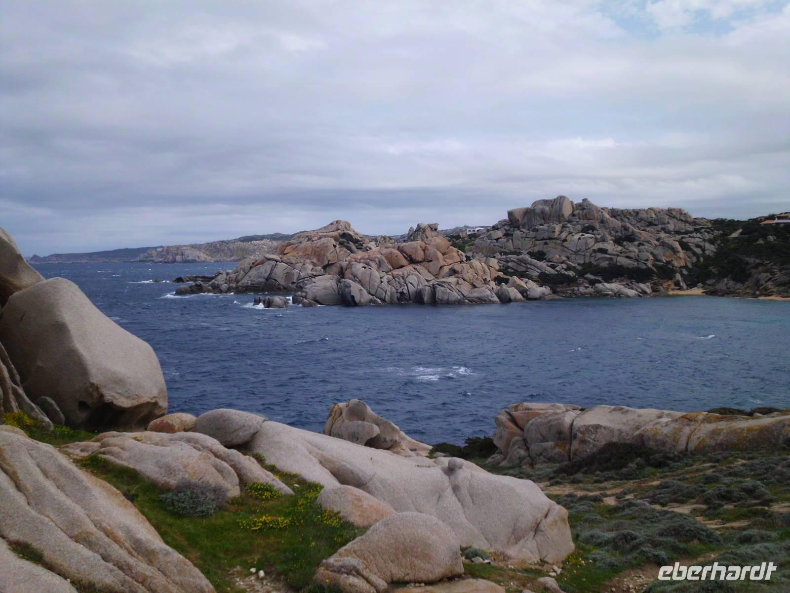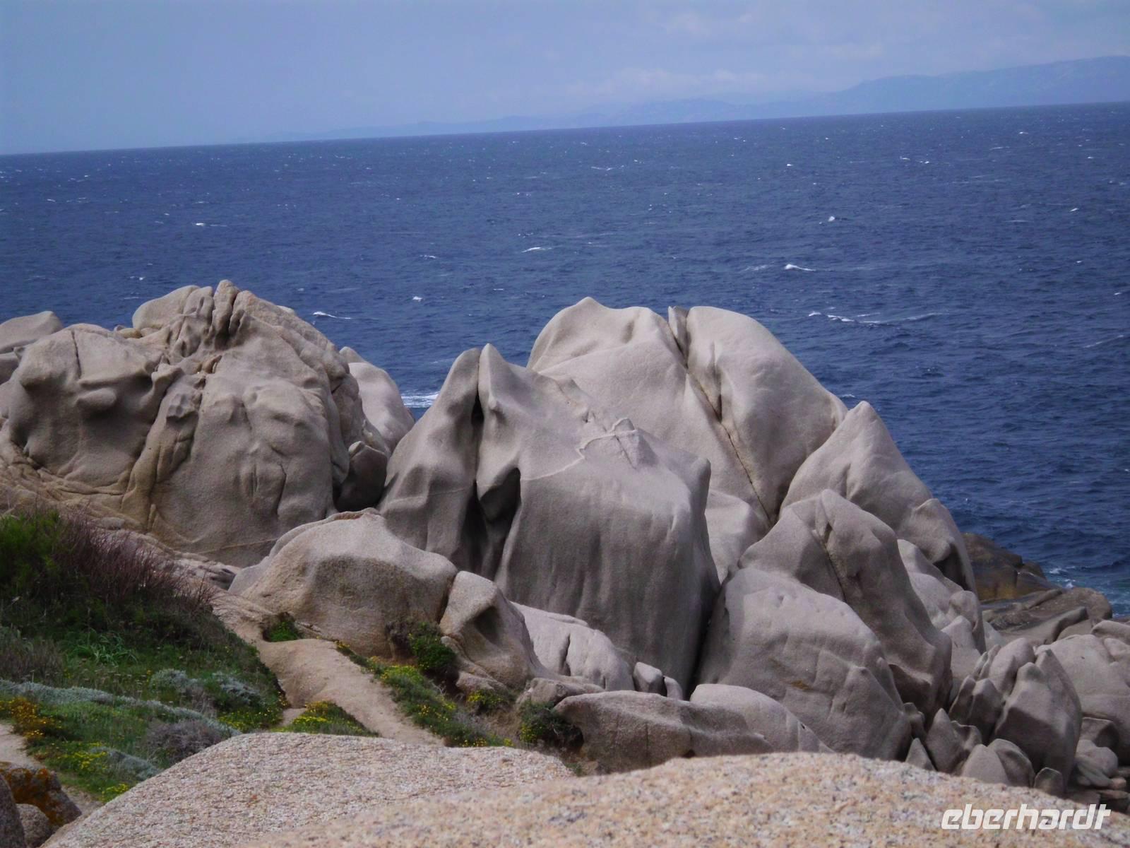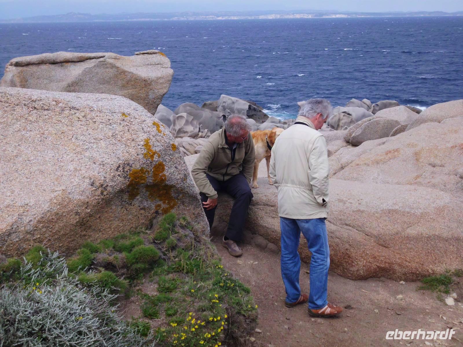 Für die Kulturgruppe steht heute der Ausflug nach Maddalena auf dem Programm, die Wandergruppe wandert vom Hotel aus zum berühmten Capo Testa. Unsere Fähre nach Maddalena startet ab Palau, ein bekannter Touristenort mit einem großen Hafen. Die maddalenischen Inseln sind ein Inselarchipel bestehend aus 62 Inseln, davon 7 Hauptinseln und neben La Maddalena ist Caprera, die Garribaldi gehörte, mit die Bedeutendste. Die Fähre bringt uns in ca. 20 min nach La Maddelena, dabei haben wir noch den Bären, ein Felsgebilde, im Blick. In La Maddalena bringt uns der Bus rund um die Insel, wir erfahren viel und sehen traumhafte Badebuchten, die typisch für die Insel sind. Ein bißchen Sonne fehlt und somit fällt auch die Farbe des Wassers schon bescheidener aus. Für einen Badeaufenthalt an einem der schönen Strände ist es zu frisch, deshalb verkürzen wir den Inselaufenthalt und fahren noch zum Capo Teste. Erfreulicherweise hält das Wetter und wir sehen neben herrlichen Blumenwiesen, die eindrucksvollen und lustigen Felsgebilde, die Wind und Wetter hier zu Figuren geformt haben. Traumhafte Ausblicke ! Später werden uns das auch unsere Wanderer bestätigen, die die wunderschöne Wandertour hier entlang gemacht haben.