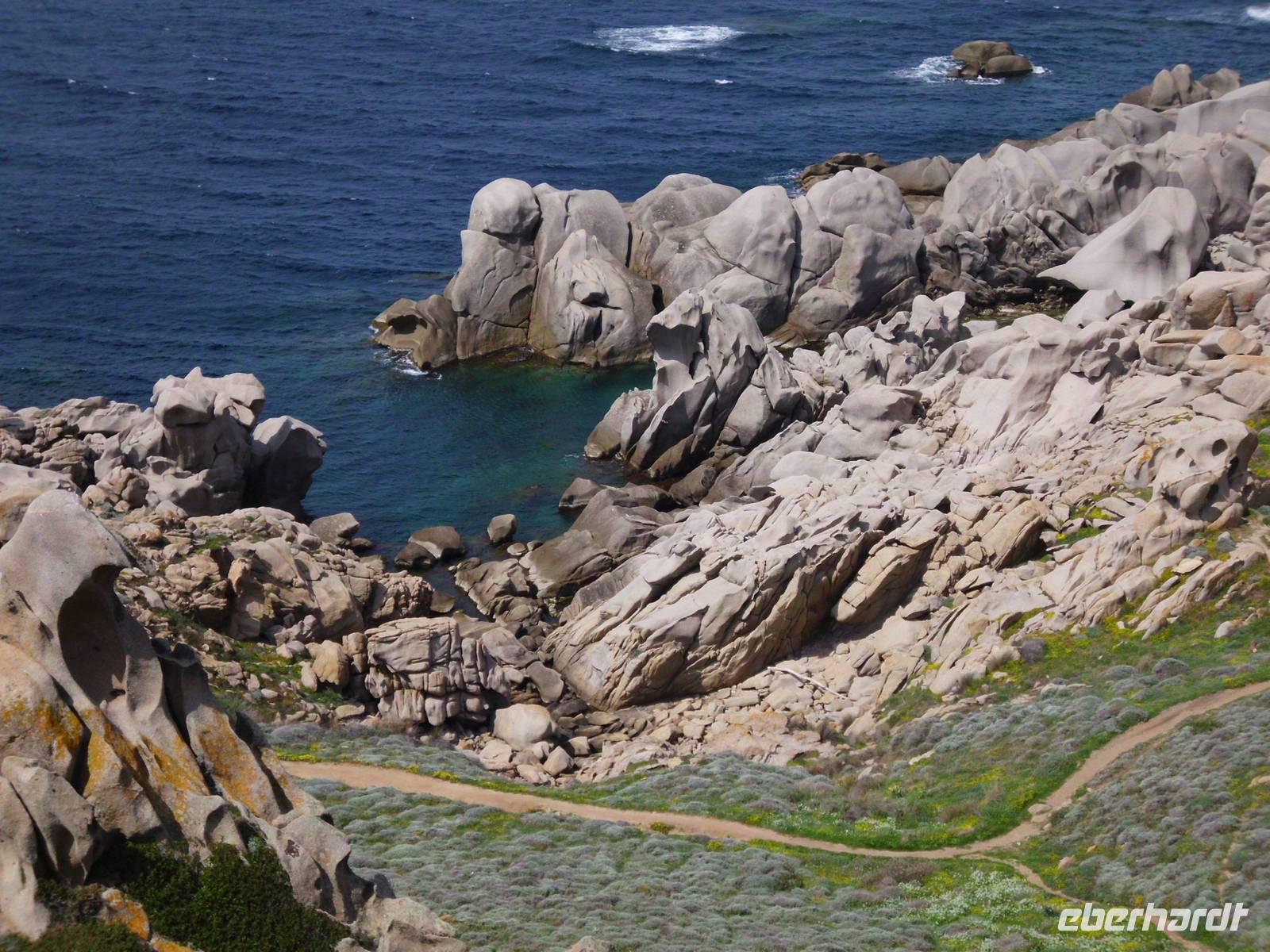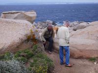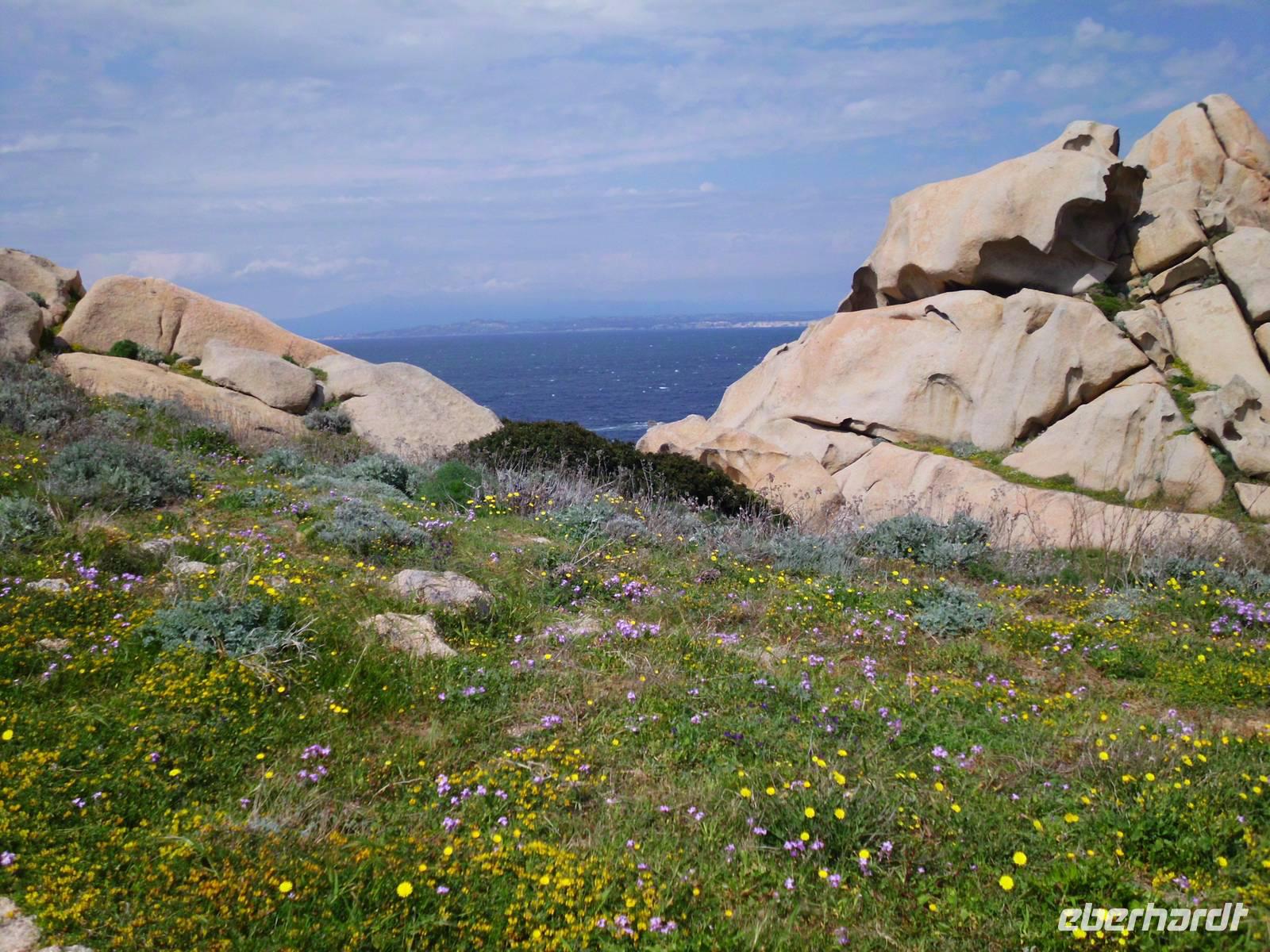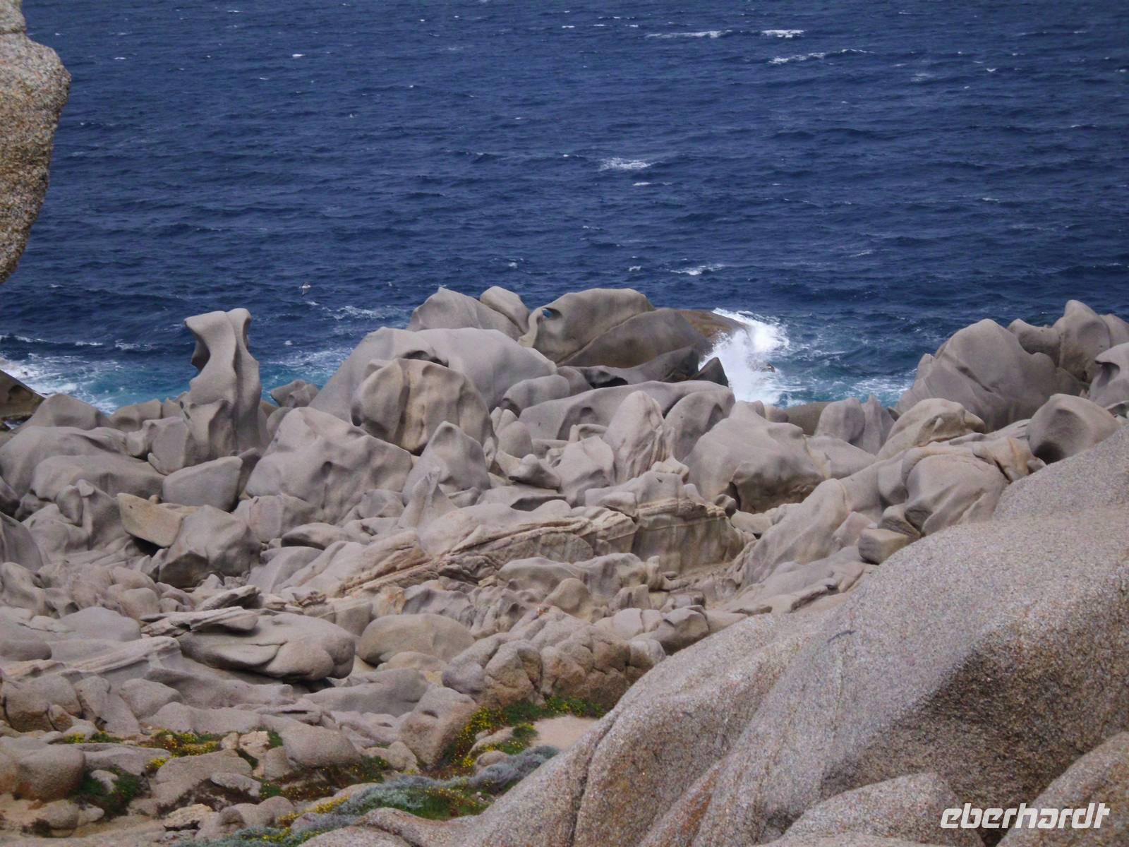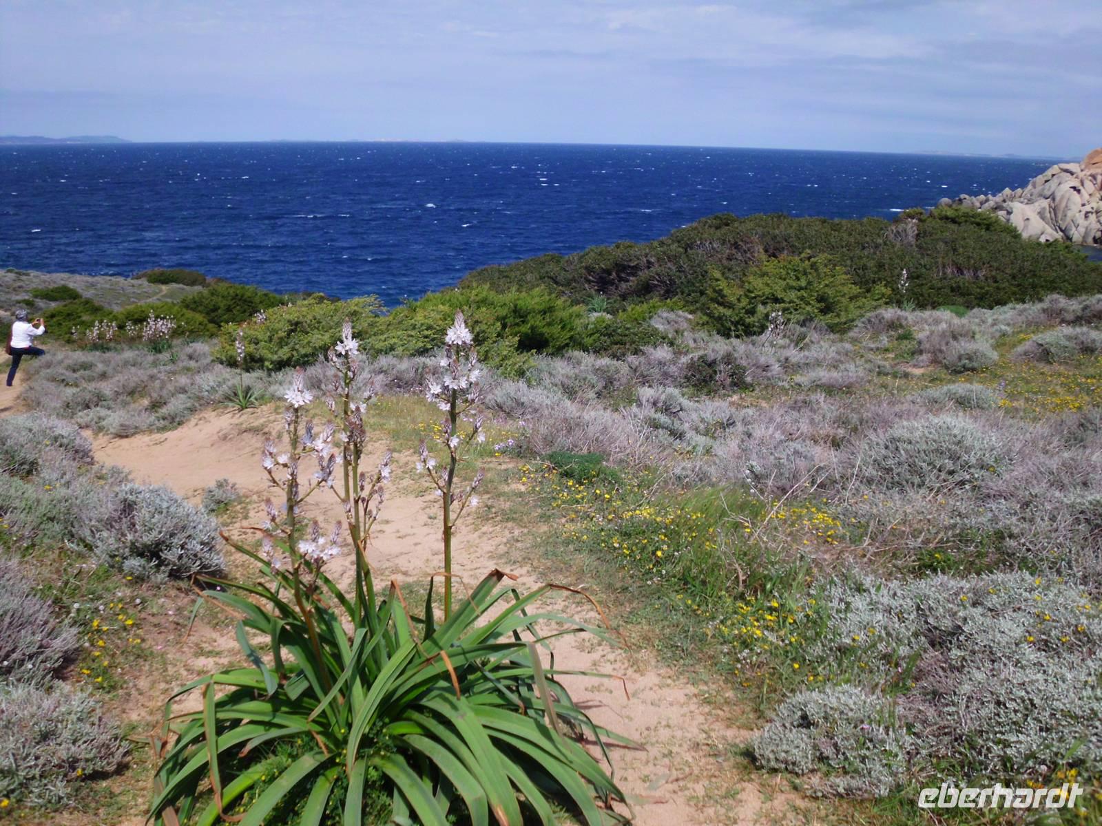 Für die Kulturgruppe steht heute der Ausflug nach Maddalena auf dem Programm, die Wandergruppe wandert vom Hotel aus zum berühmten Capo Testa. Unsere Fähre nach Maddalena startet ab Palau, ein bekannter Touristenort mit einem großen Hafen. Die maddalenischen Inseln sind ein Inselarchipel bestehend aus 62 Inseln, davon 7 Hauptinseln und neben La Maddalena ist Caprera, die Garribaldi gehörte, mit die Bedeutendste. Die Fähre bringt uns in ca. 20 min nach La Maddelena, dabei haben wir noch den Bären, ein Felsgebilde, im Blick. In La Maddalena bringt uns der Bus rund um die Insel, wir erfahren viel und sehen traumhafte Badebuchten, die typisch für die Insel sind. Ein bißchen Sonne fehlt und somit fällt auch die Farbe des Wassers schon bescheidener aus. Für einen Badeaufenthalt an einem der schönen Strände ist es zu frisch, deshalb verkürzen wir den Inselaufenthalt und fahren noch zum Capo Teste. Erfreulicherweise hält das Wetter und wir sehen neben herrlichen Blumenwiesen, die eindrucksvollen und lustigen Felsgebilde, die Wind und Wetter hier zu Figuren geformt haben. Traumhafte Ausblicke ! Später werden uns das auch unsere Wanderer bestätigen, die die wunderschöne Wandertour hier entlang gemacht haben.