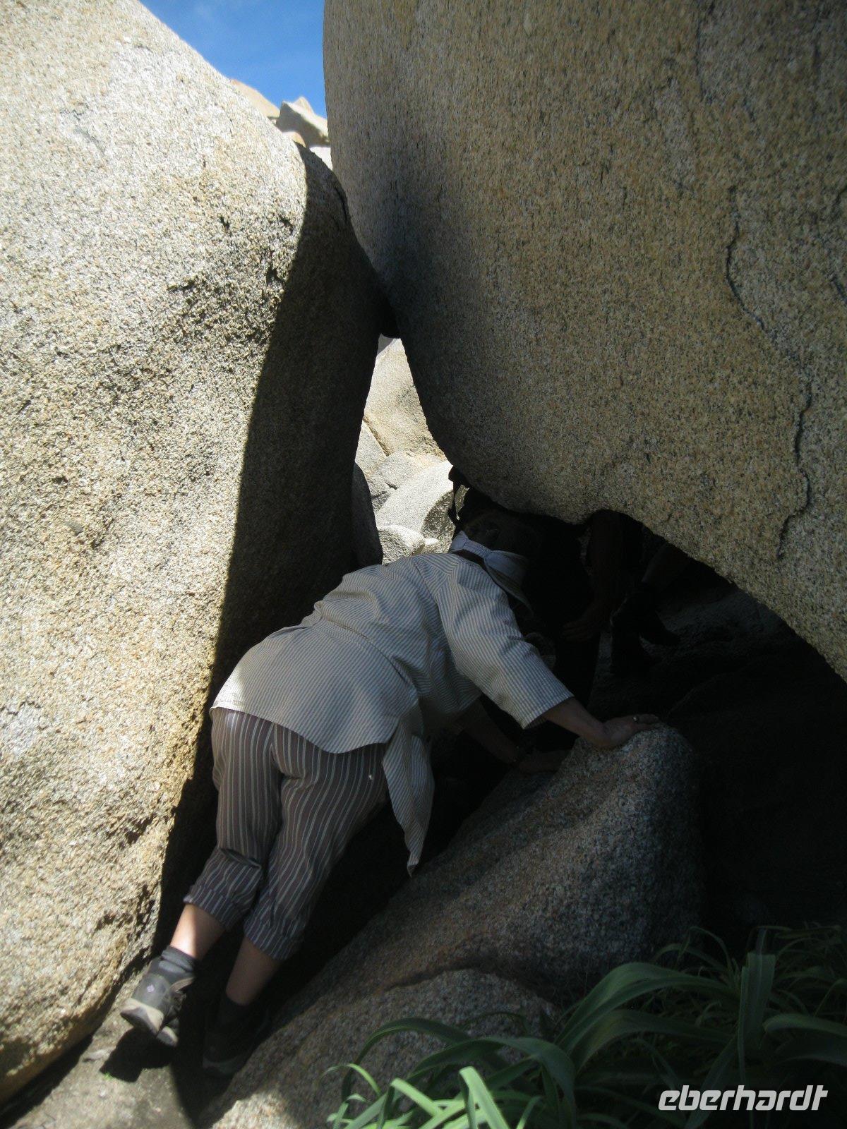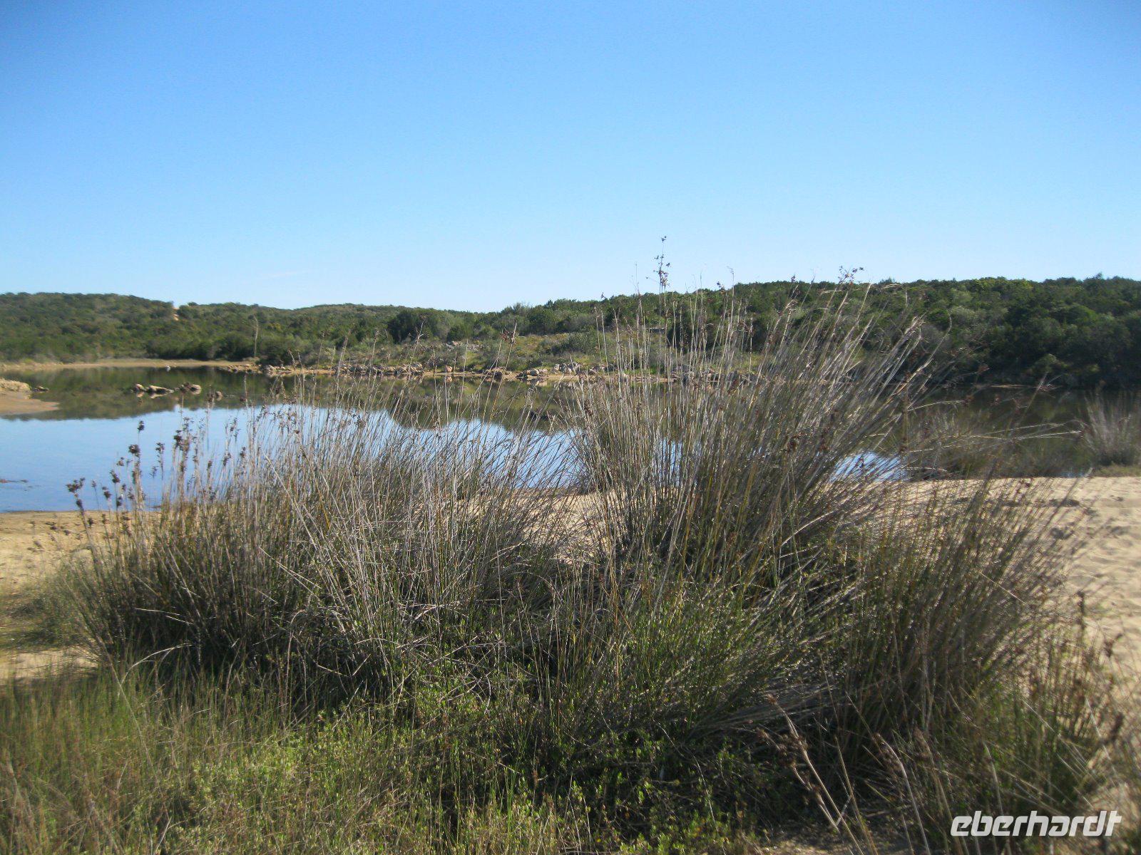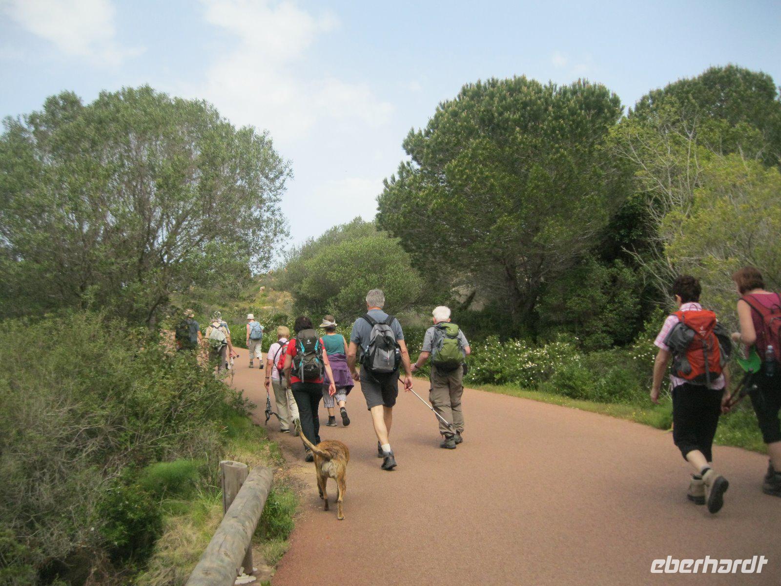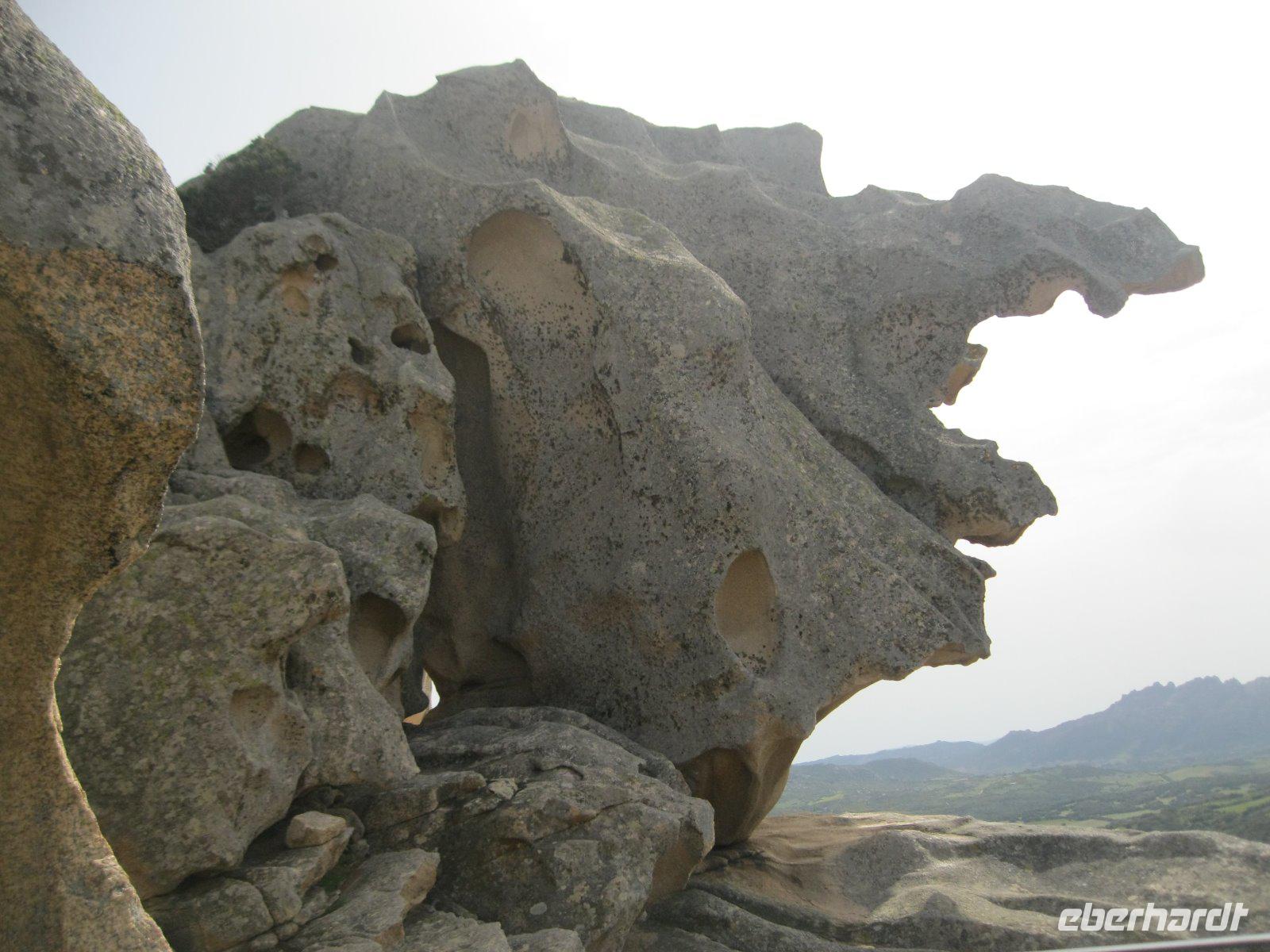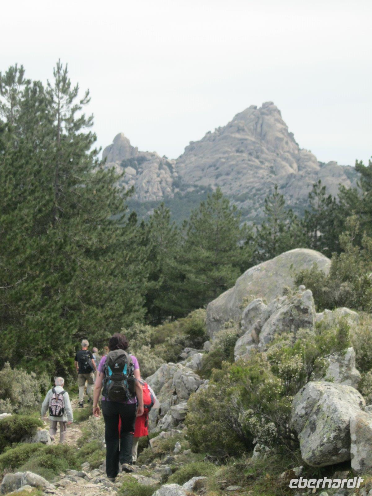 Nach einer kurzen Busfahrt setzten wir mit der Fähre von Palau nach La Maddalena über. Vom Meer aus hat man einen tollen Blick zum "Bärenfelsen". Die Insel Caprera, Ausgangspunkt unserer heutigen Tour, erreichten wir über eine Brücke. Zentrum der Insel ist das Anwesen des ital.Nationalhelden Garibaldi. Unsere Wanderung führte uns heute ein Stückchen durch den 1996 gegründeten "Parco Nazionale dell'Arcipelago di La Maddalena", wo wir gleich vom Inselhund begrüßt wurden. Er schloß sich sofort unserer Gruppe an und kletterte sogar mit auf den 180 m hohen Tejalone. Danach musste er ein erfrischendes Bad im Stausee nehmen. Am Bus verabschiedeten wir uns von Ihm. Die Mittagszeit verbrachten wir im Hafenstädtchen La Maddalena und ließen uns vom Angebot der Eisdielen verführen. Auf der Rückfahrt fuhren wir noch zum Capo d´Orso und wollten dem Bären das Fell kraulen. Ein kleiner Aufstieg und wir wurden mit einer tollen Aussicht belohnt. Die umliegenden Felsgebilde regten unsere Fantasie, von "kniende Modonna mit Kind "bis brüllendes Nilpferd" an. Die heutige Landschaft war geprägt von Maccia Flächen, Schirmpinien und bizzaren Felsformationen.