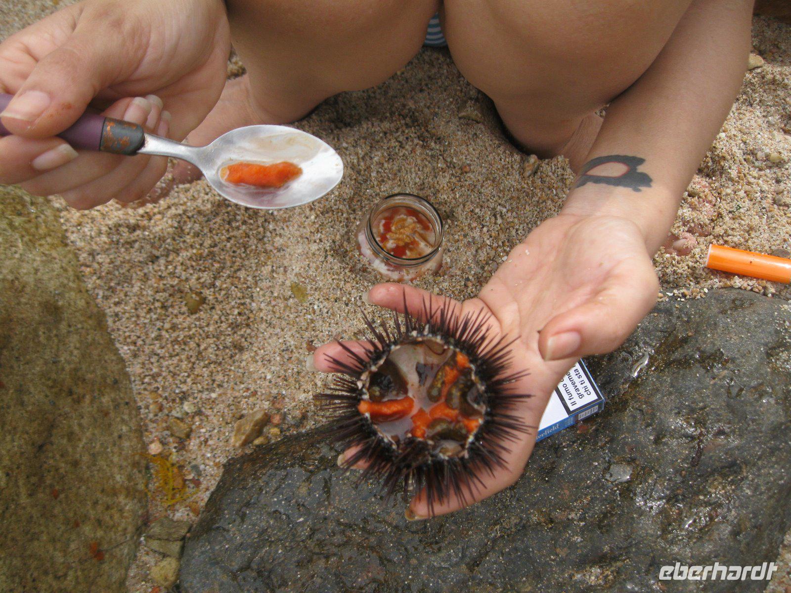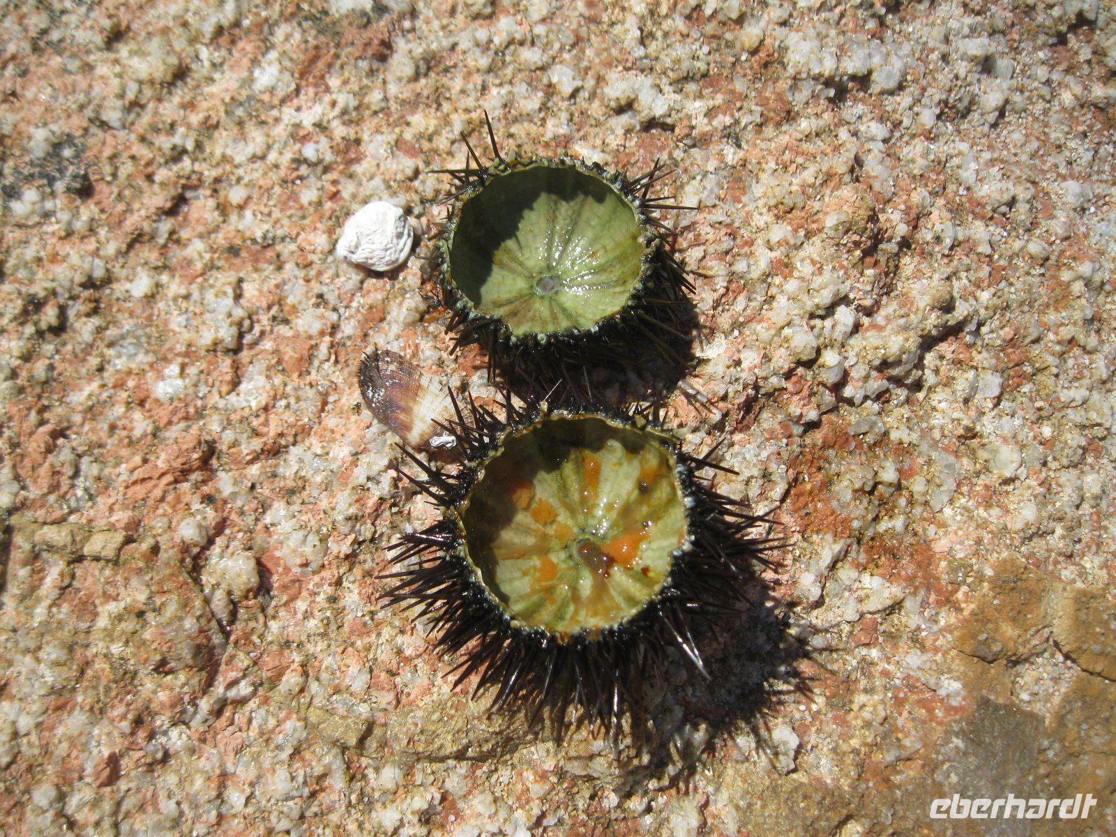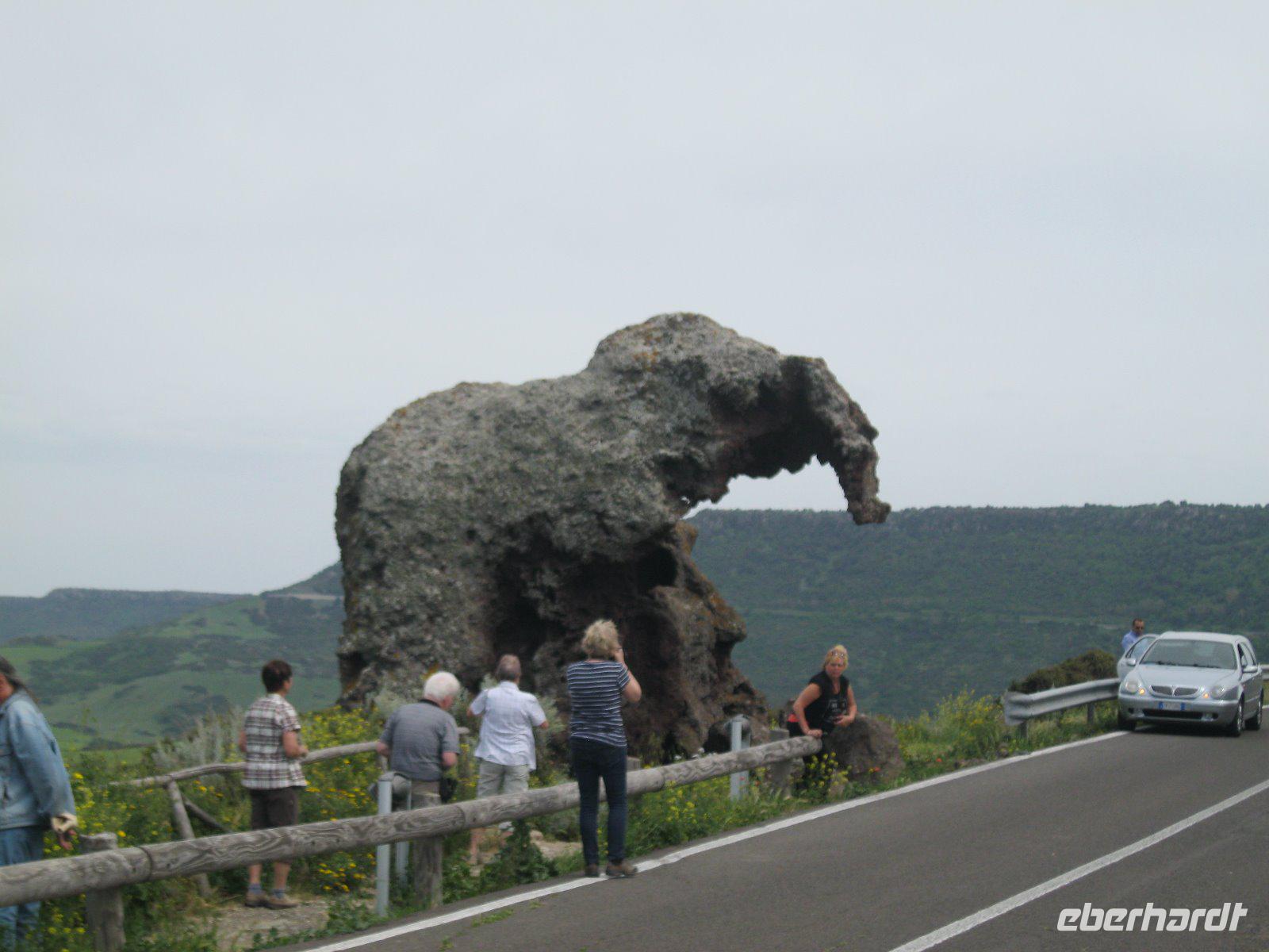 Die heutige Tour führte uns von der Ost- zur Westküste, einmal quer durch die Gallura. Rainer brachte uns noch eine Begleitung mit, "Semmel" - blond, treue Augen, streichelbedürftig, Hängeohren und vier Beine. So verstärkt zogen wir los um die rote Granitinsel -Isola Rossa -zu erkunden. Immer wieder tolle Ausblicke aufs blaue Meer und die umliegenden kleineren Inseln, sowie die vielen Farben der blühenden Maccia. Bei einer Rast beobachteten wir den Seeigel Fang und ließen uns das öffnen der "Gefangenen" zeigen. Wir durften sogar kosten. Im Anschluß fuhren wir nach Castelsardo, spektakulär auf einen Felsvorsprung im Meer gelegen. Die Herzstücke der Stadt sind natürlich die mittelalterlichen Straßen und das Castello, sowie die Kirche Santa Maria (mit dem ältesten Kruzifix Sardiniens) und die zum Meer hin gelegene Kathedrale Sant Antonio Abate. Das Wahrzeichen dieser Küstenregion den "Roccia dell'Elefante ", eine bizarre Trachytfels Erscheinung, mussten wir unbedingt gesehen haben. Dort gab es nicht nur einen Fotostop, sondern auch eine Mirto Verkostung und Pistazientörtchen: Es war Bergfest. Vergingen doch die letzten Tage wie im Flug.