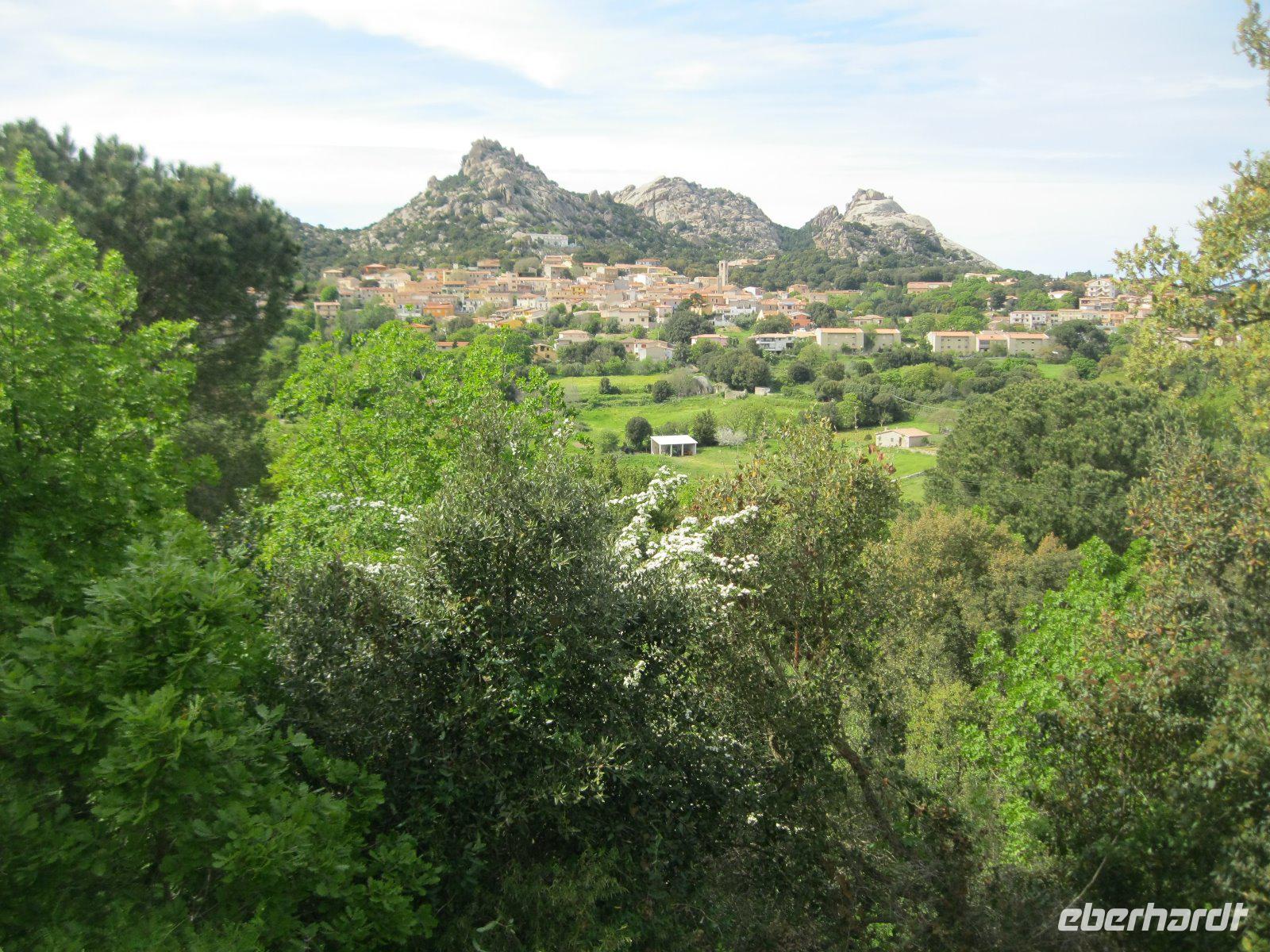 Heute wollten wir hoch hinauf. Unser Ziel war das wild zerklüftete Gebiet unterhalb des 1359 m hohen Monte Limbara. Die Fahrt führte uns erneut durch die Gallura, diesmal vorbei an den Korkeichenwäldern. Die Wandertour ging heute durch einen Wald (der auf Sardinien selten ist). Wir suchten uns einen Rastplatz mit Blick auf Korsika. Begleitet wurden wir natürlich wieder von unserer "vierbeinigen Blondine ", die uns immer einige Schritte voraus war. Nach unserer Rundwanderung, unterhalb des mit Sendemasten bestückten Gipfels,fuhren wir zurück nach Tempio Pausania. Dort sind die meisten Korkfabriken angesiedelt und eine davon wollten wir besichtigen. Rainer erklärte uns die Verarbeitungsweise bis zum Verkauf. Auf unserem Programm stand aber noch -sardische Küche-und damit wurden wir im Agriturismo "Il Munto di Gallura" bewirtet. Alles was serviert wurde , wird im hauseigenen Betrieb hergestellt. Nicht nur die Speisen sondern auch der Wein und Mirto waren SEHR GUT. So wurde es ein recht lustiger Nachmittag.