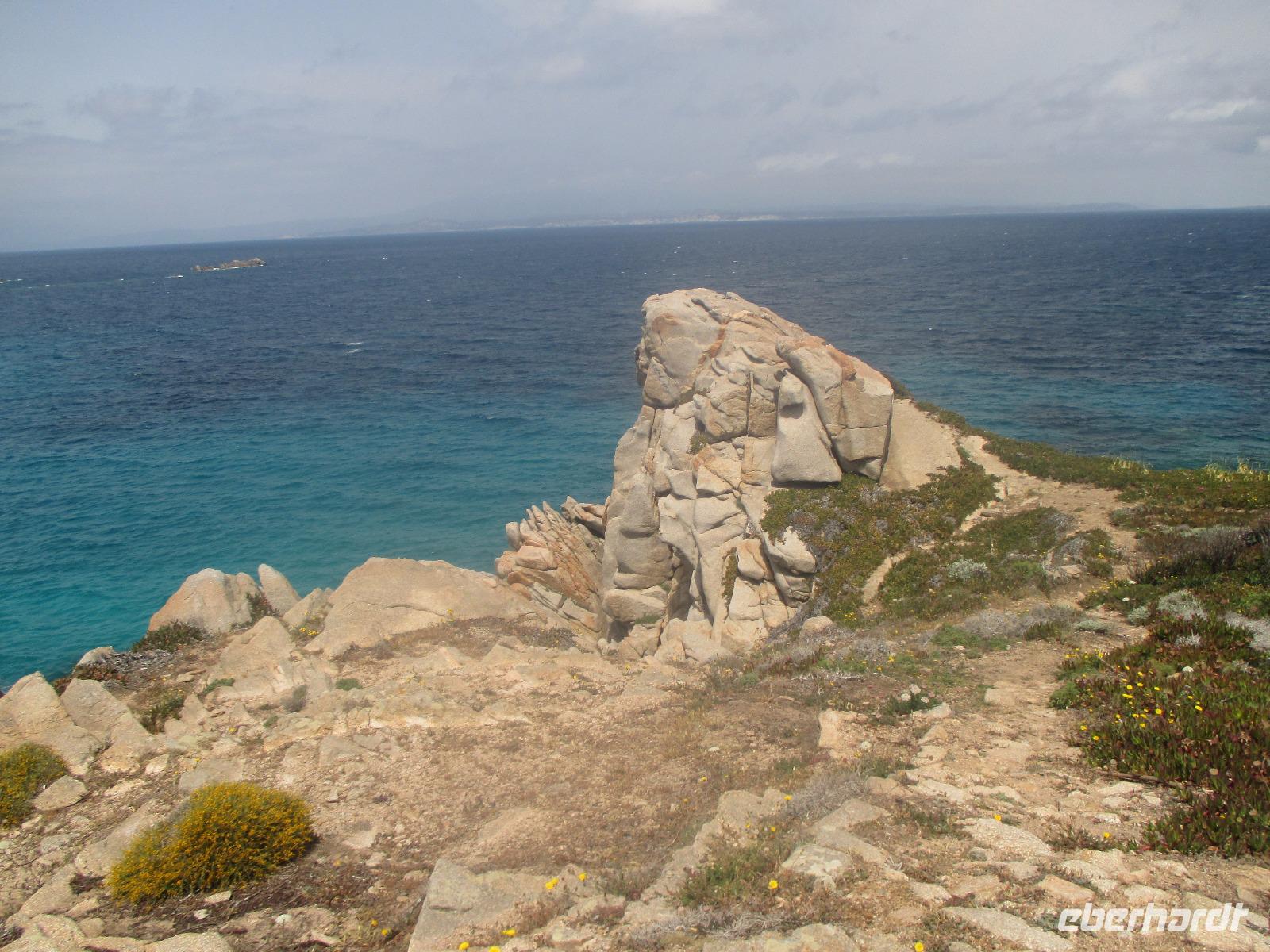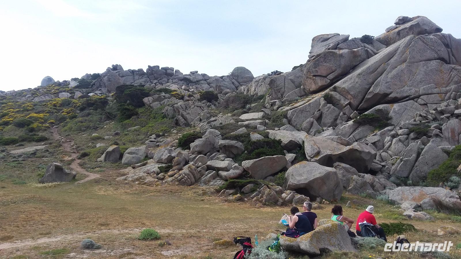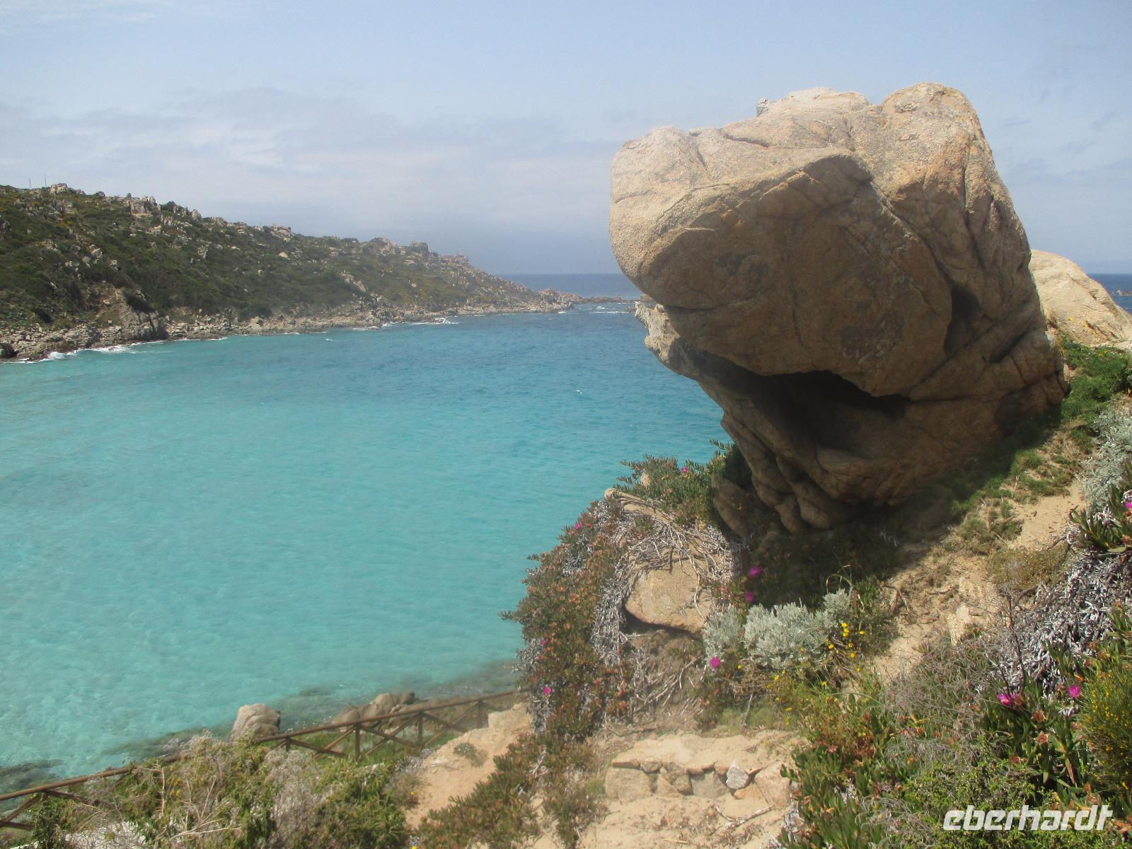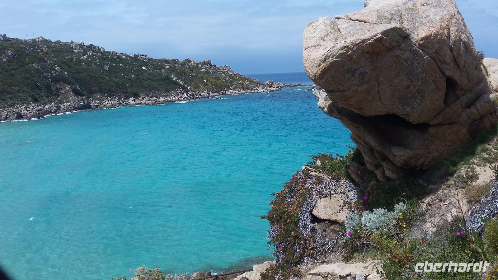 Unser letzter Tag auf Sardinien endet mit einer Wanderung zum Capo Test. Der Ausgangspunkt dieser Wanderung liegt nur unweit von unserem Hotel. Diese Wanderung zeichnet sich durch riesige, verformte Granitfelsen und anspruchsvolle Kletterpassagen aus. Oberhalb der felsigen Küste verstecken sich vereinzelt Hippiehöhlen, die heute noch besiedelt sind und deren Bewohner auf das Mindeste reduziert und in völliger Abgeschiedenheit leben.