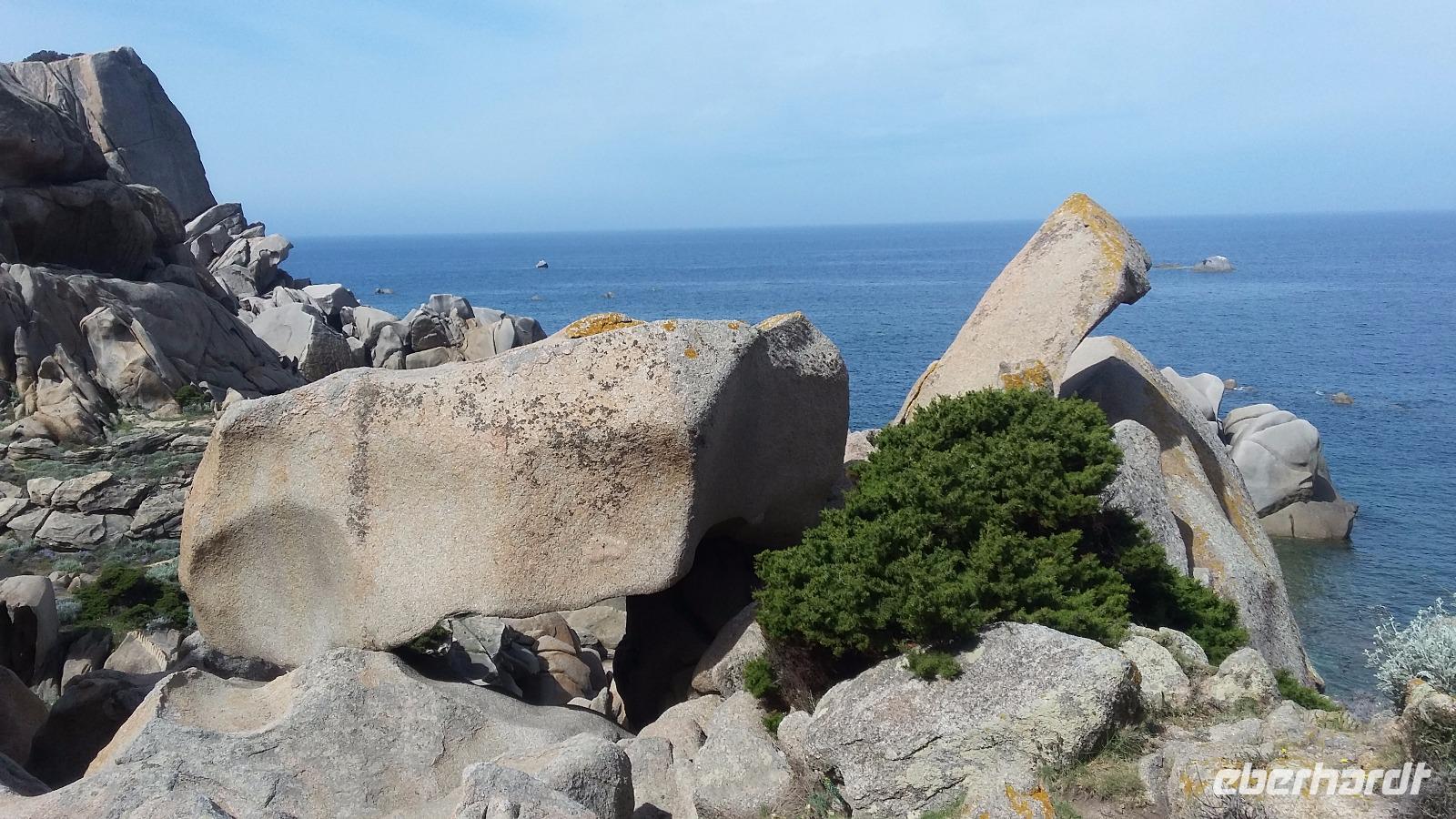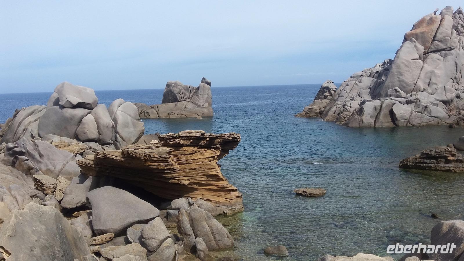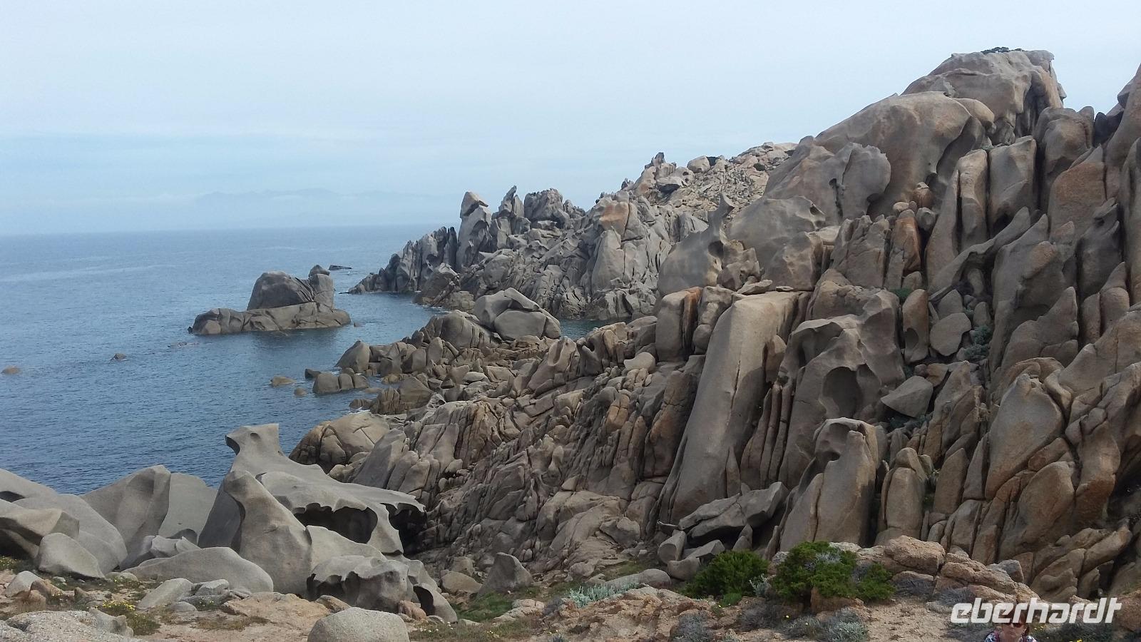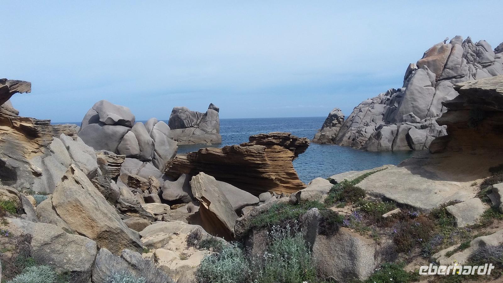 Unser letzter Tag auf Sardinien endet mit einer Wanderung zum Capo Test. Der Ausgangspunkt dieser Wanderung liegt nur unweit von unserem Hotel. Diese Wanderung zeichnet sich durch riesige, verformte Granitfelsen und anspruchsvolle Kletterpassagen aus. Oberhalb der felsigen Küste verstecken sich vereinzelt Hippiehöhlen, die heute noch besiedelt sind und deren Bewohner auf das Mindeste reduziert und in völliger Abgeschiedenheit leben.