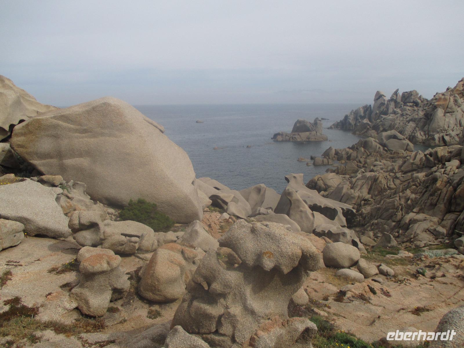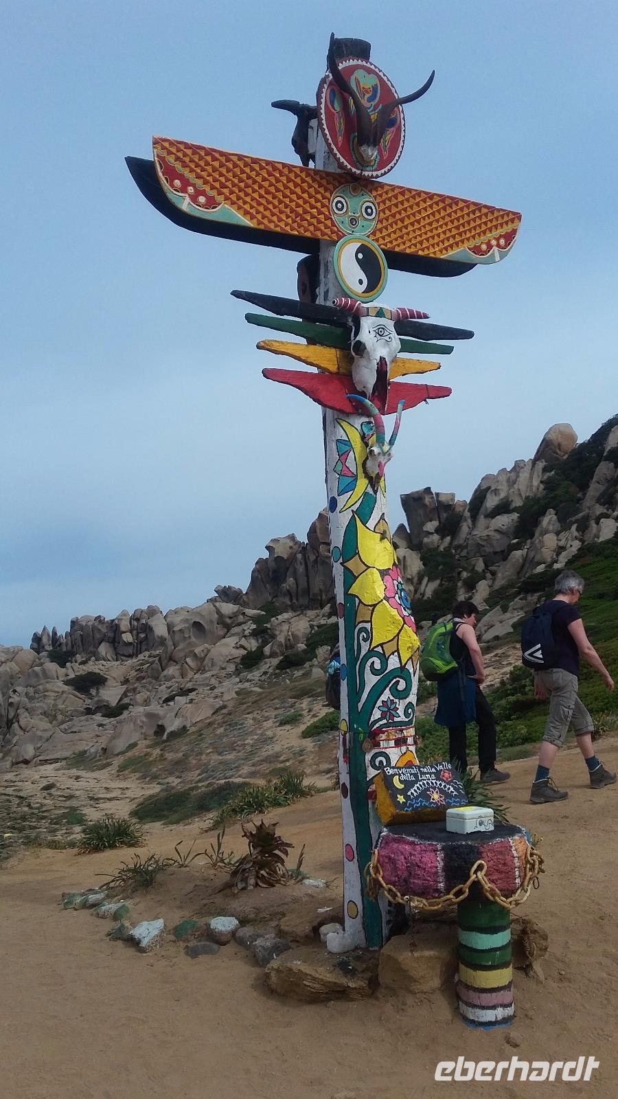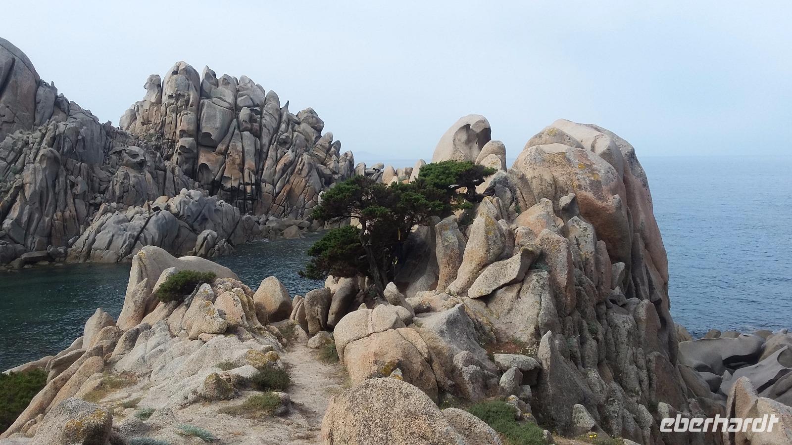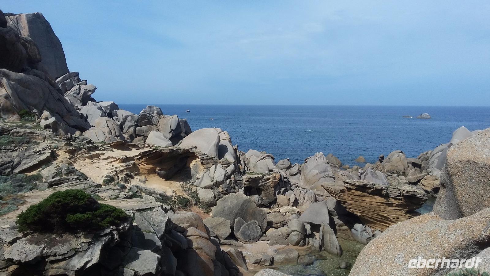 Unser letzter Tag auf Sardinien endet mit einer Wanderung zum Capo Test. Der Ausgangspunkt dieser Wanderung liegt nur unweit von unserem Hotel. Diese Wanderung zeichnet sich durch riesige, verformte Granitfelsen und anspruchsvolle Kletterpassagen aus. Oberhalb der felsigen Küste verstecken sich vereinzelt Hippiehöhlen, die heute noch besiedelt sind und deren Bewohner auf das Mindeste reduziert und in völliger Abgeschiedenheit leben.