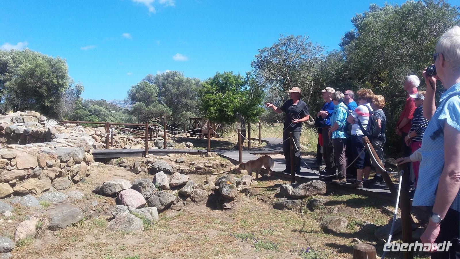 Auf dem Rückweg verbringen wir unsere Mittagspause in dem kleinen idyllischen Ort Bala Sardinia. Bei einer Kugel Eis oder einem typisch italienischen Espresso konnten wir einen kurzen Moment innehalten, bevor wir mit der Besichtigung einer Nuraghe auf den Spuren sardischer Frügeschichte wandeln: Nuraghen nennt man Siedlungen der alten Sarden die im 13./12. Jhd. v. Chr. entstanden. Gemeinsam haben alle Nuraghen den zentralen Turm in der Mitte, um den im Laufe der Jahre weitere Gebäude entstanden. Ringsum wurde eine Mauer mit vier Ecktürmen errichtet und ein Brunnen sollte die Festung im Fall von Angriffen für längere Zeit mit Wasser versorgen.