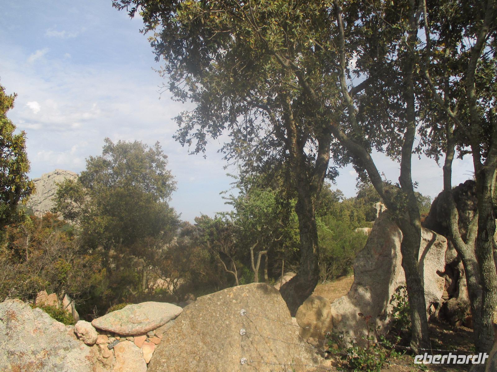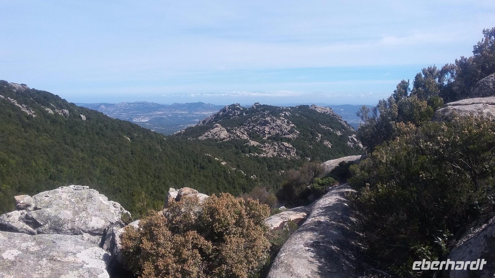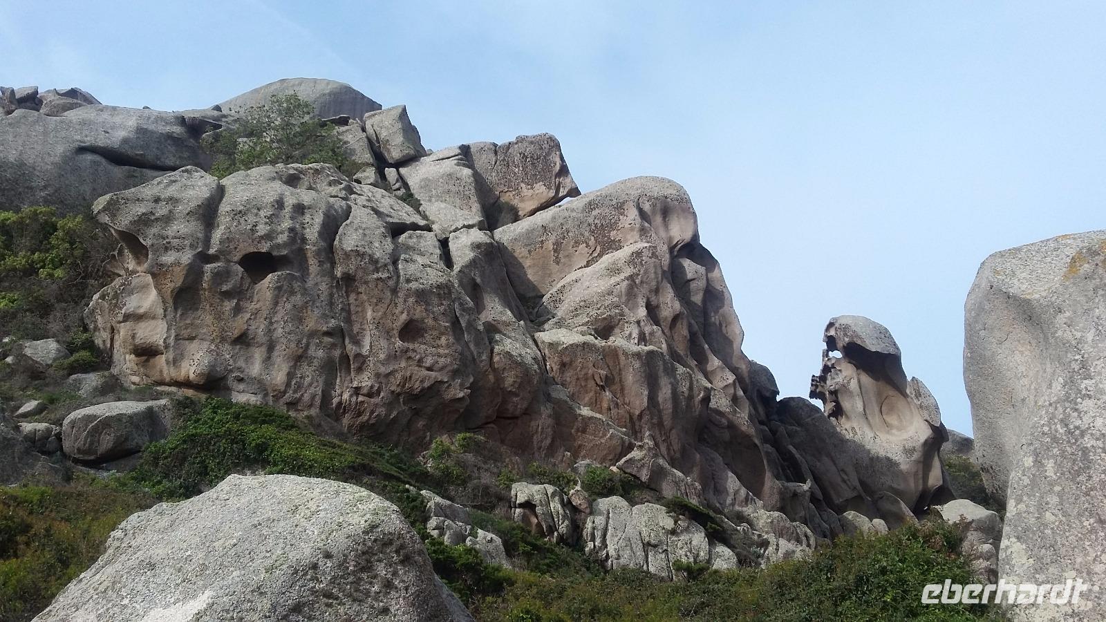 Unser 5. Tag auf Sardinien ist ein Ausflug in die Region Gallura. Dort erstrecken sich am Monte Limbara Hänge und bizarre Felsen zu einer Höhe von 1362 m. Diese Wanderung besticht im Vergleich zu den vorangehenden Touren mit ganz anderen Landschaften: schattige und dunkle Wälder, moosige Wege und imposante Felsen. Zudem haben wir bei keiner Wanderung zuvor so viele Auf- und Abstiege genommen.