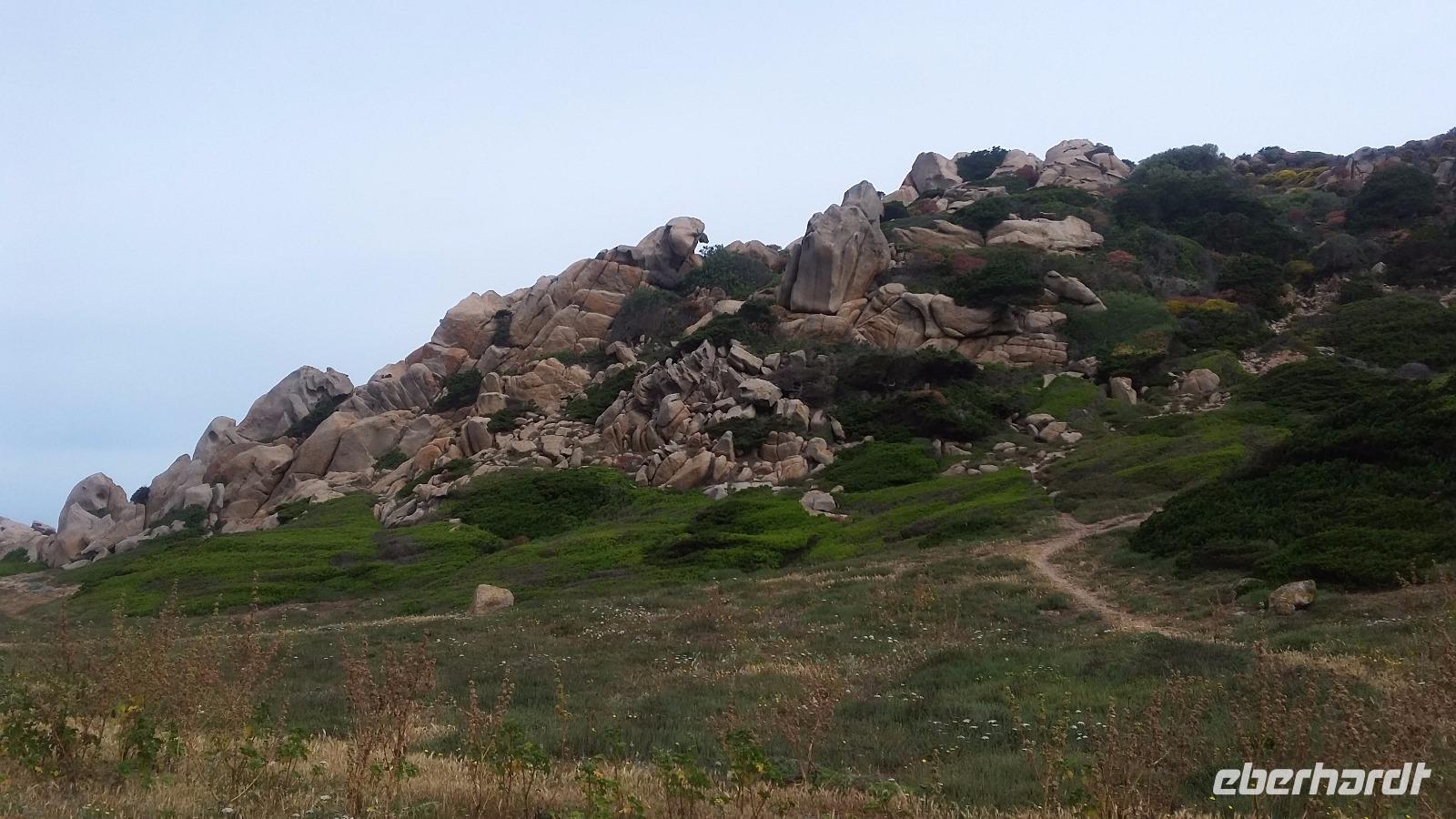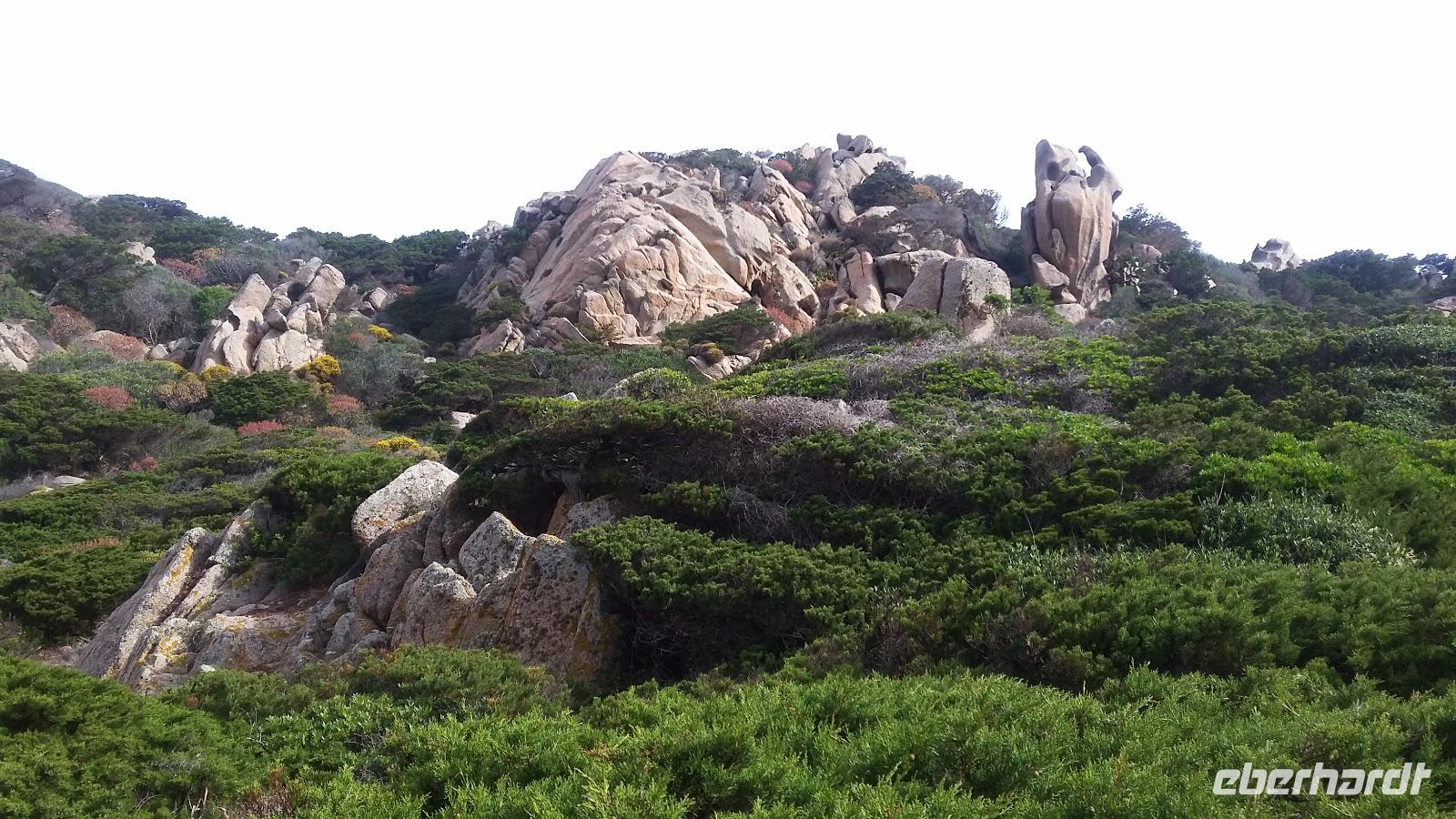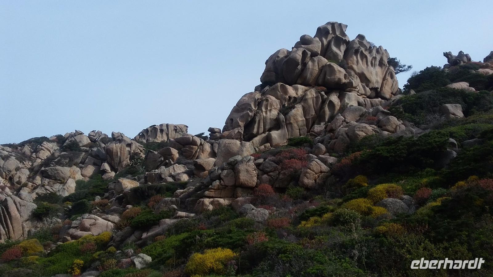 Unser 5. Tag auf Sardinien ist ein Ausflug in die Region Gallura. Dort erstrecken sich am Monte Limbara Hänge und bizarre Felsen zu einer Höhe von 1362 m. Diese Wanderung besticht im Vergleich zu den vorangehenden Touren mit ganz anderen Landschaften: schattige und dunkle Wälder, moosige Wege und imposante Felsen. Zudem haben wir bei keiner Wanderung zuvor so viele Auf- und Abstiege genommen.