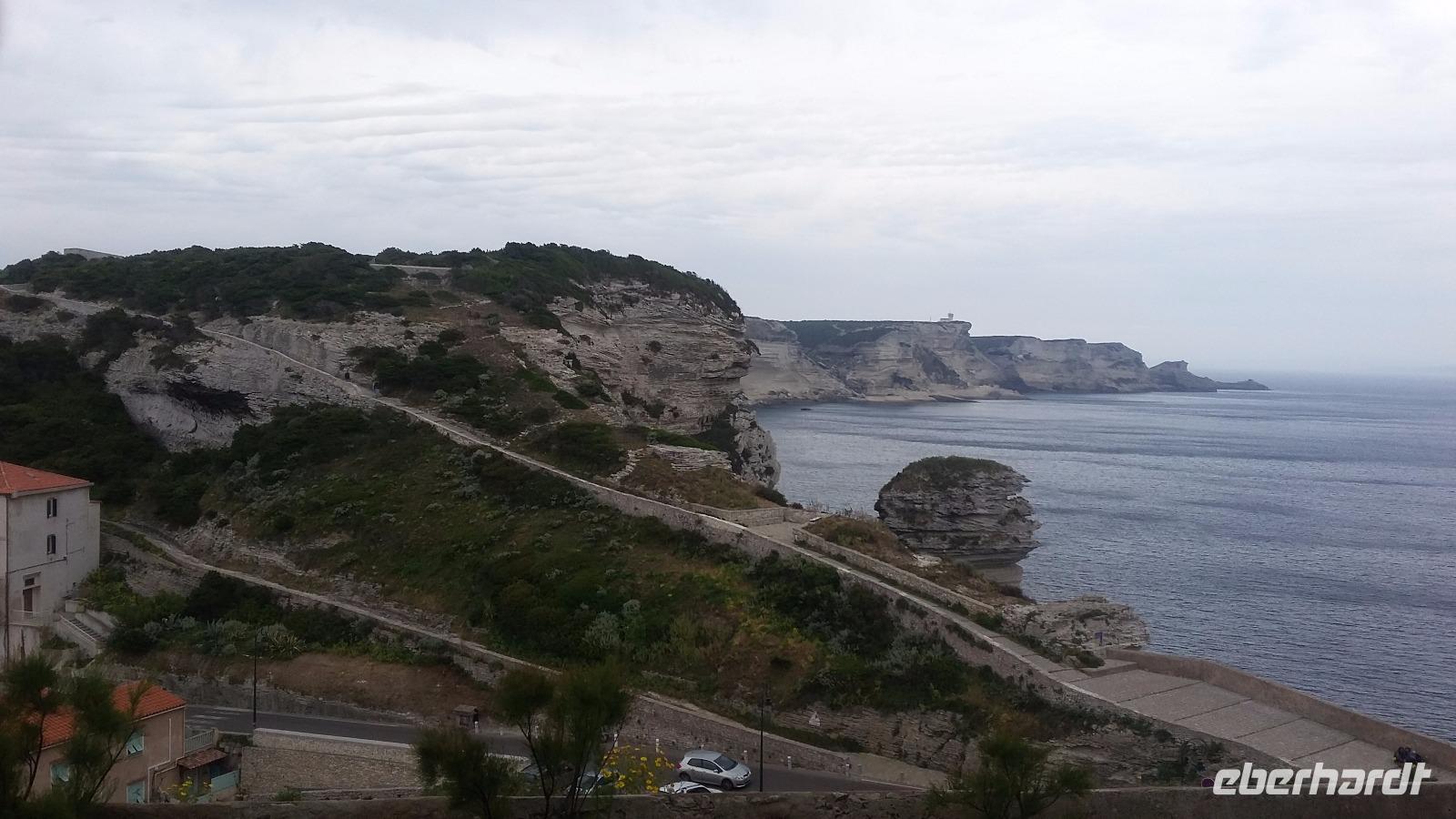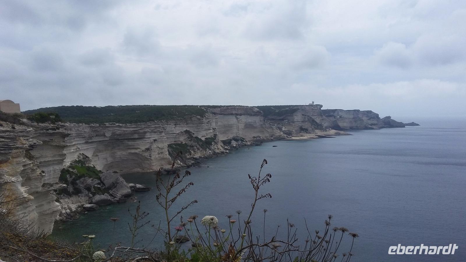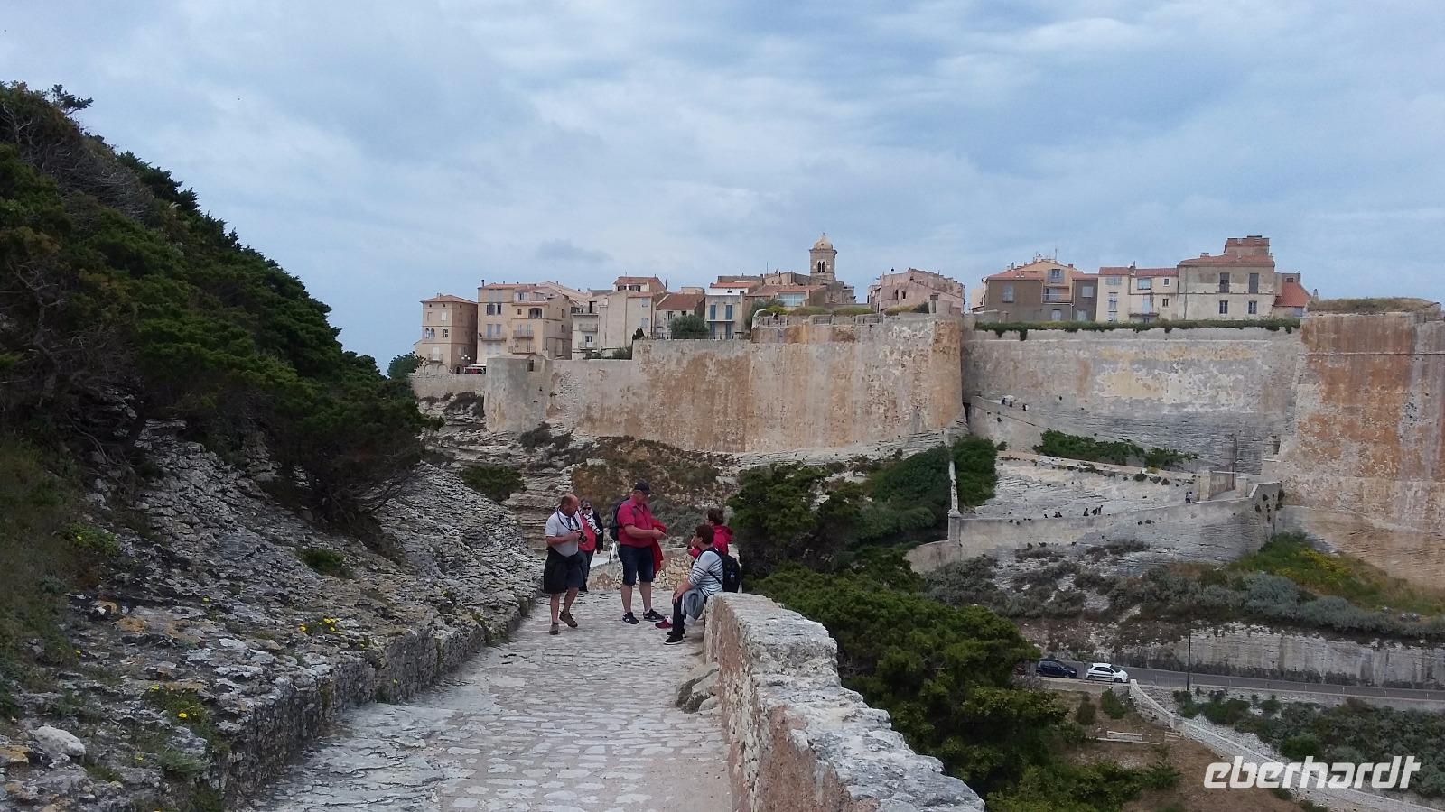 Die Stadt teilt sich in zwei Gebiete: einmal in die sogenannte Oberstadt, wo sich auch die Altstadt des Ortes befindet und den Hafenbereich. Die Oberstadt liegt auf einem Kalkfelsen in über 70 m Höhe und bietet so einen imposanten Anblick. Entlang der Steilküste von Bonifaco legen wir unsere Wanderkilometer für den heutigen Tag zurück und genießen den weiten Blick über das Mittelmeer. Die Treppe des Königs von Aragon führt über sehr hohe und steile Stufen direkt vom Meer in die Oberstadt.
