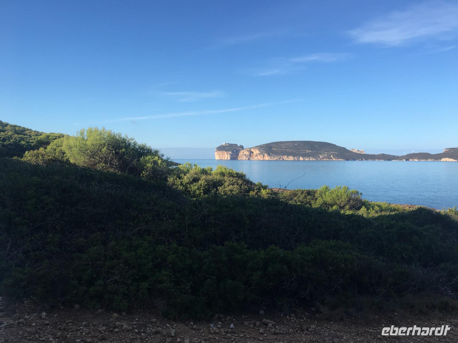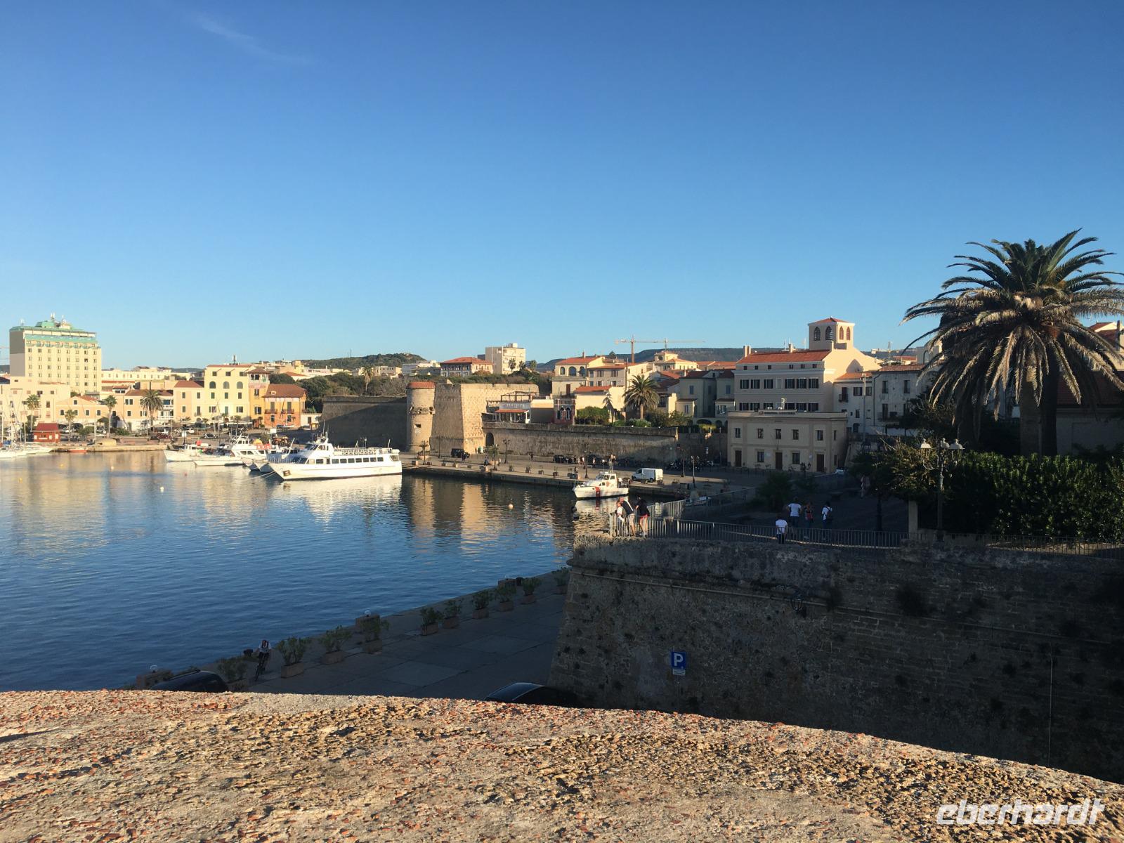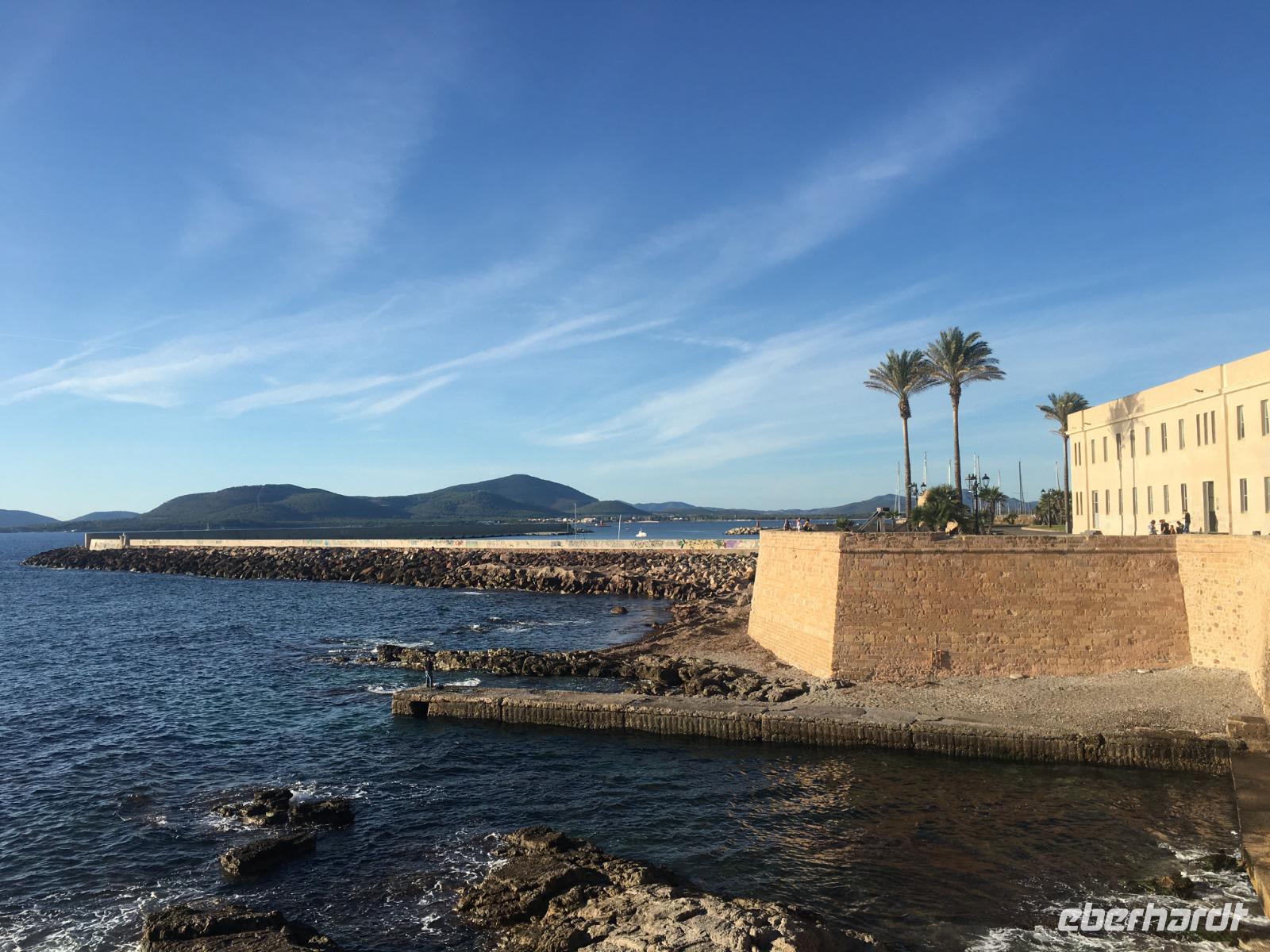Am späten Vormittag trifft sich unsere kleine Wandergruppe von zwölf Personen im Berliner Flughafen und steigt gemeinsam in die Maschine nach Olbia. Nach gut zwei Stunden Flug taucht die Mittelmeerinsel unter uns auf und präsentiert sich von ihrer besten Seite. Schon bald haben wir unser Gepäck abgeholt und sitzen in unserem Kleinbus, der uns auf die andere Seite nach Alghero bringt. Hier beziehen wir die Zimmer in unserem Hotel und brechen kurze Zeit später zu unserem ersten Spaziergang durch die Altstadt von Alghero auf. Die schmalen Gässchen der Altstadt, die Palmen entlang der Kaimauer, das blaue Meer und auch das italienische Eis lassen direkt Urlaubsfeeling aufkommen. Nach unserem Spaziergang werden wir im Hotel zum Abendessen erwartet und wir bekommen einen ersten Geschmack der sardischen Küche.