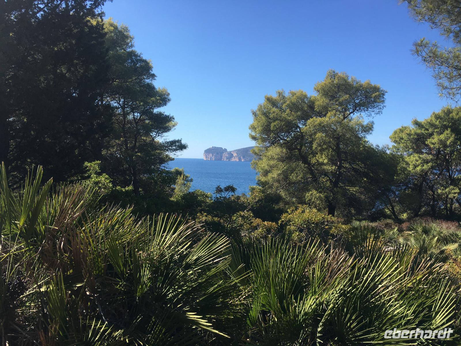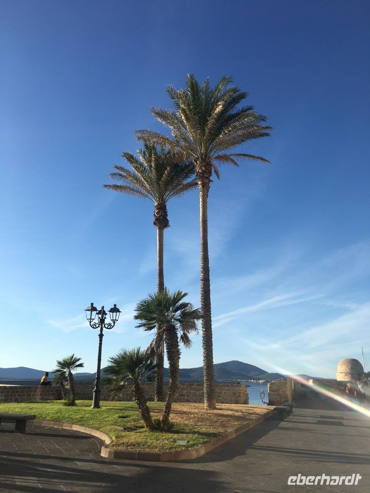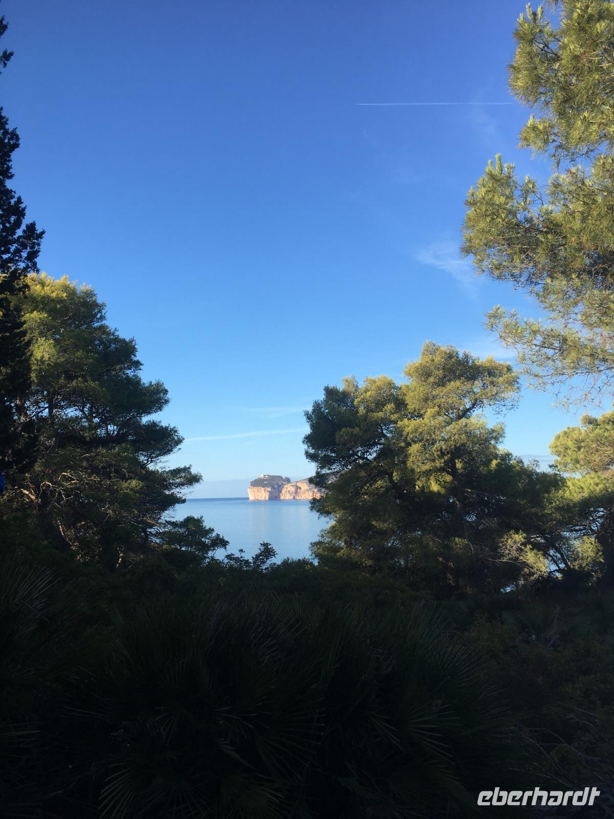 Am späten Vormittag trifft sich unsere kleine Wandergruppe von zwölf Personen im Berliner Flughafen und steigt gemeinsam in die Maschine nach Olbia. Nach gut zwei Stunden Flug taucht die Mittelmeerinsel unter uns auf und präsentiert sich von ihrer besten Seite. Schon bald haben wir unser Gepäck abgeholt und sitzen in unserem Kleinbus, der uns auf die andere Seite nach Alghero bringt. Hier beziehen wir die Zimmer in unserem Hotel und brechen kurze Zeit später zu unserem ersten Spaziergang durch die Altstadt von Alghero auf. Die schmalen Gässchen der Altstadt, die Palmen entlang der Kaimauer, das blaue Meer und auch das italienische Eis lassen direkt Urlaubsfeeling aufkommen. Nach unserem Spaziergang werden wir im Hotel zum Abendessen erwartet und wir bekommen einen ersten Geschmack der sardischen Küche.