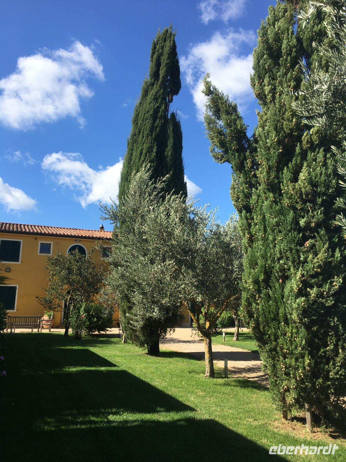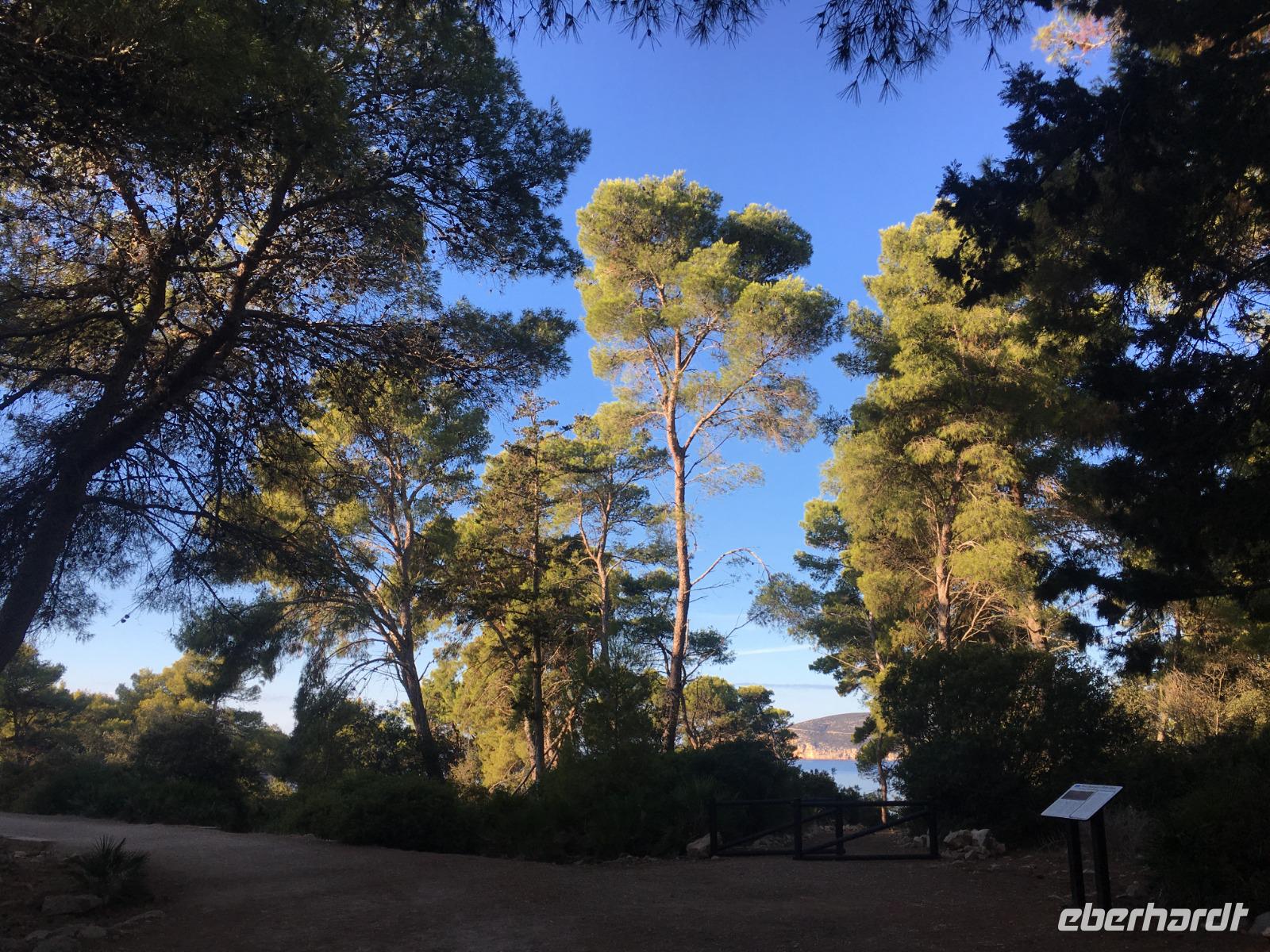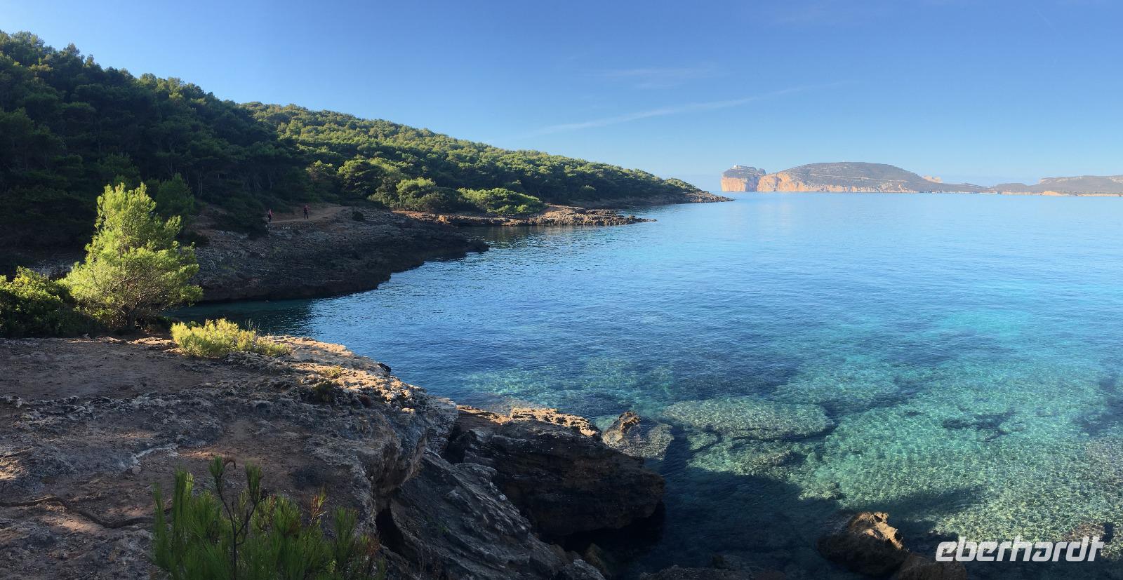 Am Morgen lernen wir auf dem Busparkplatz unseren sardischen Wanderreiseleiter Sergio kennen, der mit uns das kleine Stück bis nach Porto Conte fährt, wo wir die erste Wanderung unternehmen. Während die Sonne langsam das Küstenwäldchen erhellt, wandern wir entlang der malerischen Bucht und sehen zum ersten mal das fantastisch klare Wasser der Bucht. Der Reiseleiter zeigt uns nicht nur einige Pflanzen der wilden Macchia wie den Mastix oder den Schopflavendel, sondern erklärt uns auch den vorsichtigen und richtigen Umgang mit der kostbaren, streng geschützten Natur auf Sardinien. Unterwegs erkunden wir die Ruine einer ehemaligen Kaserne, die von den Sarden zur Abwehr eines Angriffs der Alliierten gebaut wurde - der jedoch nie stattfand. Wir wandern weiter durch den Pinienwald und erreichen nach einer Weile wieder den Busparkplatz. Nach der Wanderung fahren wir ein kurzes Stück weiter zur Nuraghe Palmavera, deren Überreste wir heute besichtigen. Ab fast 1.500 Jahren vor Christus wurde der befestigte Dorfkomplex von den Nuraghern erbaut und noch heute sehen wir hier das beeindruckende technische und architektonische Wissen des uralten Volkes. Nach der Besichtigung fahren wir in ein nahes Weingut und setzen uns für eine Verkostung der verschiedenen Weine. Die Besitzerin des Gutes, das ausschließlich von Frauen geleitet wird, erklärt uns vieles zu den verschiedenen Sorten, über den Anbau und die Ernte und die Geschichte des Weingutes. Dazu lassen wir uns herzhafte sardische Salami, unterschiedlich lang gereiften würzigen Käse und die Oliven schmecken, die direkt im Weingut angebaut werden. Nach diesem ersten Tag essen wir gemeinsam im Hotel zu Abend und lassen den Abend in der Altstadt, am nahen Meer oder in der Bar ausklingen.