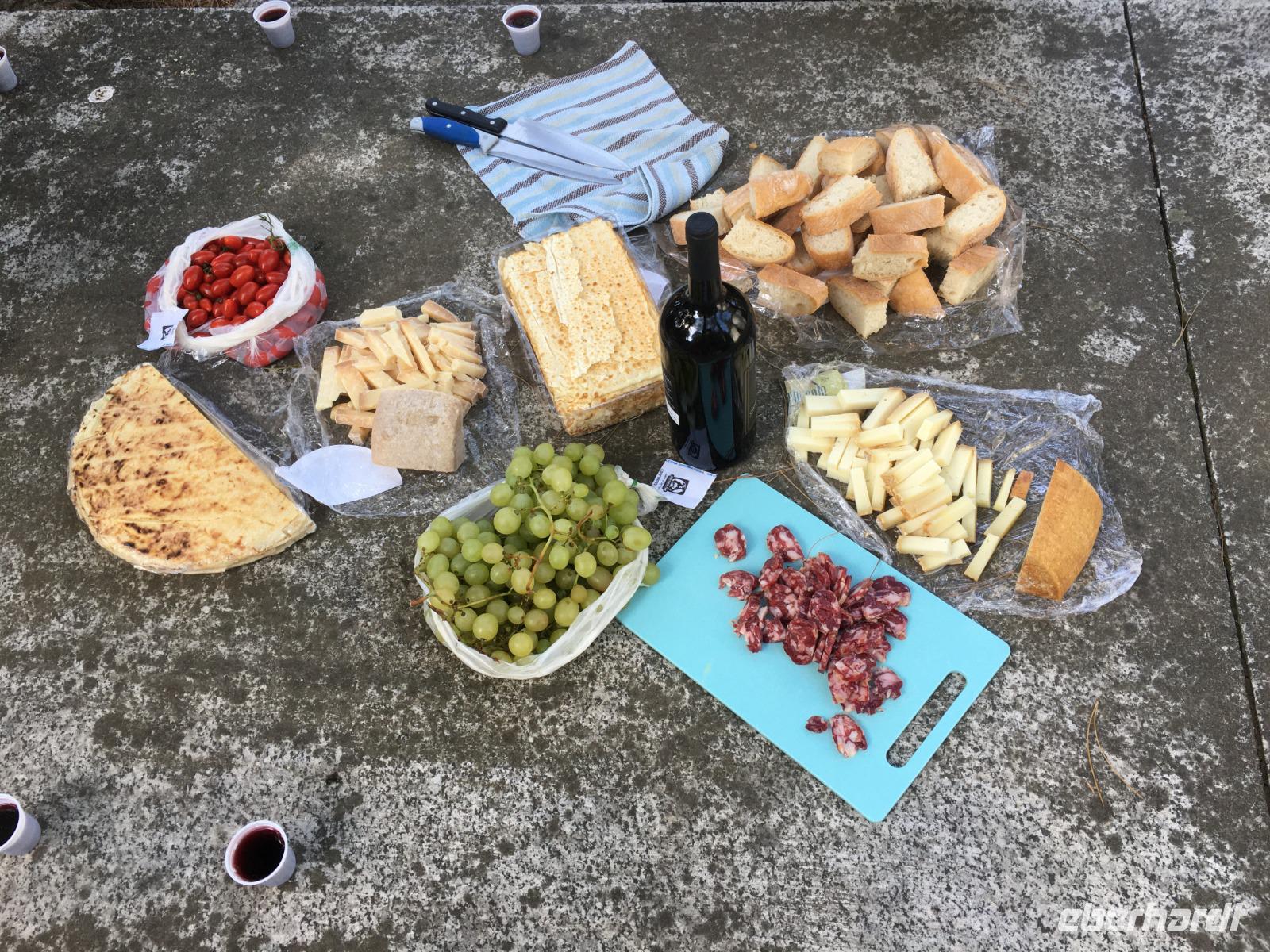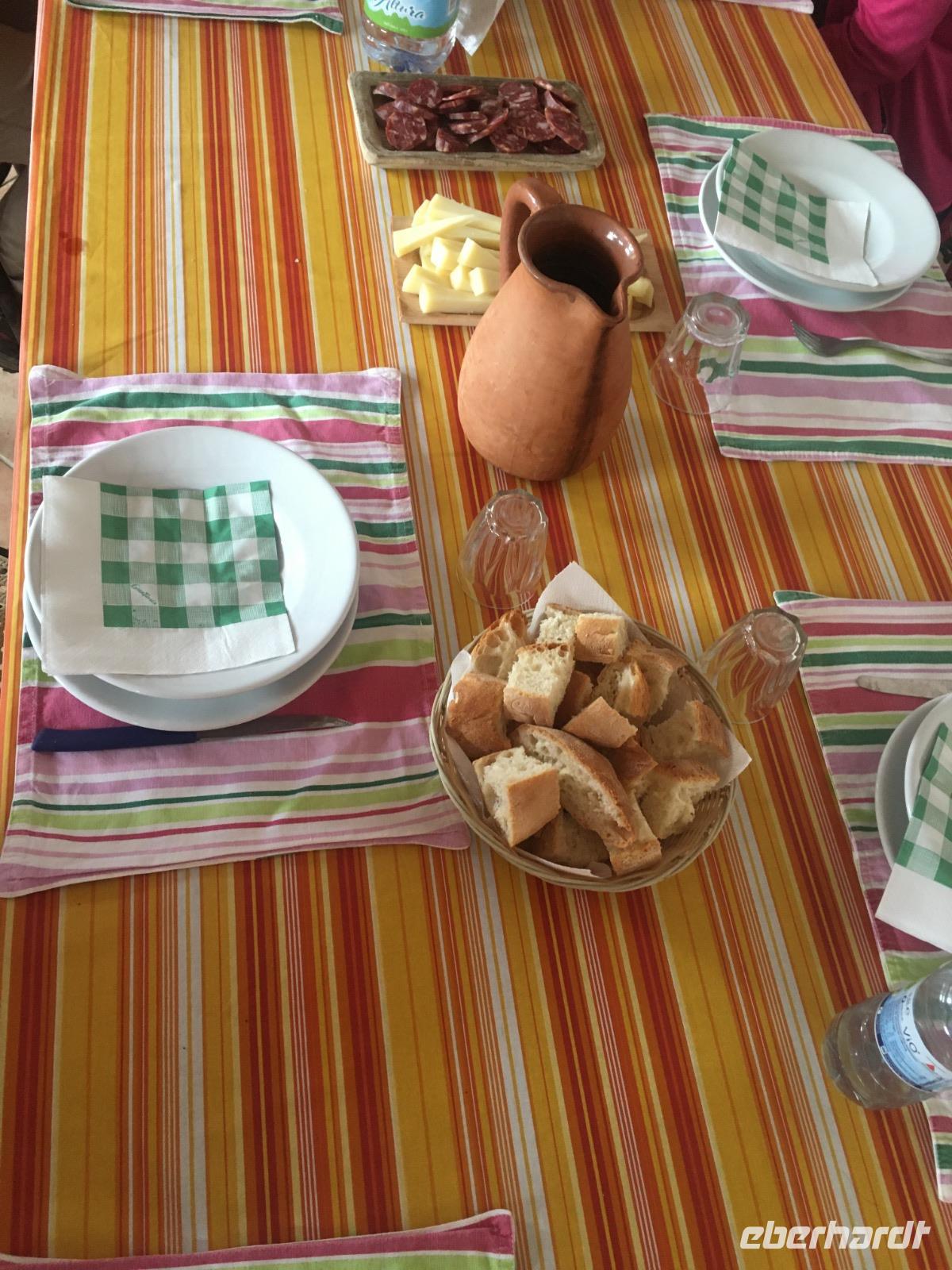 Morgens frühstücken wir im Hotel und treffen uns danach mit unserem Reiseleiter Sergio. Die heutige Wanderung führt uns nicht an die Küste, sondern in die steinige Gallura und auf den Monte Limbaro. Ganze 42 enge Kurven führen den Bus auf den Monte Limbara, wo wir heute wandern werden. Der heutige Wanderweg verläuft zuerst durch einen Laubwald, dessen Buchen und Maronen uns ein wenig an deutsche Wälder erinnern. Sobald der Weg aus dem Wald führt und steiniger wird, erinnert uns der Blick auf die sardischen Berge aber wieder daran, dass wir auf Sardinien wandern und wir genießen das Panorama bei einer Verschnaufpause. Danach führt der Weg weiter durch den Wald des Monte Limbara, bis wir schließlich wieder den Parkplatz erreichen. Hier hat Sergio uns ein landestypisches Picknick mit Hirtenbrot, würzigem Käse, Salami, sardischem Gebäck und Trauben vorbereitet, welches nach der Wanderung umso besser schmeckt - auch der sardische Wein darf natürlich nicht fehlen und so fahren wir gut gelaunt weiter nach Tempio Pausania, der Granitstadt inmitten der Gallura. Ein kurzer Stadtrundgang führt uns durch die Gassen des kleinen Ortes, dessen Häuser fast ausschließlich mit rechteckigen Granitblöcken erbaut worden sind. Wir spazieren über das bunt bemalte Kopfsteinpflaster und besichtigen eine kleine Kirche, bevor wir in einem Café eine Erfrischung genießen. Anschließend fahren wir mit dem Bus wieder nach Alghero und essen gemeinsam zu Abend.