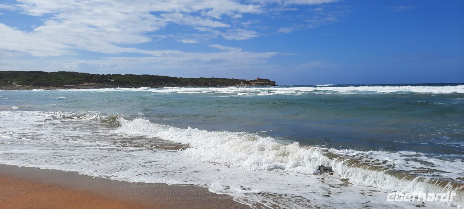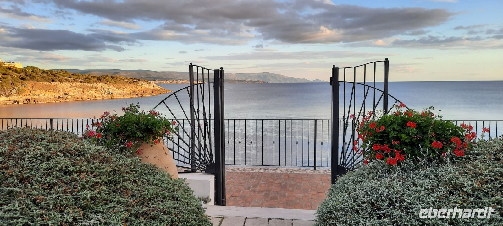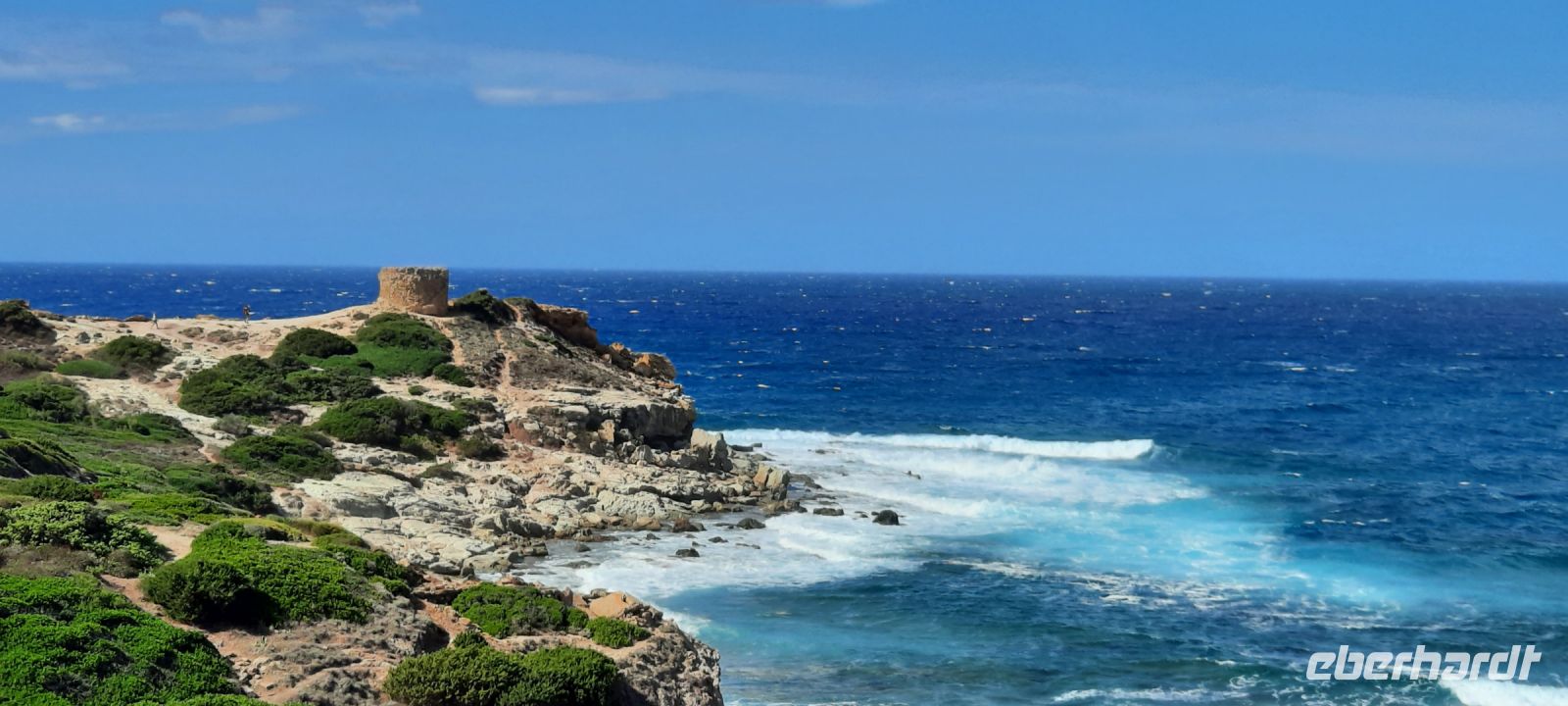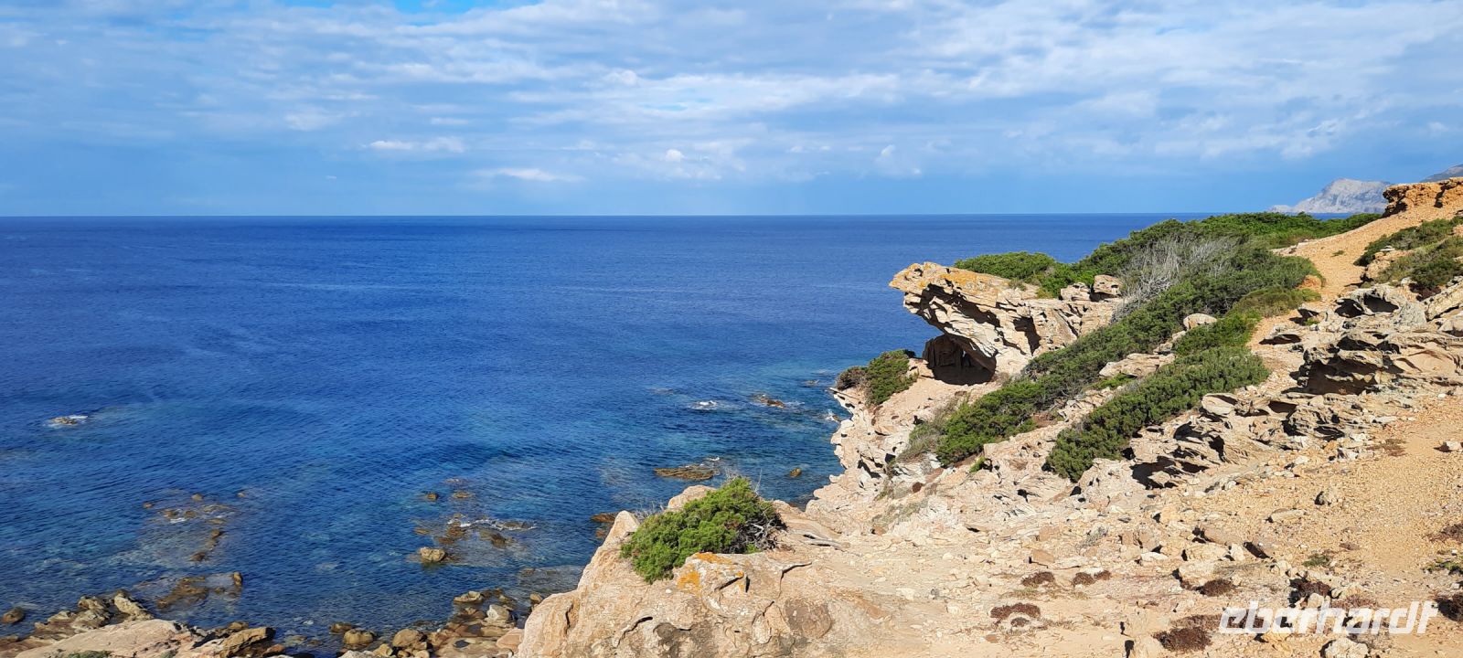 Der besondere Reiz Sardiniens liegt in den idyllischen Küstenabschnitten, die ca. 1.800 km lang sind. Nur einen Bruchteil konnten wir hautnah spüren in der Nordwest Region Sardiniens. Los ging es bei Porto Ferro / Caia di Fora immer an der Küste entlang. Durch den Wind war hier die Macchia etwas niedriger. An der Cala del Vino, folgte unsere Picknick Pause, angerichtet in einem Holzboot. Der Rot- oder Weißwein schmeckte mit Blick auf das azurblaue Wasser noch besser. Es folgte ein ständiges auf- un ab, bis zum Turm - La torre del Porticciolo. Dieser Turm fügte sich umwerfend in die Bucht.