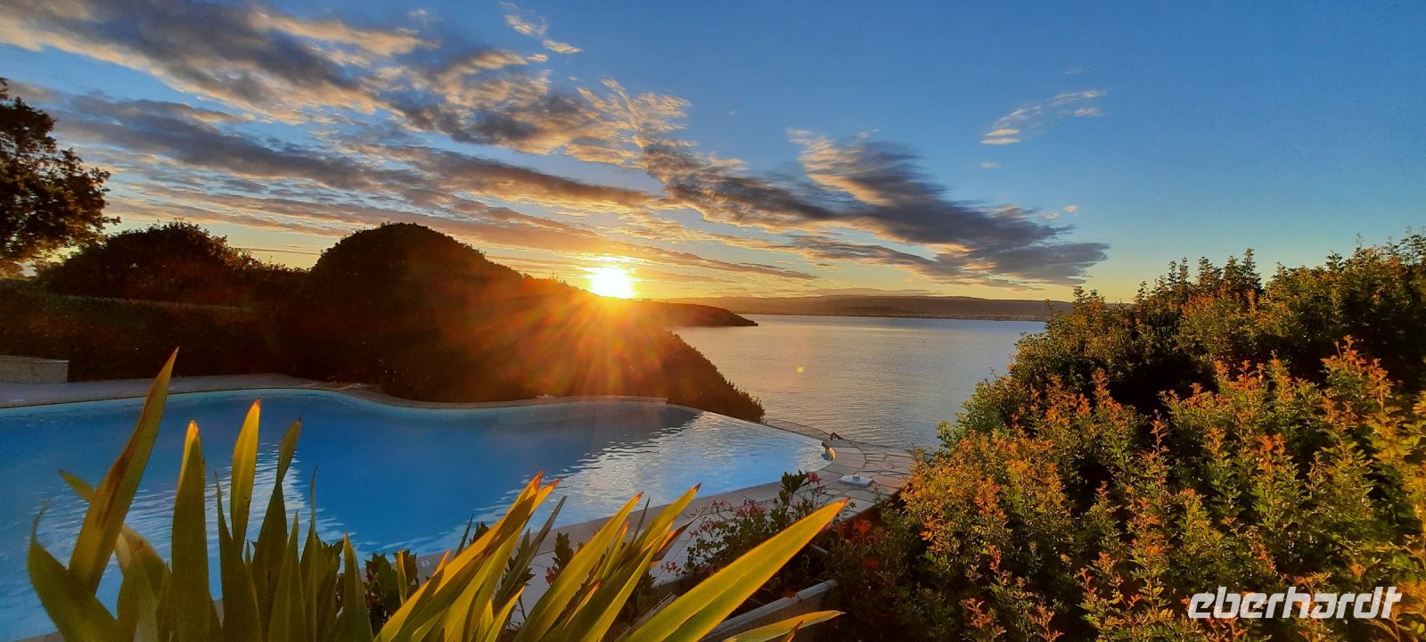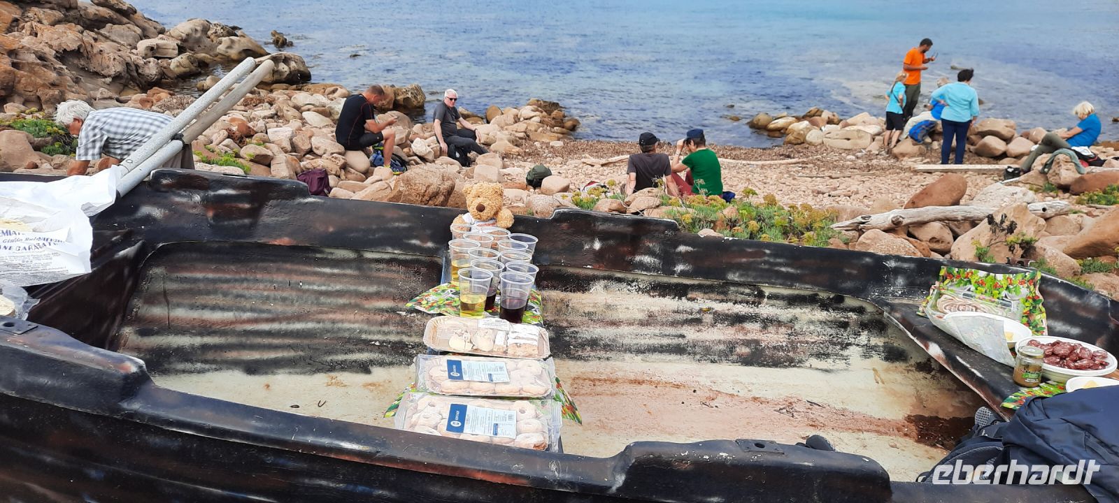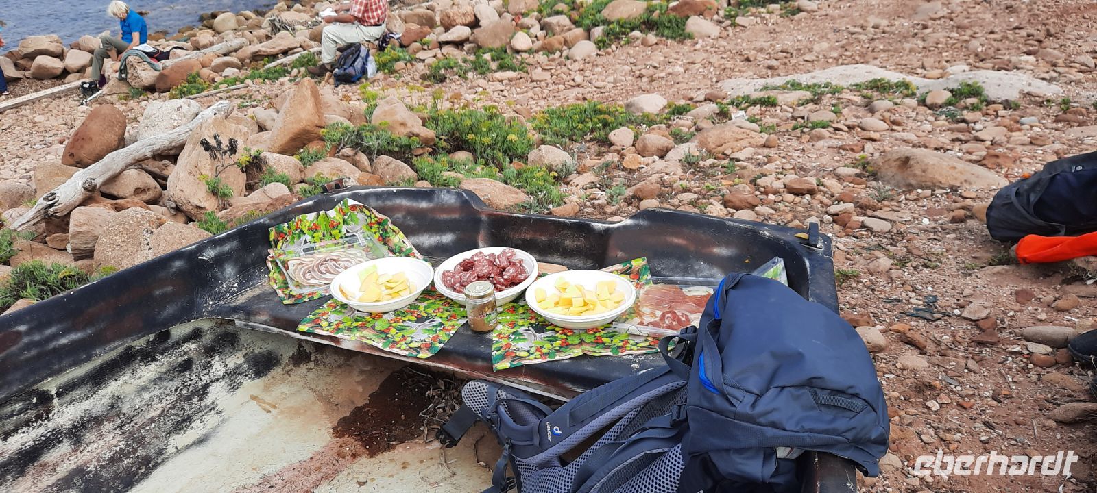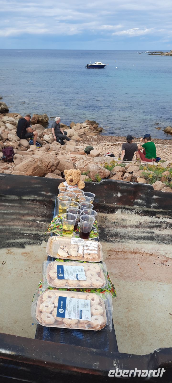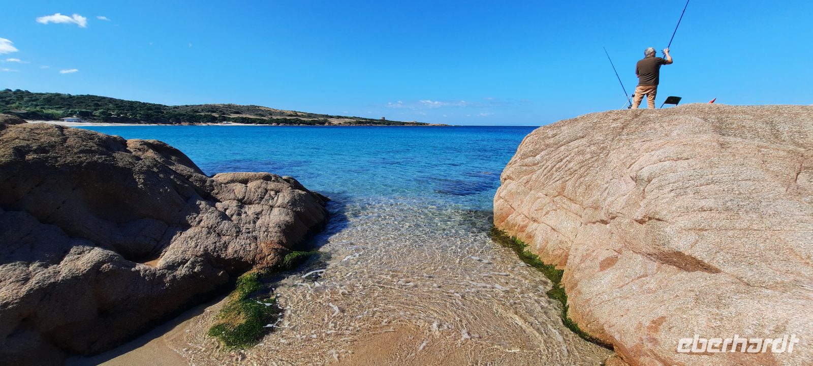 Der besondere Reiz Sardiniens liegt in den idyllischen Küstenabschnitten, die ca. 1.800 km lang sind. Nur einen Bruchteil konnten wir hautnah spüren in der Nordwest Region Sardiniens. Los ging es bei Porto Ferro / Caia di Fora immer an der Küste entlang. Durch den Wind war hier die Macchia etwas niedriger. An der Cala del Vino, folgte unsere Picknick Pause, angerichtet in einem Holzboot. Der Rot- oder Weißwein schmeckte mit Blick auf das azurblaue Wasser noch besser. Es folgte ein ständiges auf- un ab, bis zum Turm - La torre del Porticciolo. Dieser Turm fügte sich umwerfend in die Bucht.