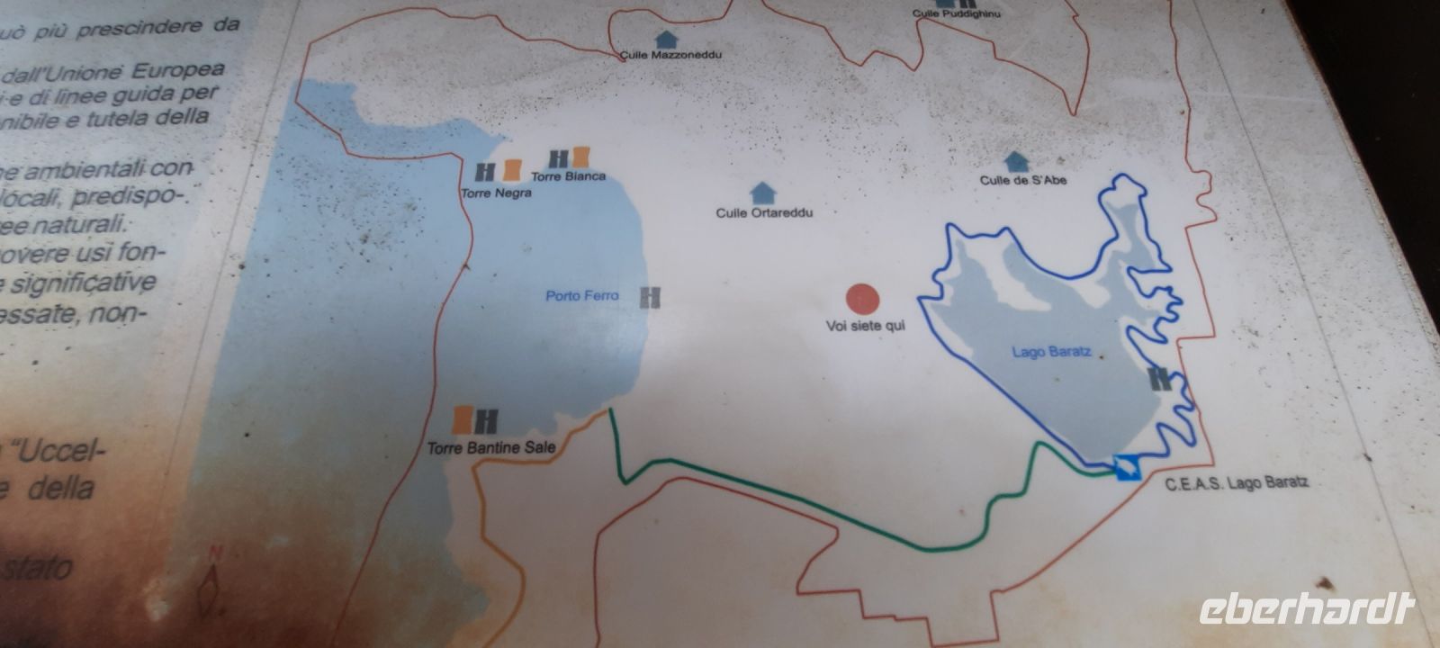 Nach einer kurzen Busfahrt erreichten wir das Infozentrum am Lago Baratz. Flora & Fauna wurde in Schaukästen anspruchsvoll präsentiert. Auf dem abwechslungsreichen Wanderweg bestaunten wir die wild anmutenden Mittelmeer – Macchien, bestehend aus Mastixstrauch, Myrte, Phönizischer Wacholder, Zwergpalmen, Wolfsmilch etc. Dieser See ist der einzig natürliche See auf Sardinien, der mit Salzwasser gefüllt ist. Unser Wanderweg endete in der einladenden Bucht von Porto Ferro. Einem erfrischenden Bad im Meer stand nichts im Wege.
