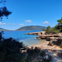 Unsere Wanderung beginnt bei Casa del Vento entlang der felsigen Küste bis zum Genuesenturm aus dem 15. Jahrhundert. Hier hat man einen tollen Blick aber der bisherige Weg war heute schon eine Herausforderung. Aber…, nach einem steilen schwierigen Abstieg zum Strand wurden wir während unserer Mittagspause vom kühlen Meer und schönem Sandstrand belohnt.