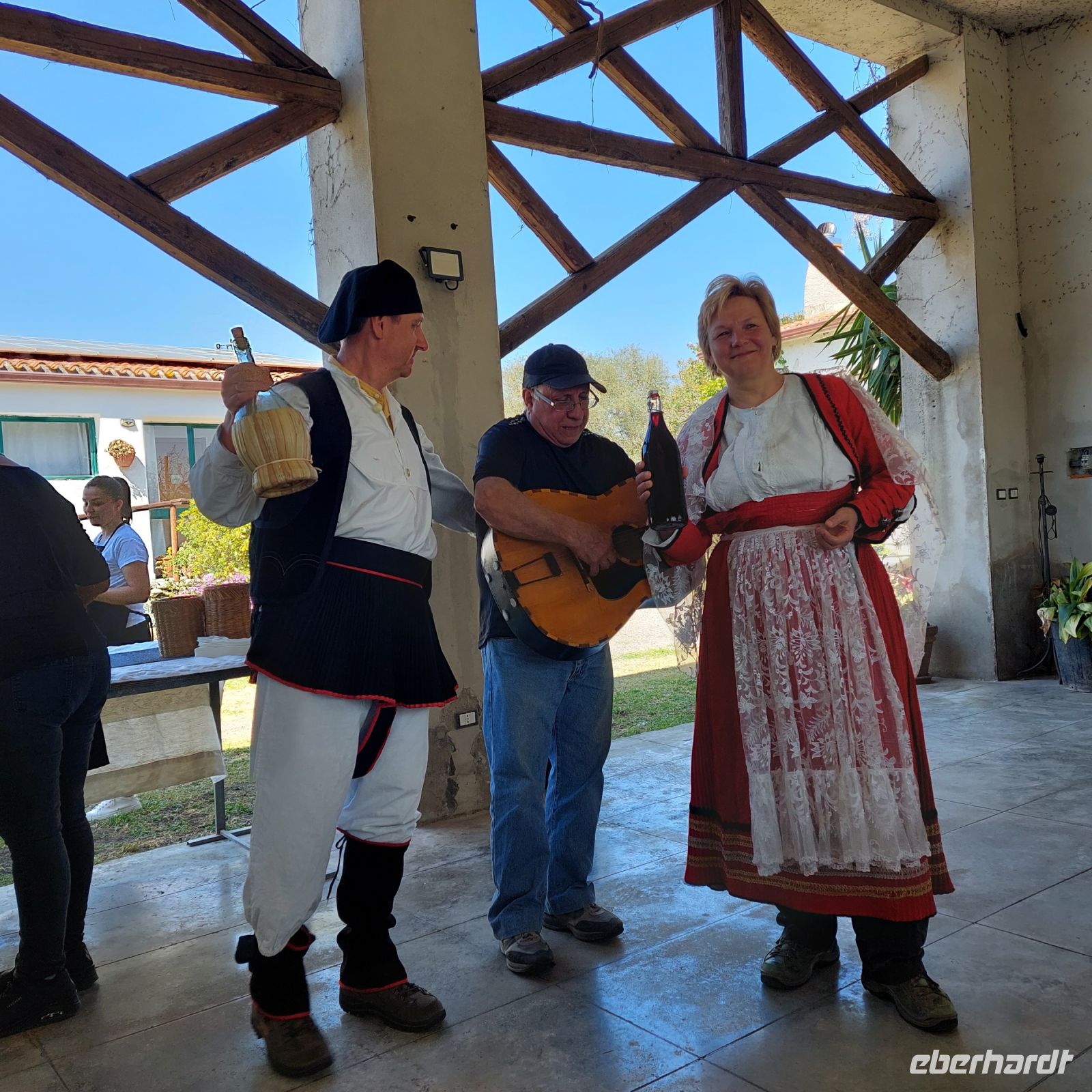 Agriturismo sa Tanca de Santu Ainzu bei Thiesi erwartet uns schon mit musikalischer Umrahmung. Bei Rotwein und gegrilltem Fleisch, sowie Spanferkel vom Spieß mit viel Kartoffeln und Gemüse kam schnell sardische Lebensfreude auf, es wurde gesungen getanzt und gelacht und noch der eine oder andere Mirto, Grappa oder Limoncello probiert.