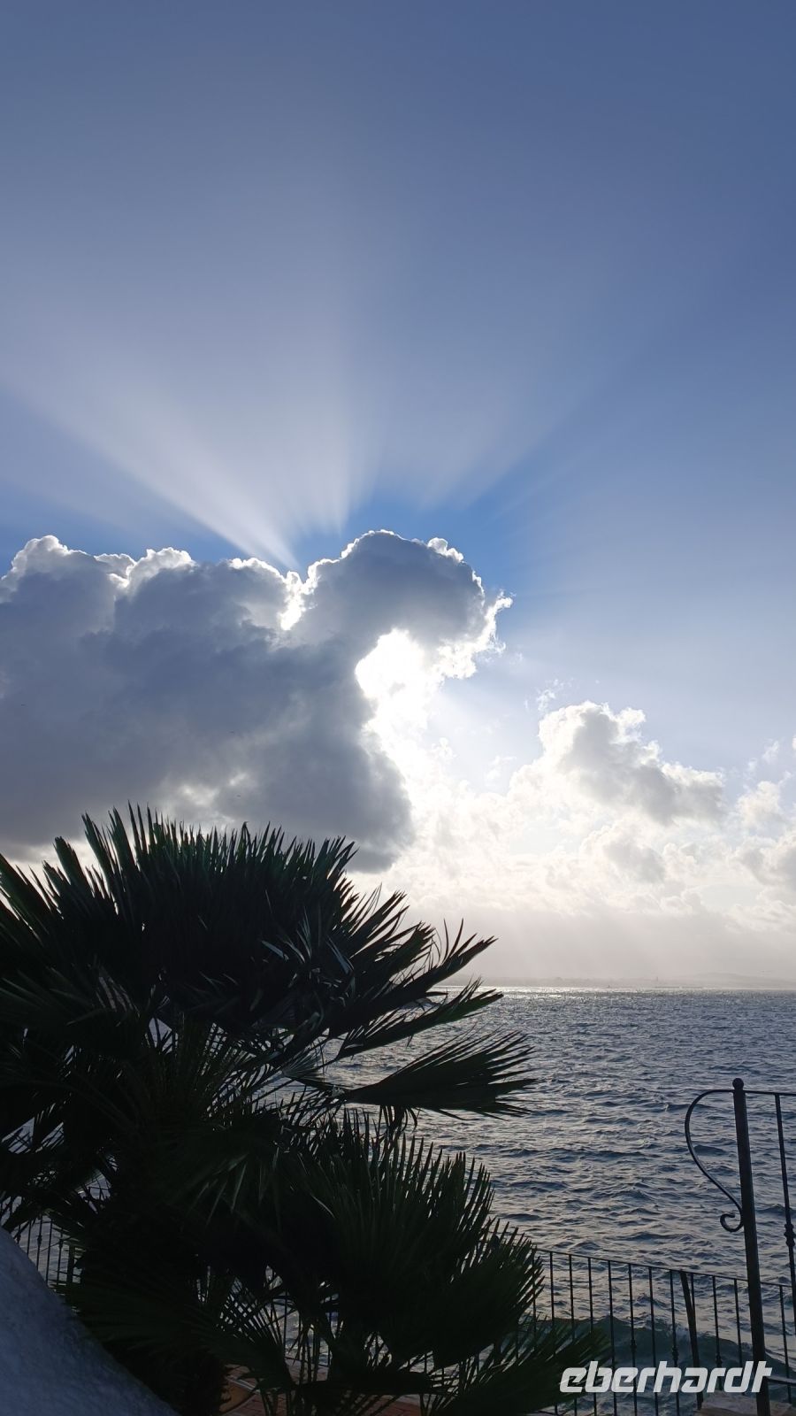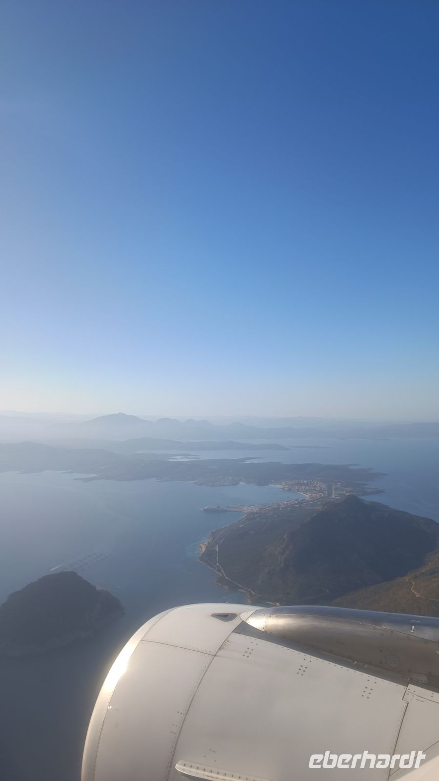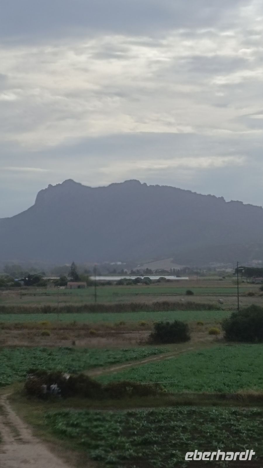 Die Ausblicke könnten atemberaubend sein, aber leider war es heute zu diesig. Die Felsenküste von Korsika konnte man trotz sehr gutem Auge schwer erkennen. Nur die hohen Cumuluswolken ließen vermuten, dass in der Ferne sich ein Land befinden musste.