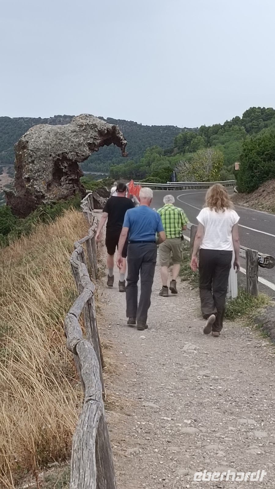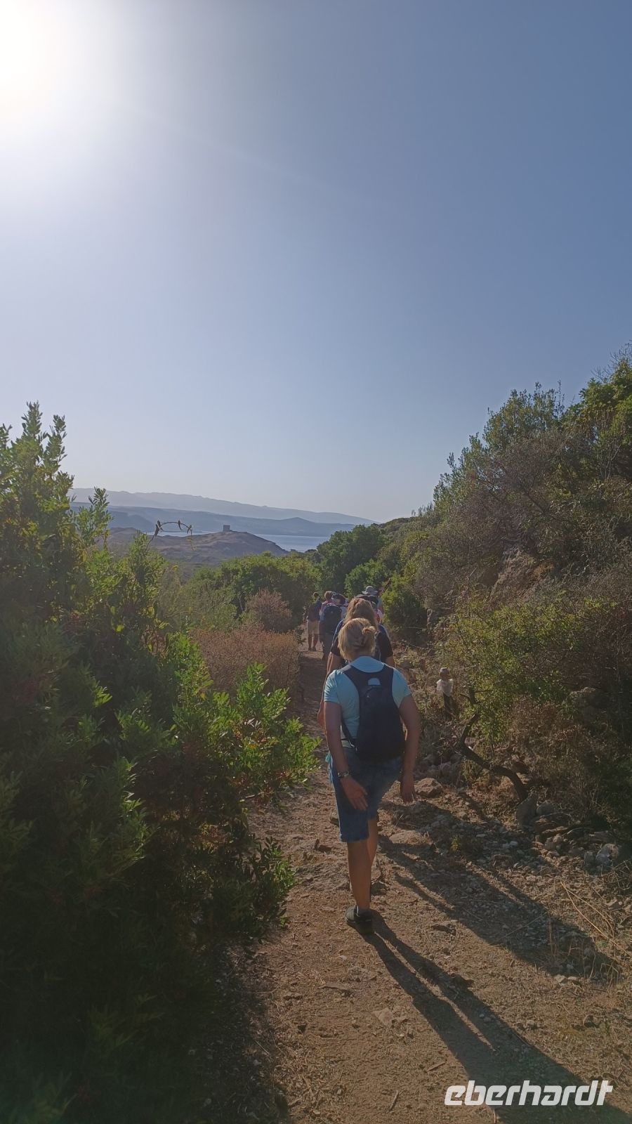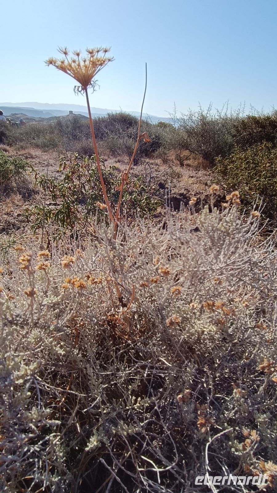 Gleich zu Beginn der Wanderung, Antonios Stimme im Doppelklang. Er war gerade dabei uns den Sommerschlaf der Wolfsmilch zu erklären, als aus der Felsenwand gegenüber seine Erklärung nochmal in unser Ohr drang.