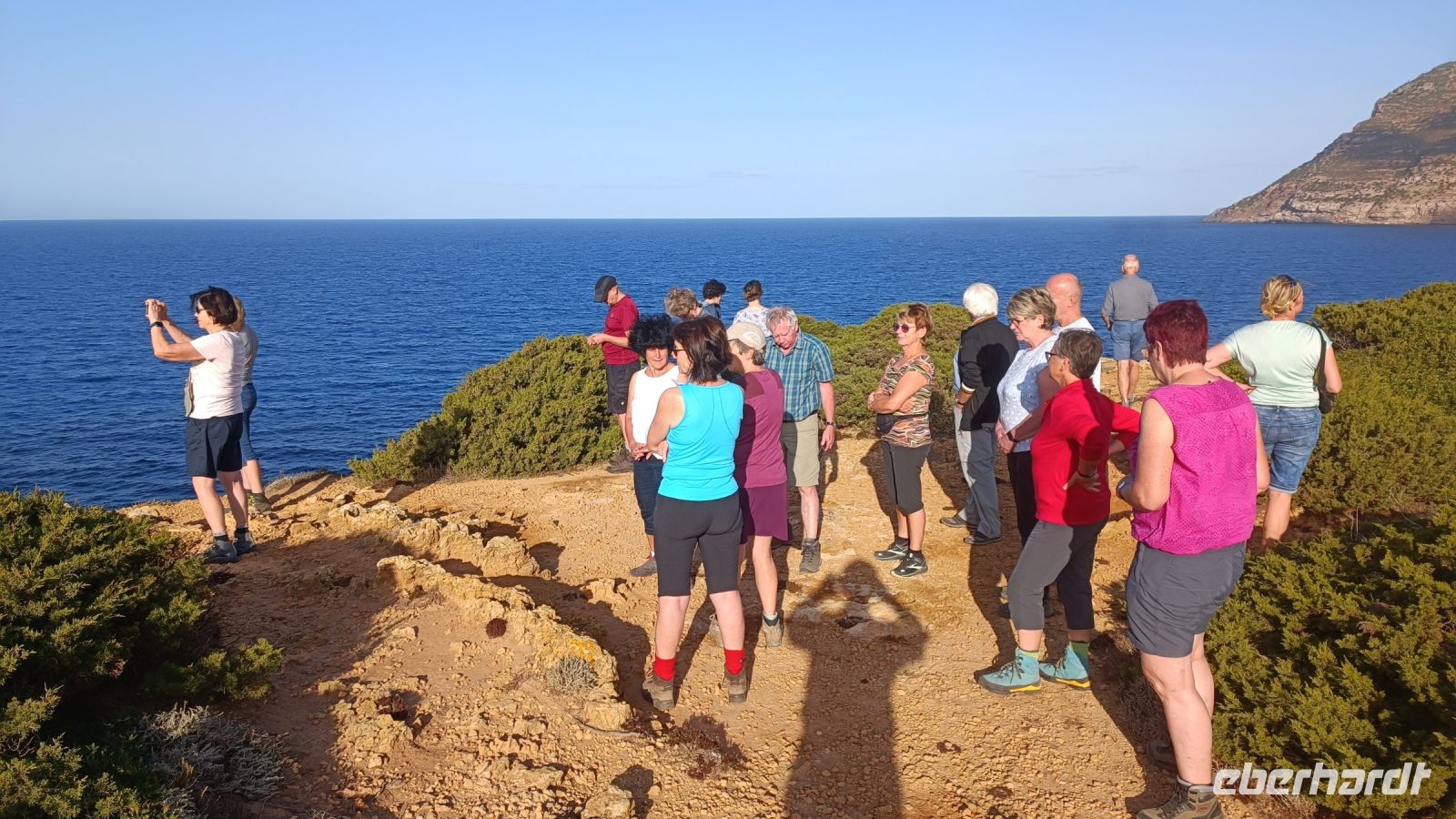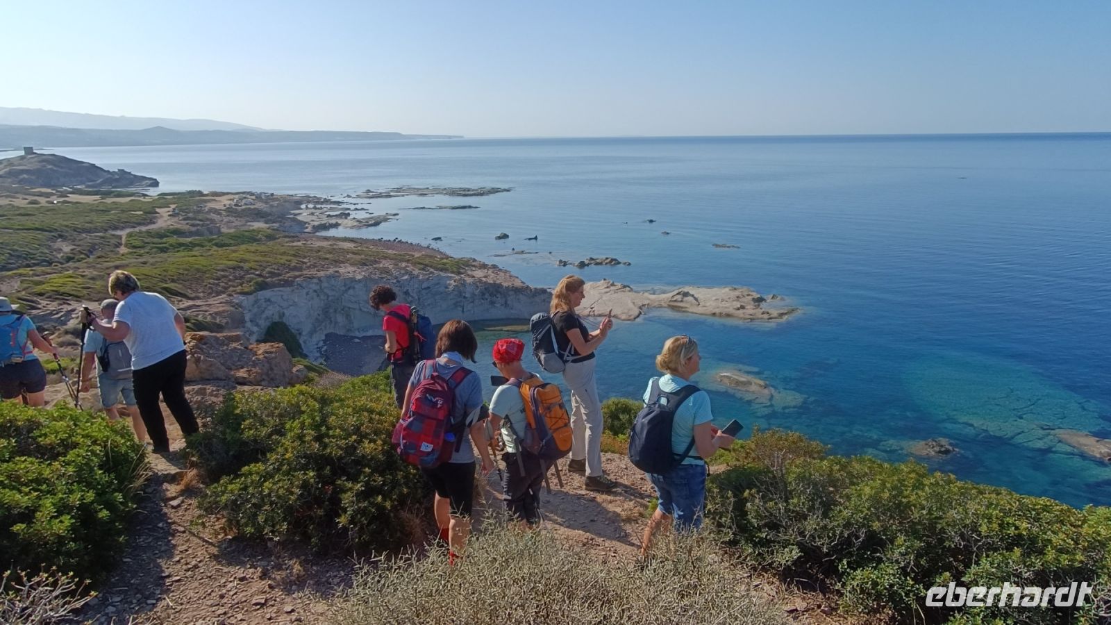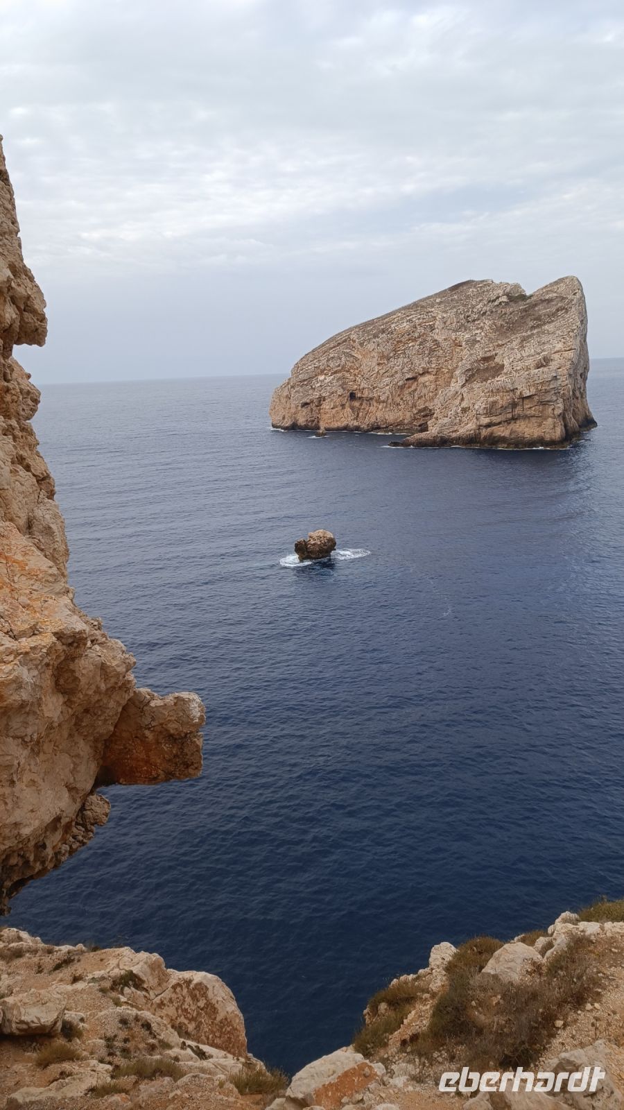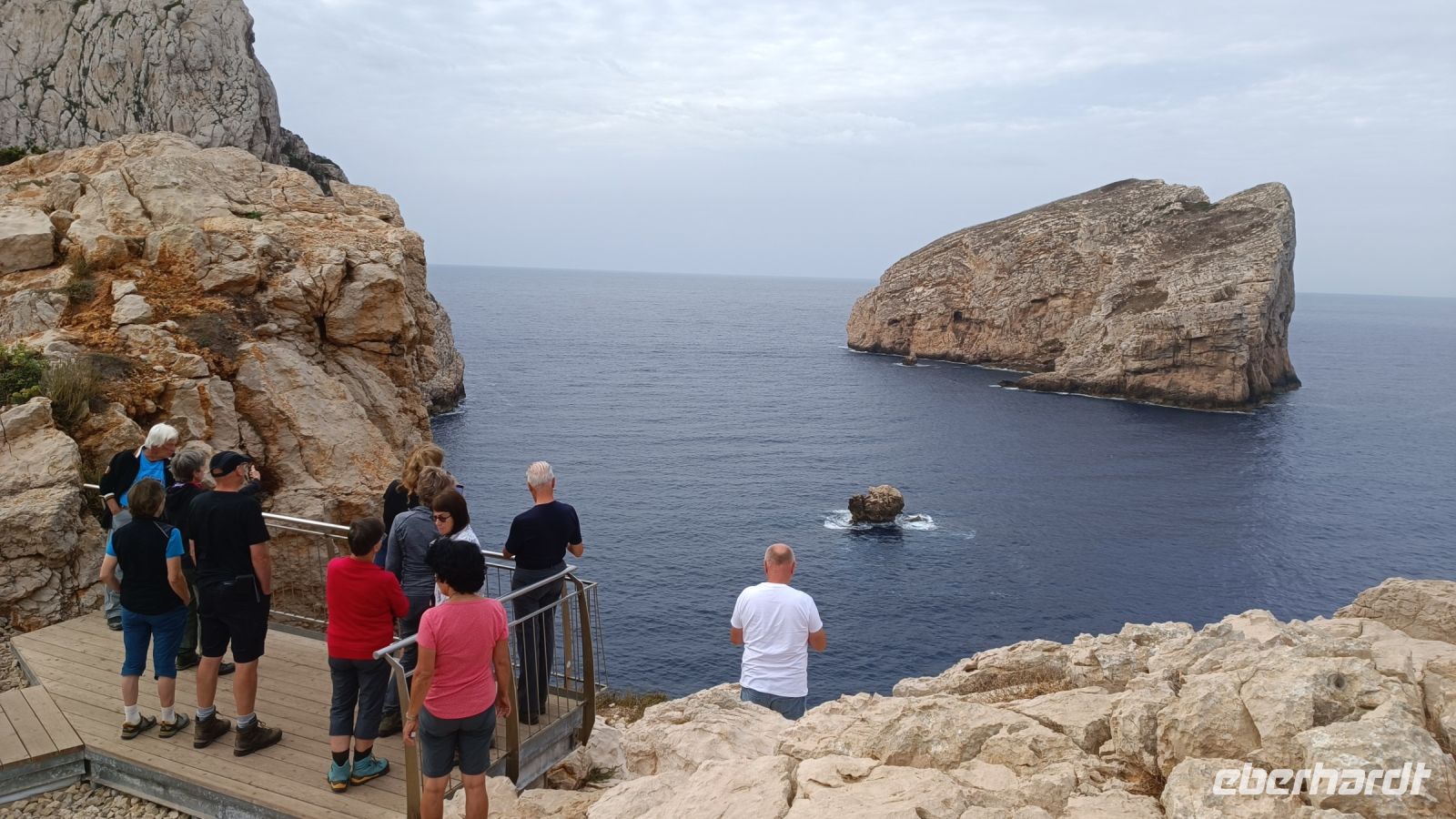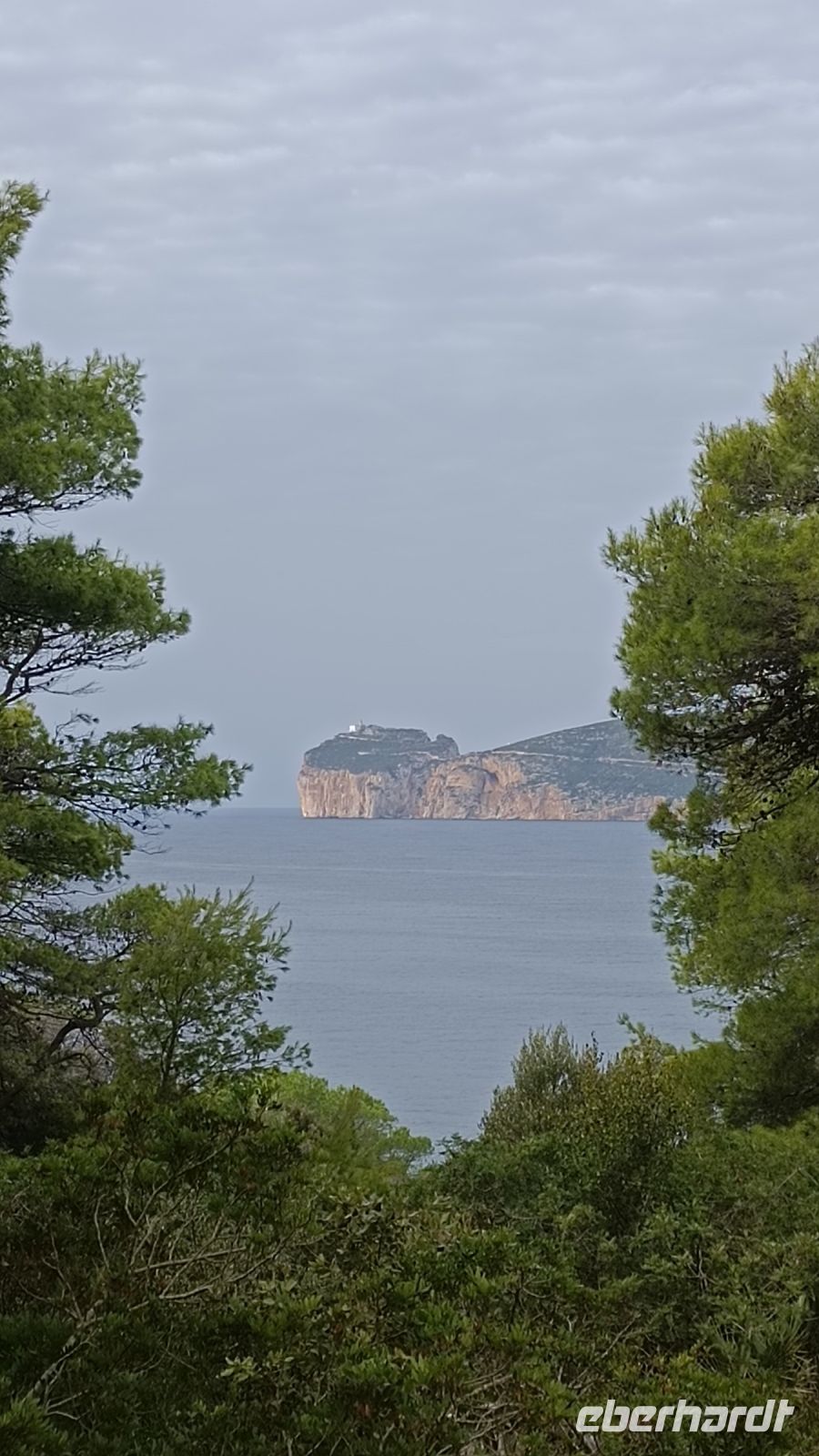Am Hotel war es noch windig als wir zu jenem bekannten Aussichtspunkt hoch über Cala Dragunara aufbrachen. Von hier aus hatte man einen herrlichen Blick hinüber auf Isola Fordada auf der einen Seite und auf der anderen Seite hinunter nach Porto Conte.