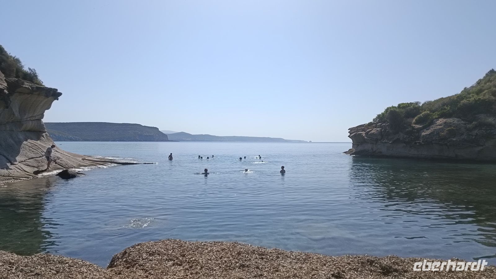 Erstaunlich viele Camper hatten sich dort eingerichtet um einen herrlichen und sehr warmen Spätsommertag zu genießen. Wild campen ist allerdings auf Sardinien verboten, doch wo kein Kläger, da auch kein Richter. Es wird wenig kontrolliert.