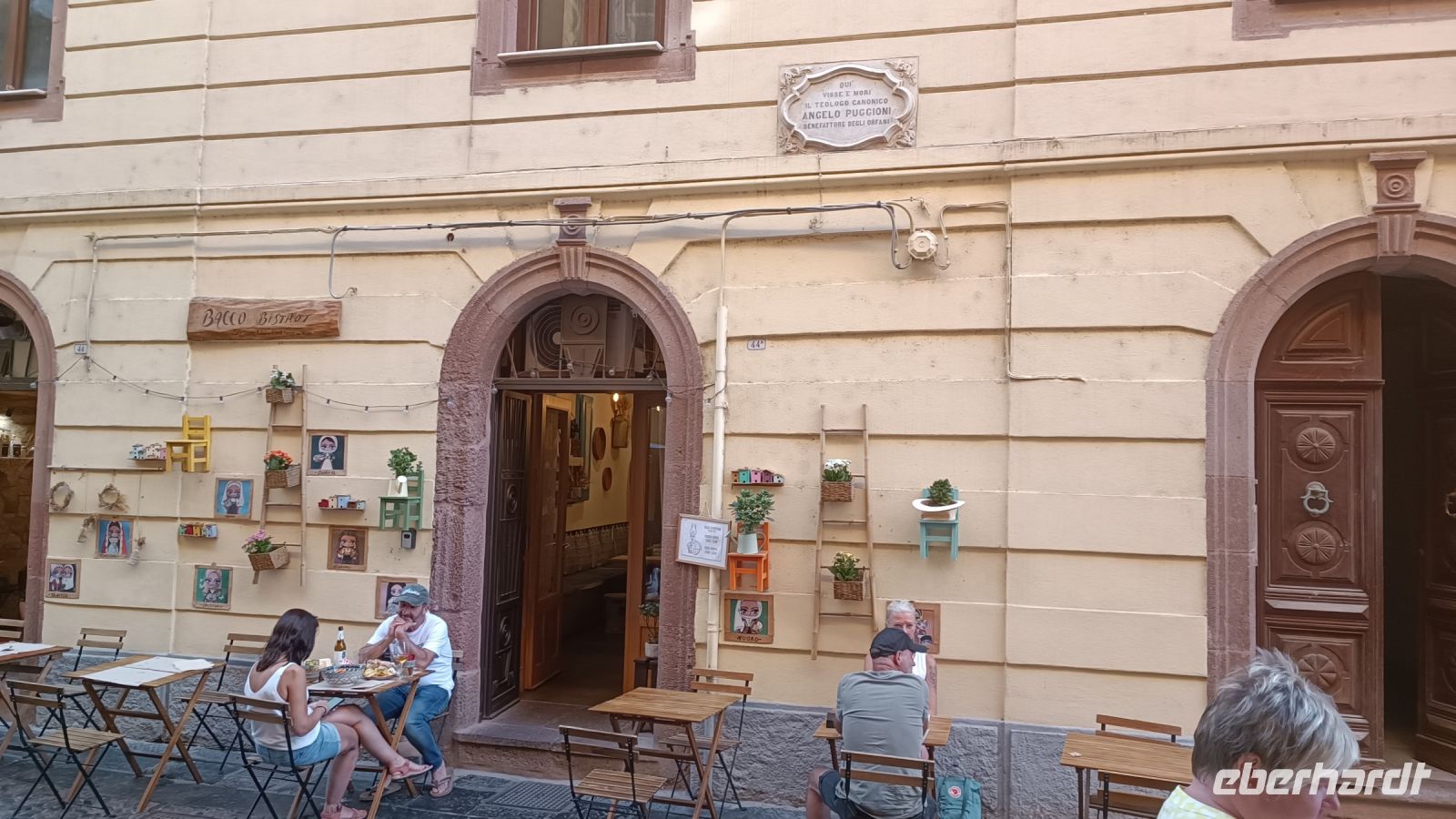 Vorab aber noch eine kleine Freizeit im Örtchen zu freien Verfügung, wo man sich gerne ein kleines Bier gegen den Durst genehmigte. Ebenso einen kleinen Magenfüller für die bevorstehende Weinprobe mit dem berühmten Malvasia di Bosa.