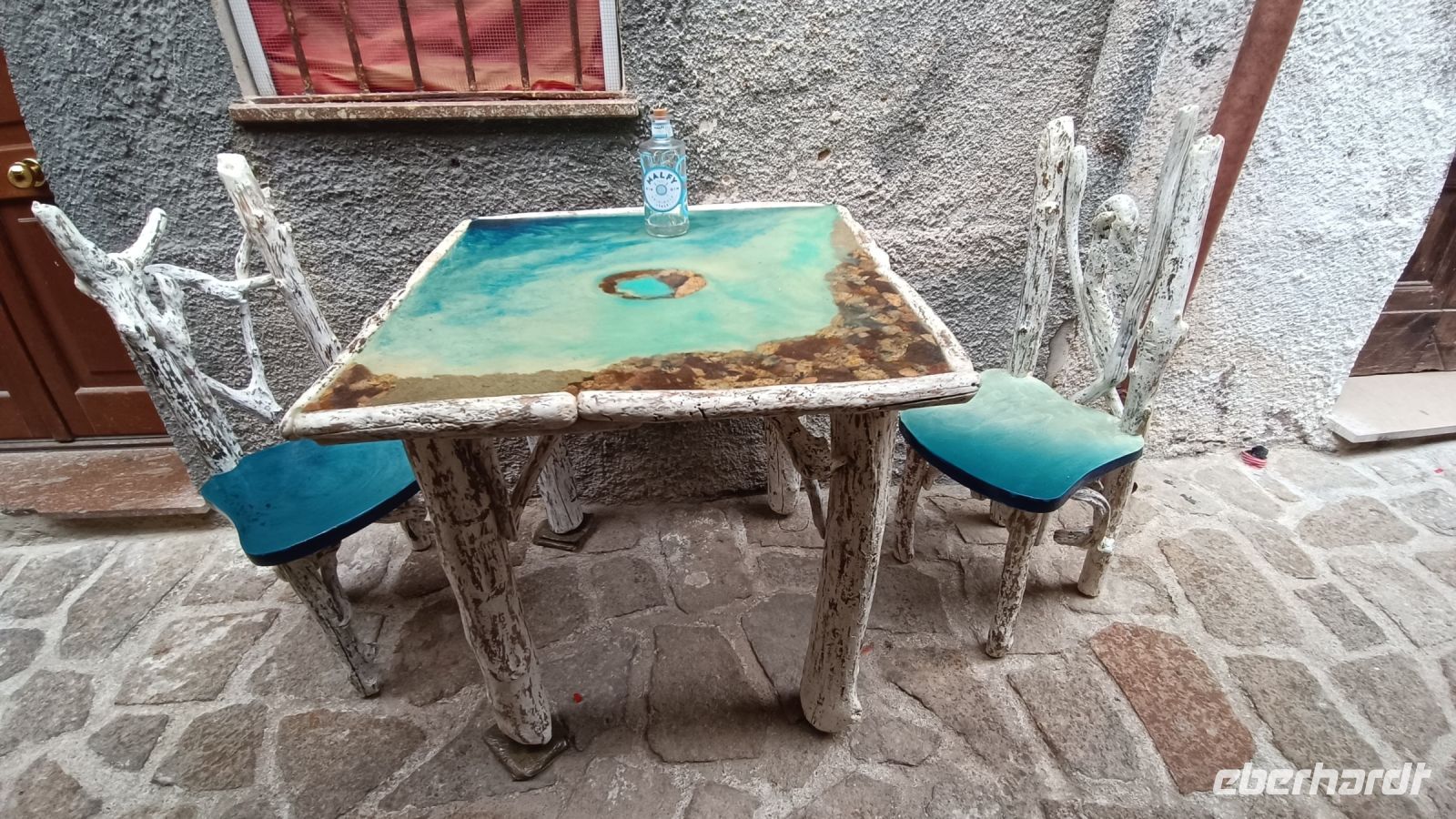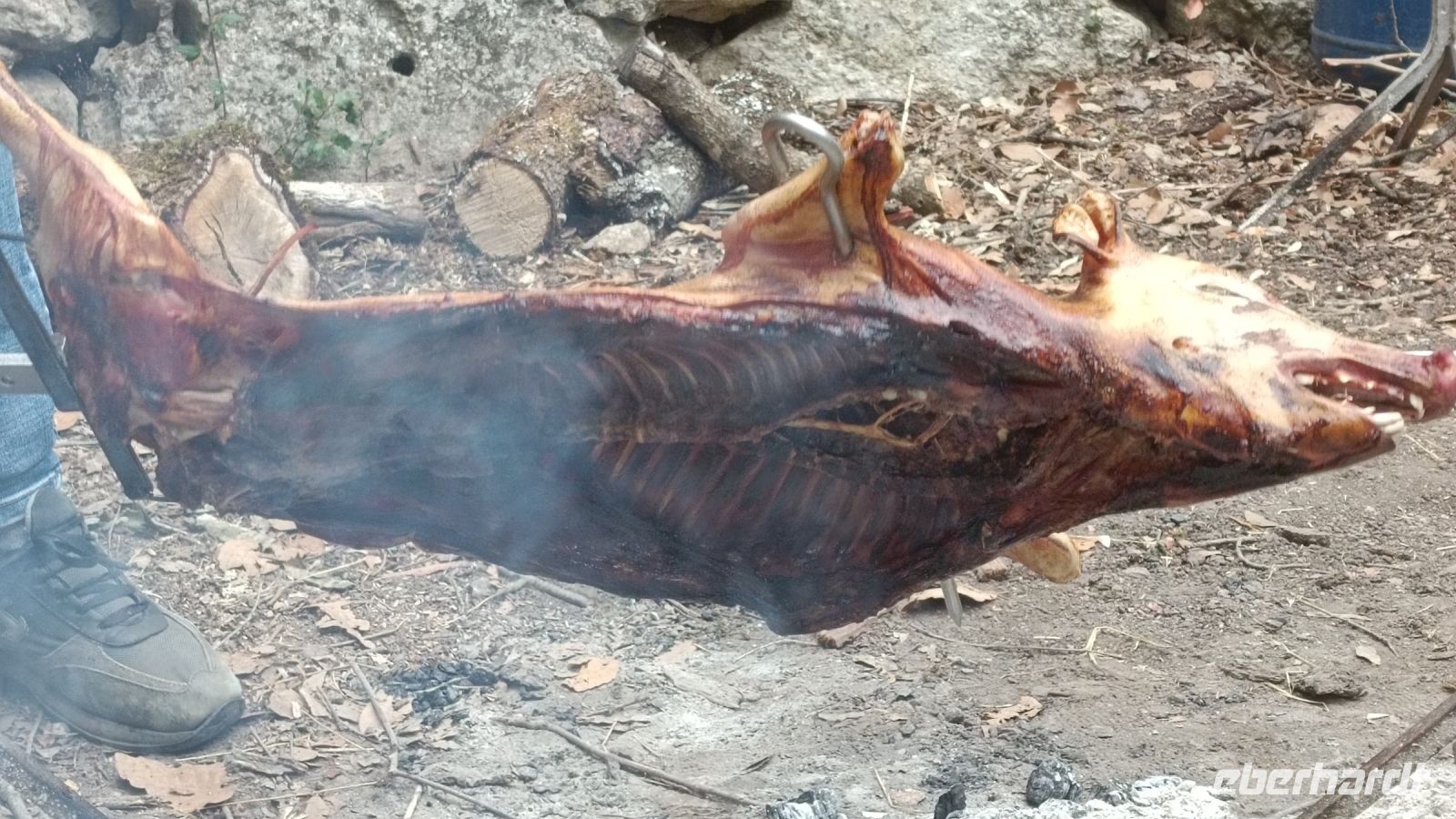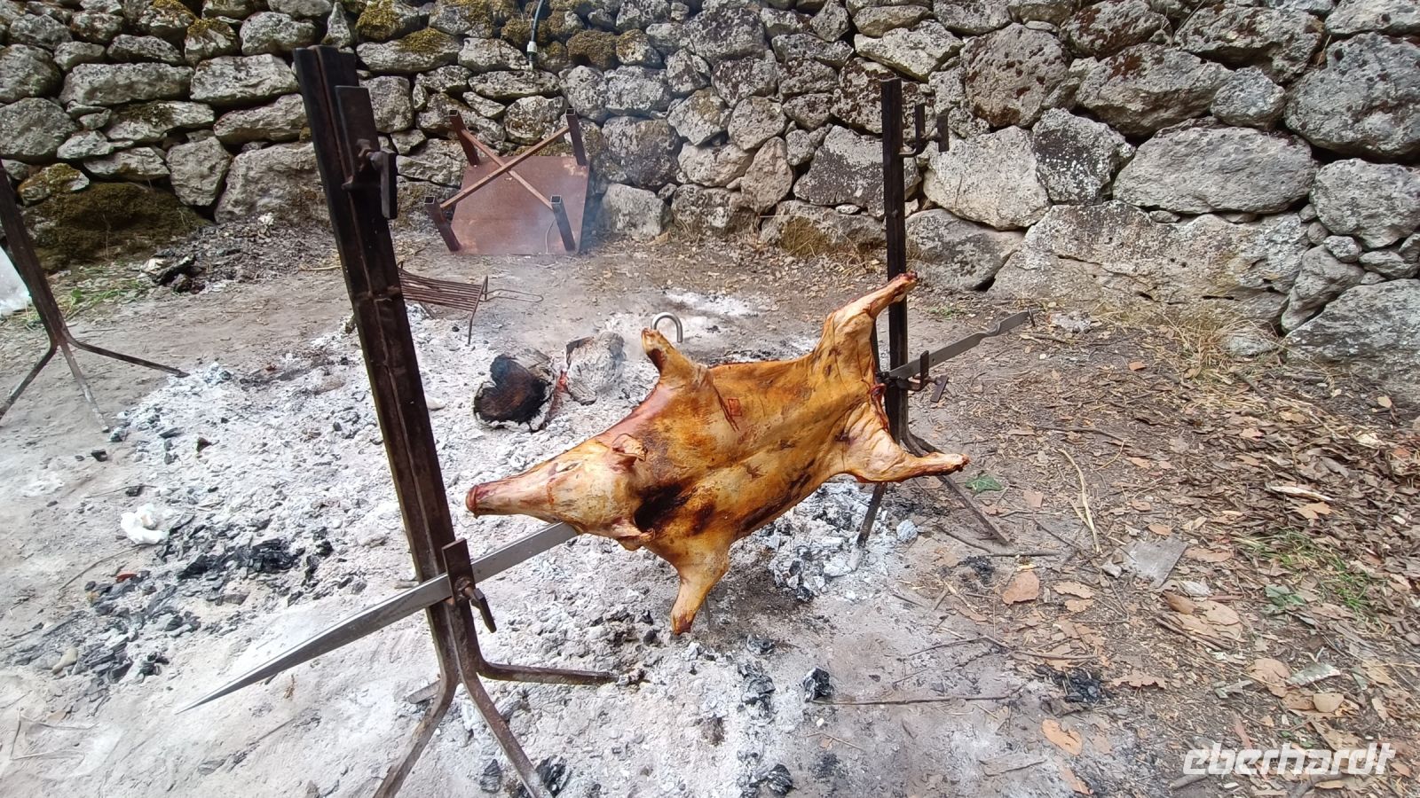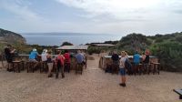 Der landestypische Rotwein stand in Krügen auf den Tischen neben dem Quellwasser aus Tempio. Teilweise saß man auf Steinbänken und genoß im kühlenden Schatten der Pinienbäume ein grandioses Picknick mit den heimischen Spezialitäten und den Aromen der Natur.